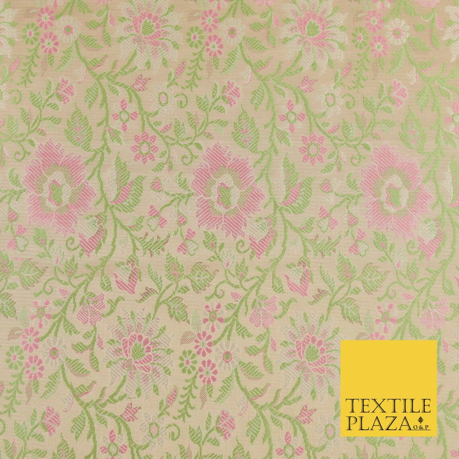 Gold Green Luxury Flowers PURE Benarsi Brocade Woven Dress Fabric Fancy 1747