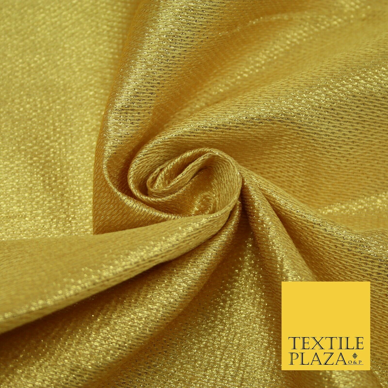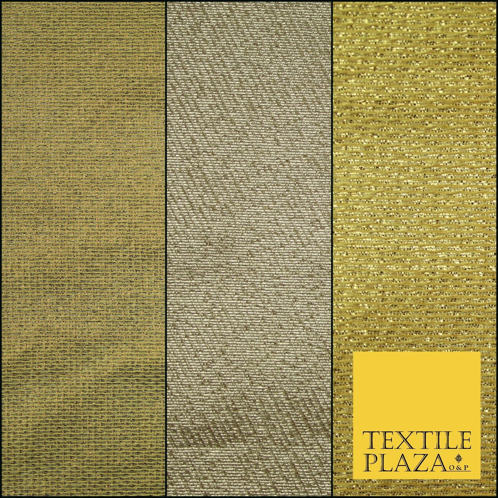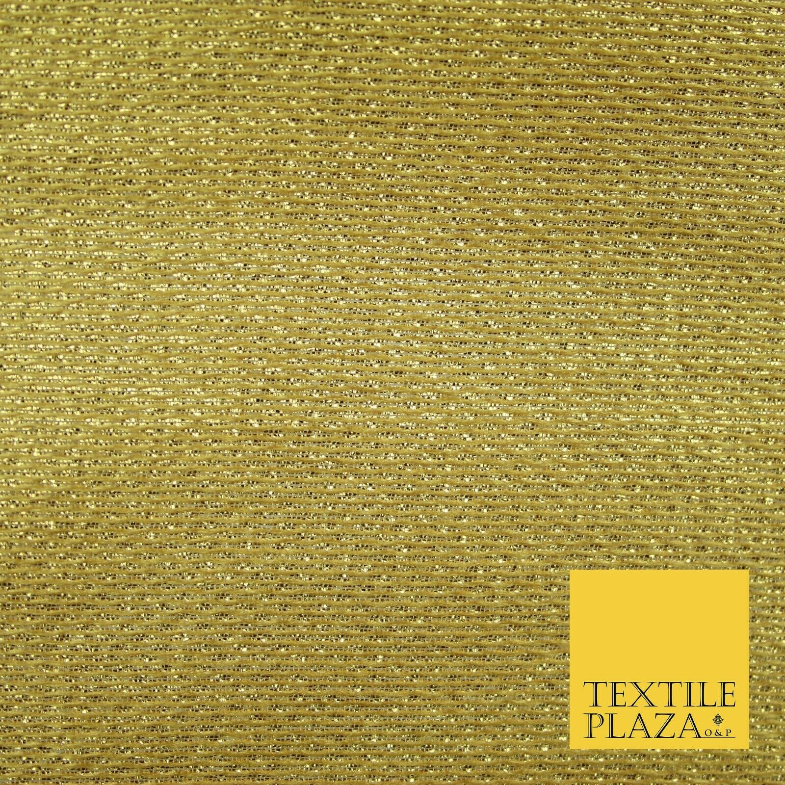 Gold Intricate Striped Shimmer Metallic Foil Shiny LAME Banarsi Dress Fabric