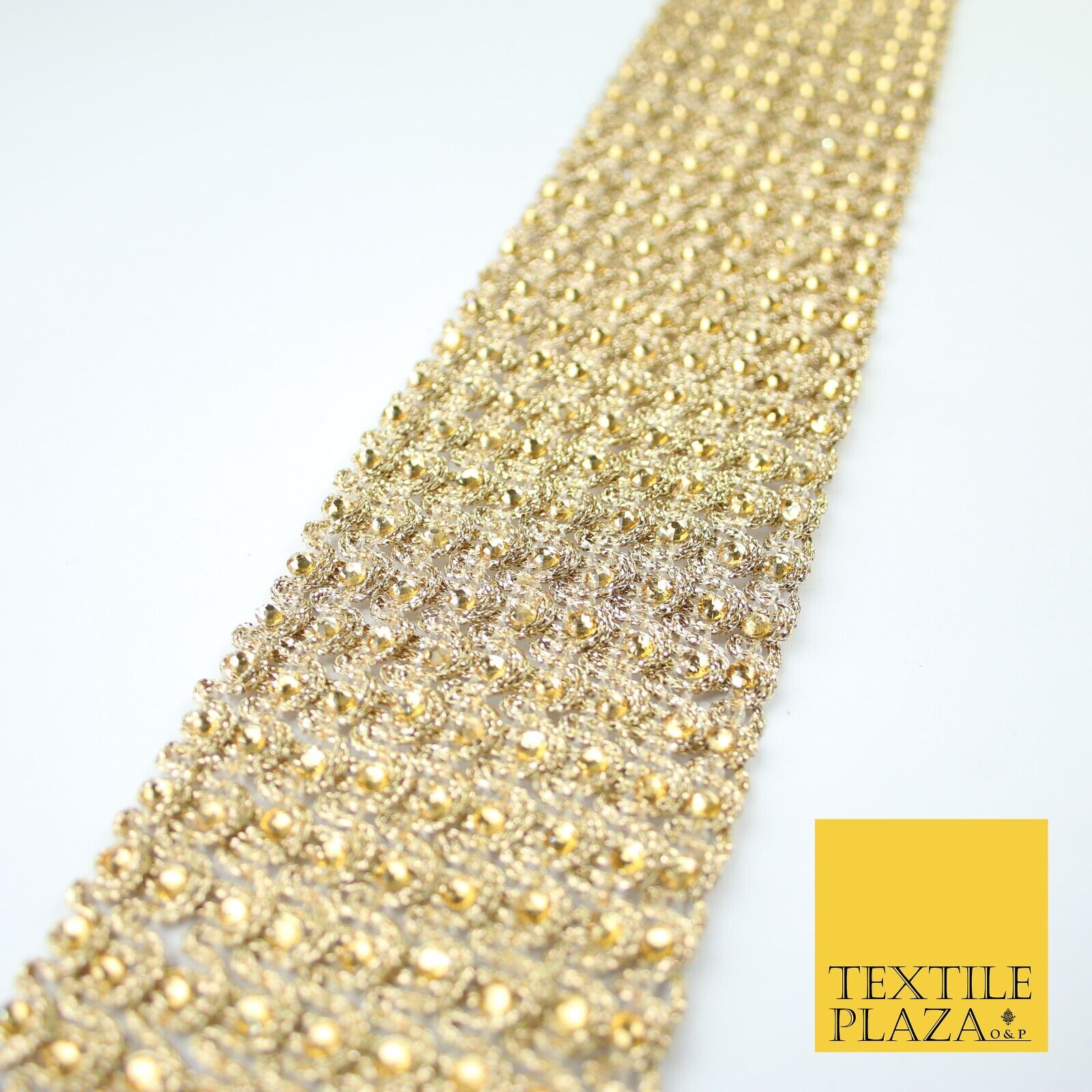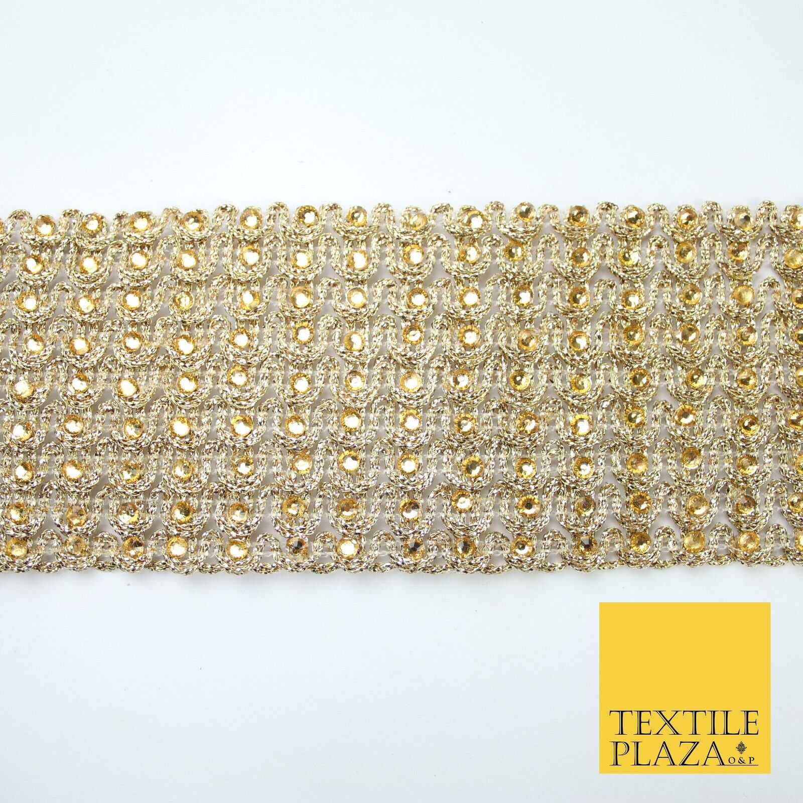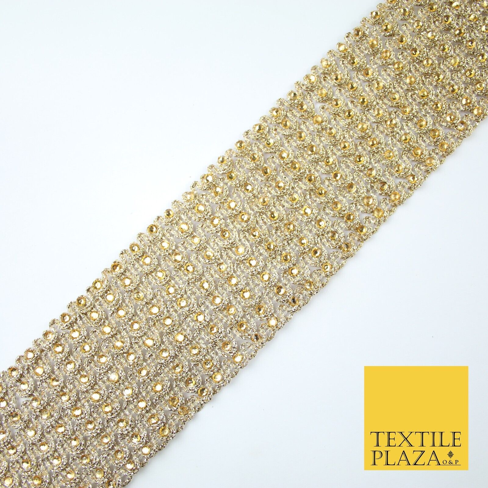 GOLD Large 9 Row Swag Intense Diamonte Stones Trim Border Lace - 6.5cm Wide X650