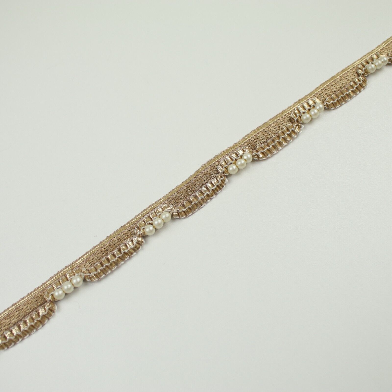 Gold Metallic Ribbon & Trio Pearl Trim Border Ribbon Gota Lace 2cm Wide X701