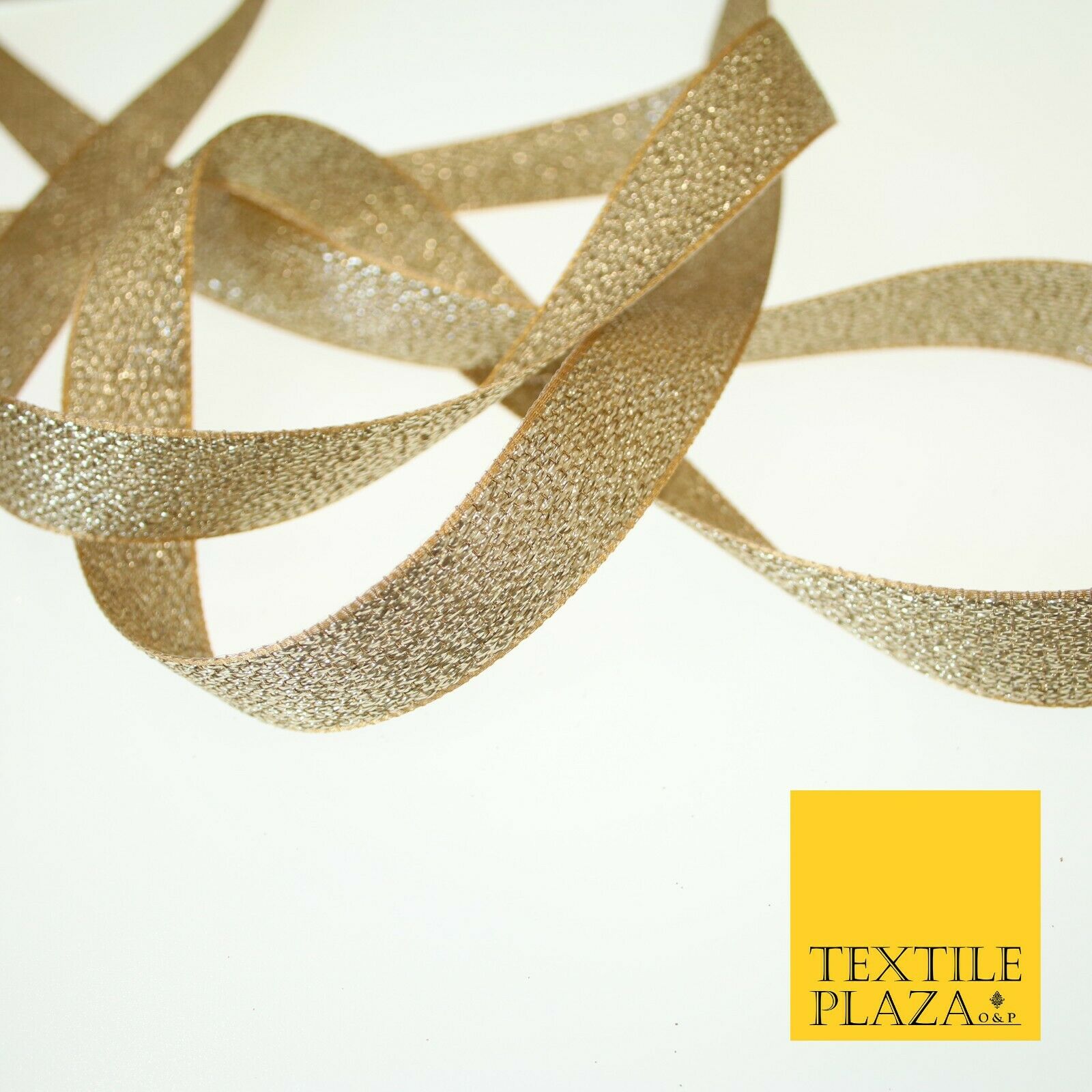 Gold Metallic Soft Slim Woven Shimmer Shiny Trim Border Ribbon 2cm Wide X596