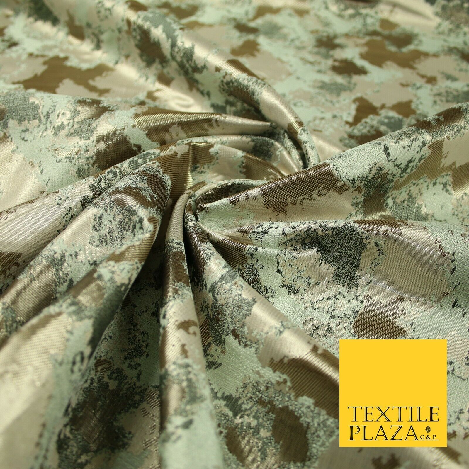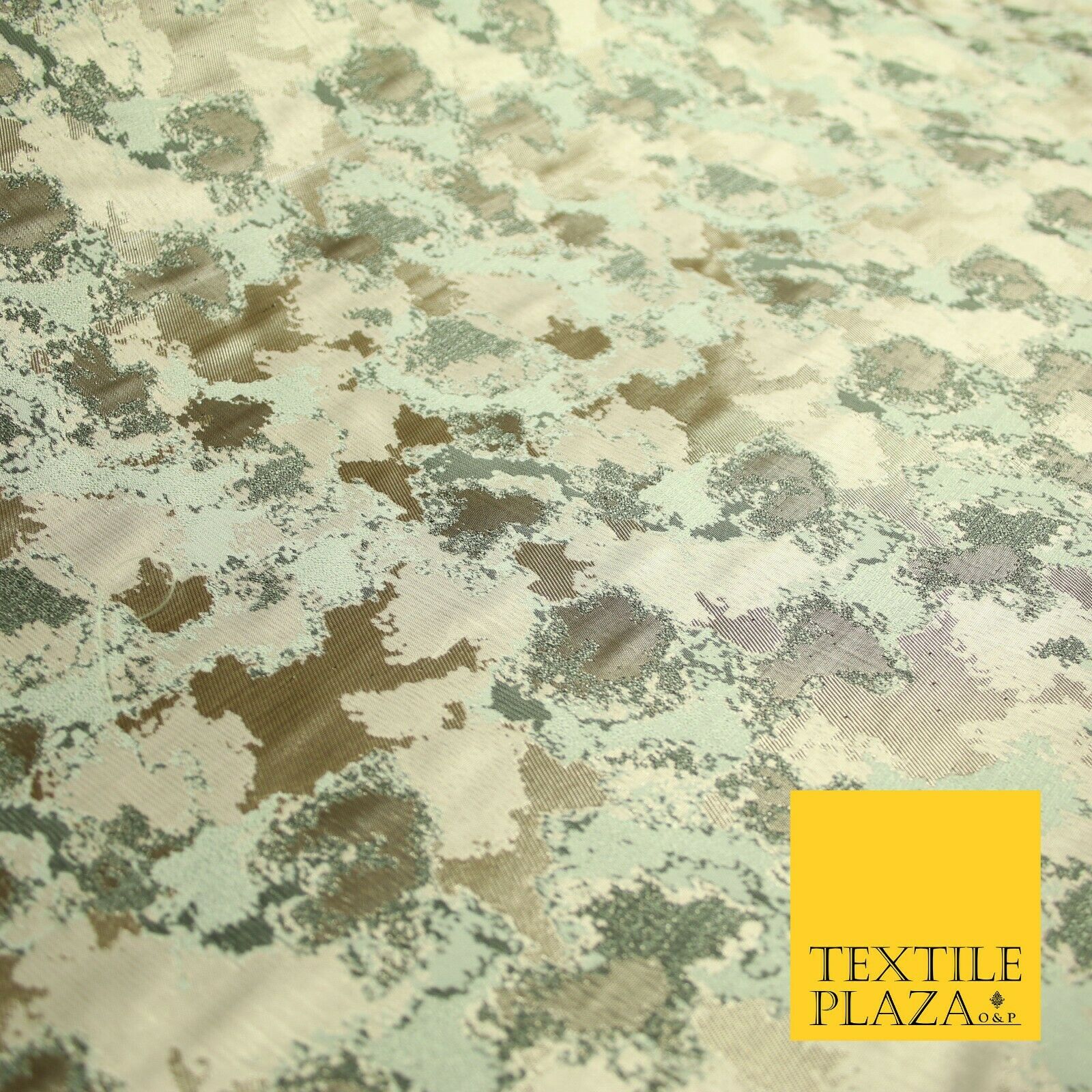 Gold Mint Green Abstract Artsy Watercolour Metallic Textured Brocade Fabric 7137