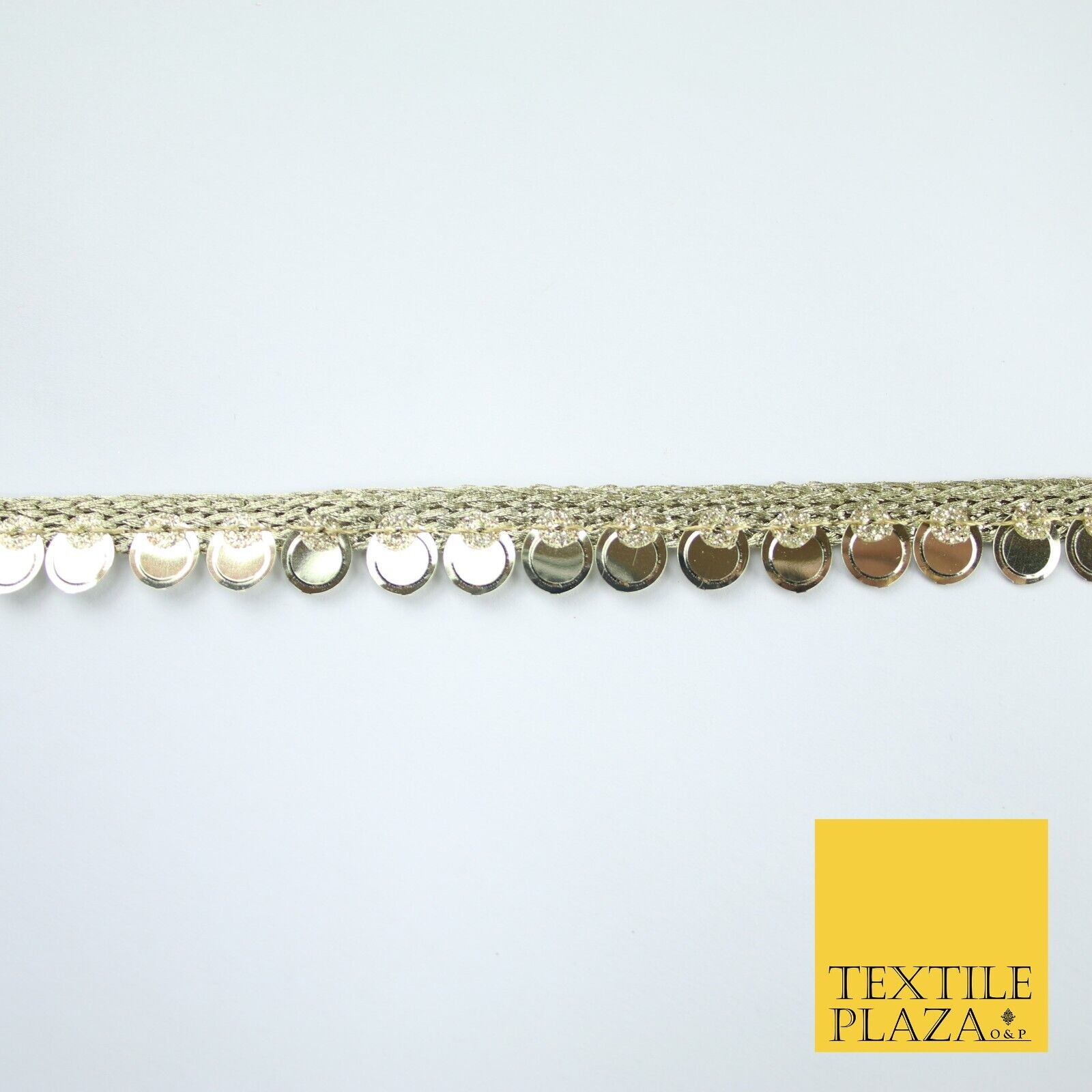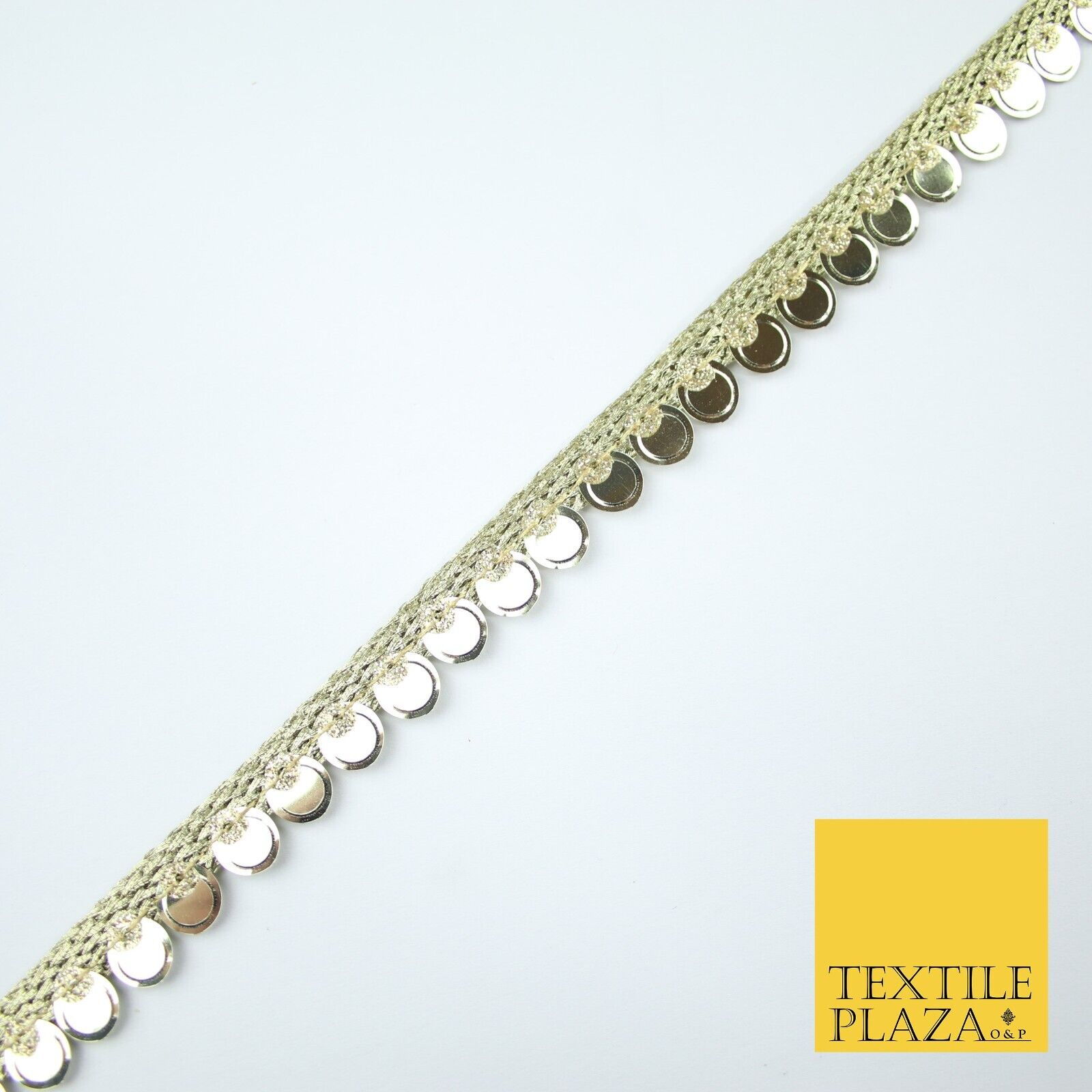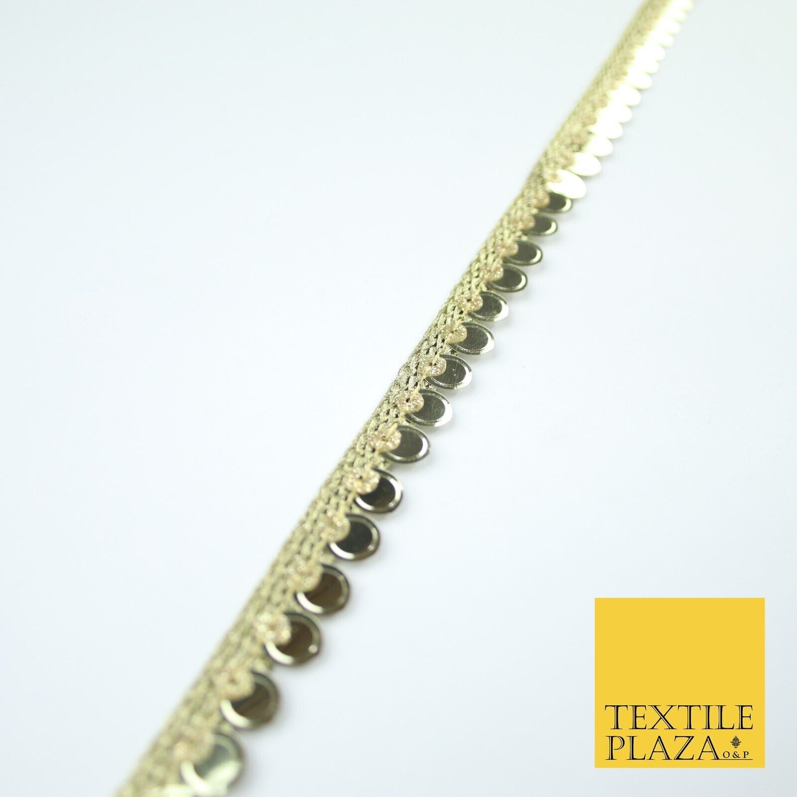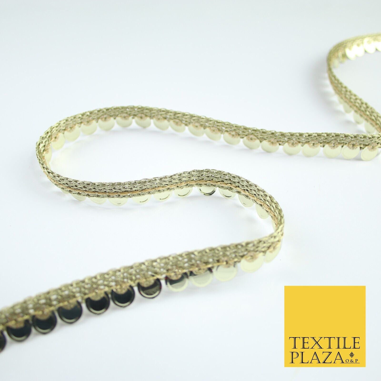 Gold Mirror Chrome Embossed Slim Sequin Ribbon Trim Border Lace - 1cm Wide X584