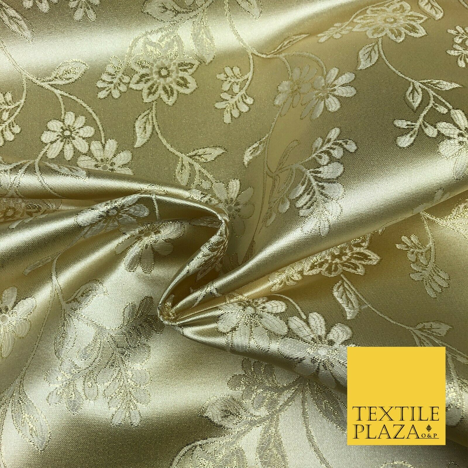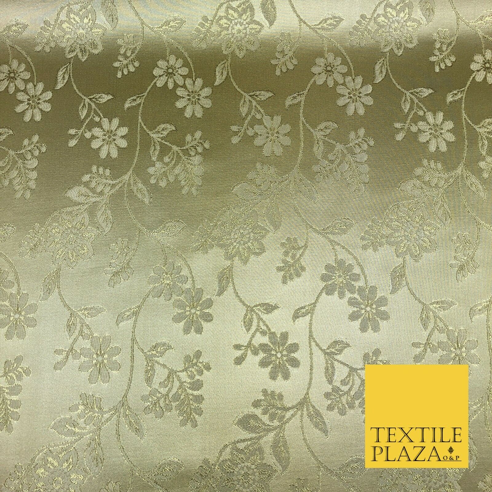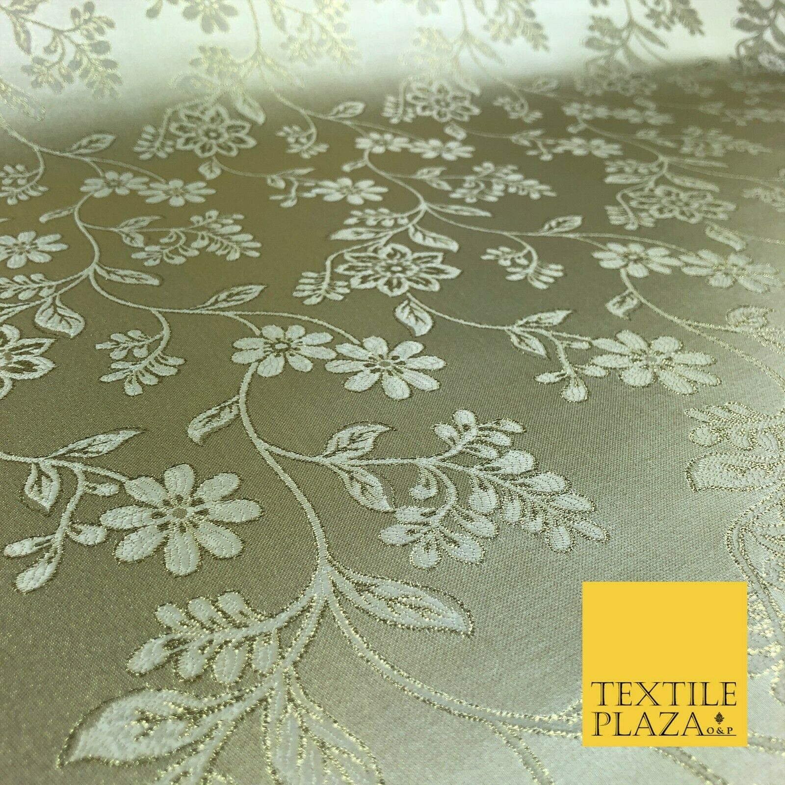 GOLD Ornamental Floral Stem Waves Brocade Dress Fabric Metallic Woven 1399