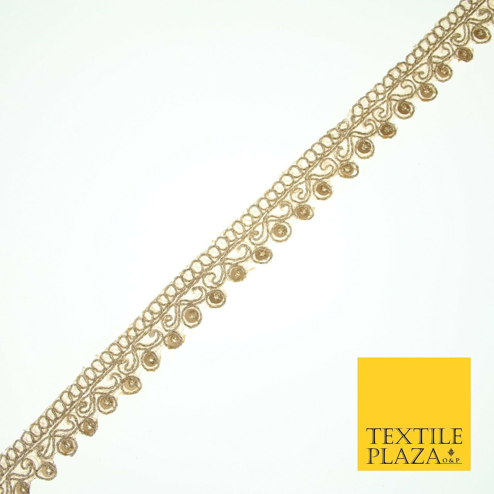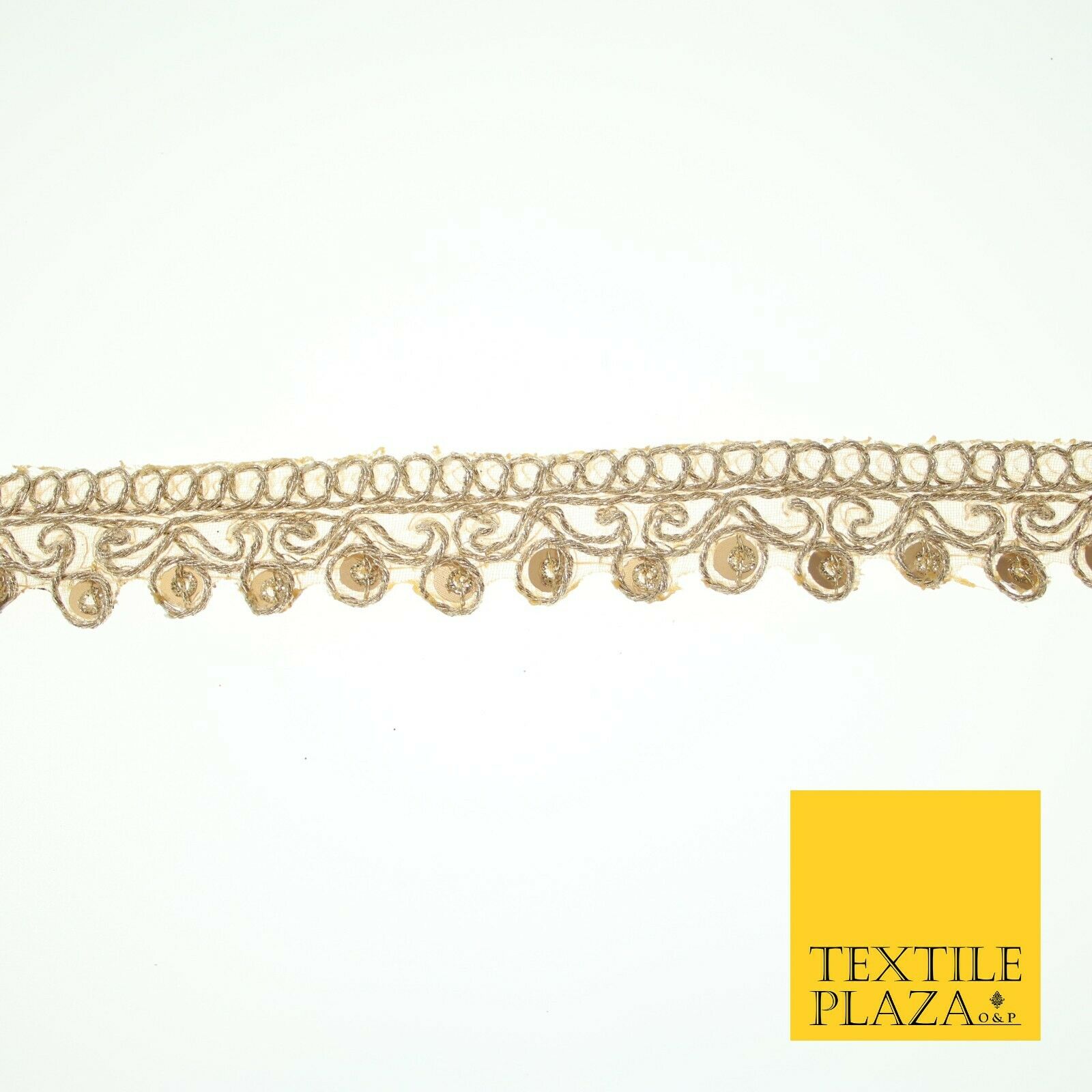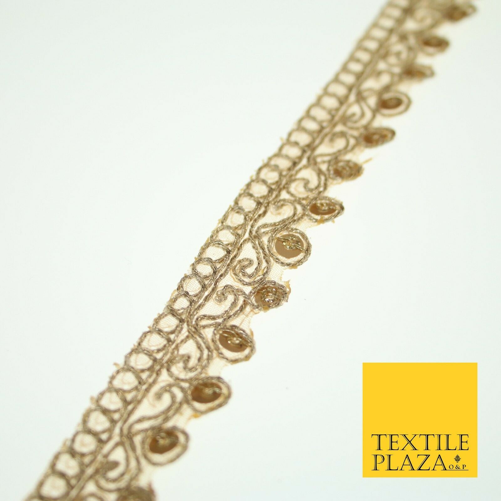 Gold Ornate Corded Matt Sequin Net Trim Border Ribbon Gota Lace 2cm Wide X558