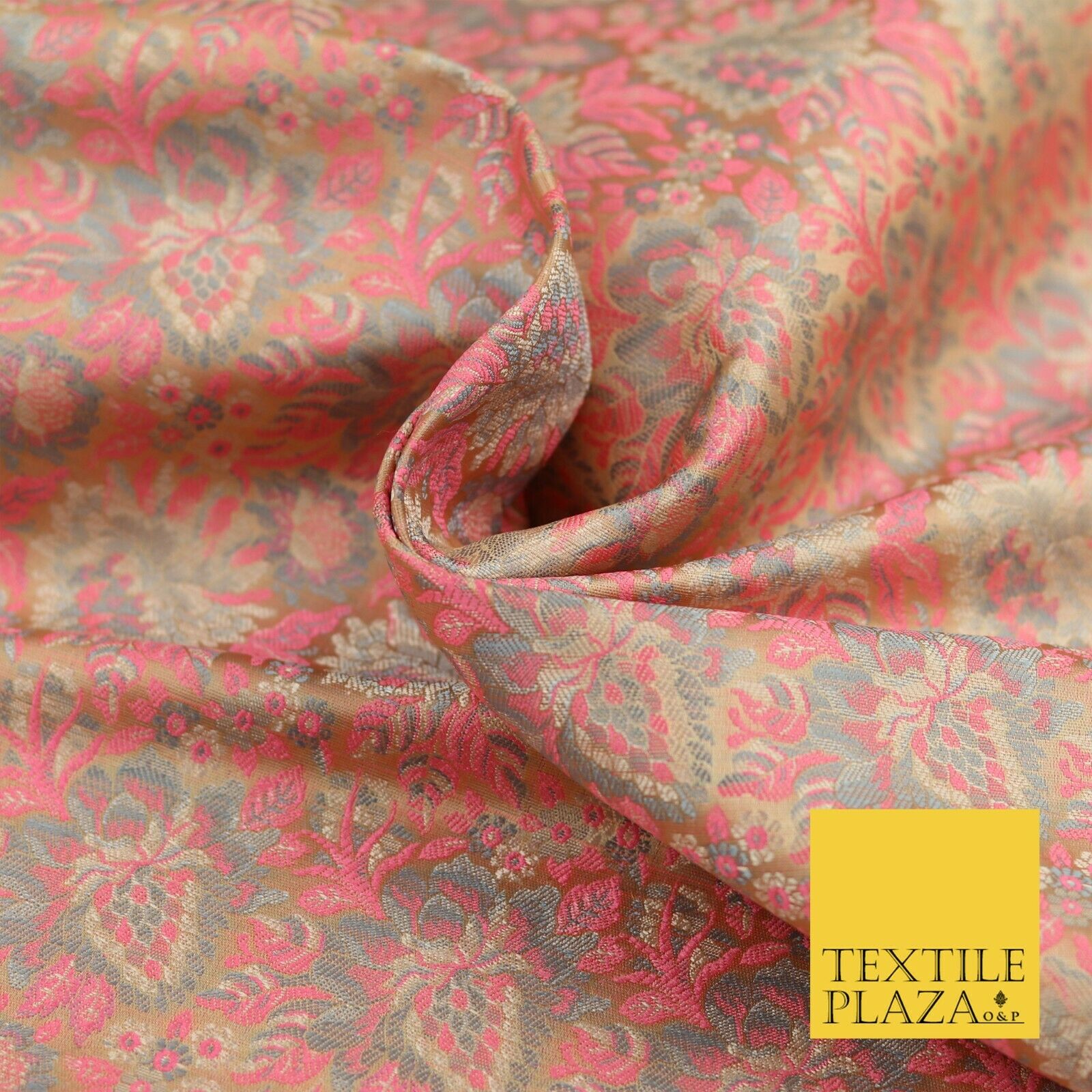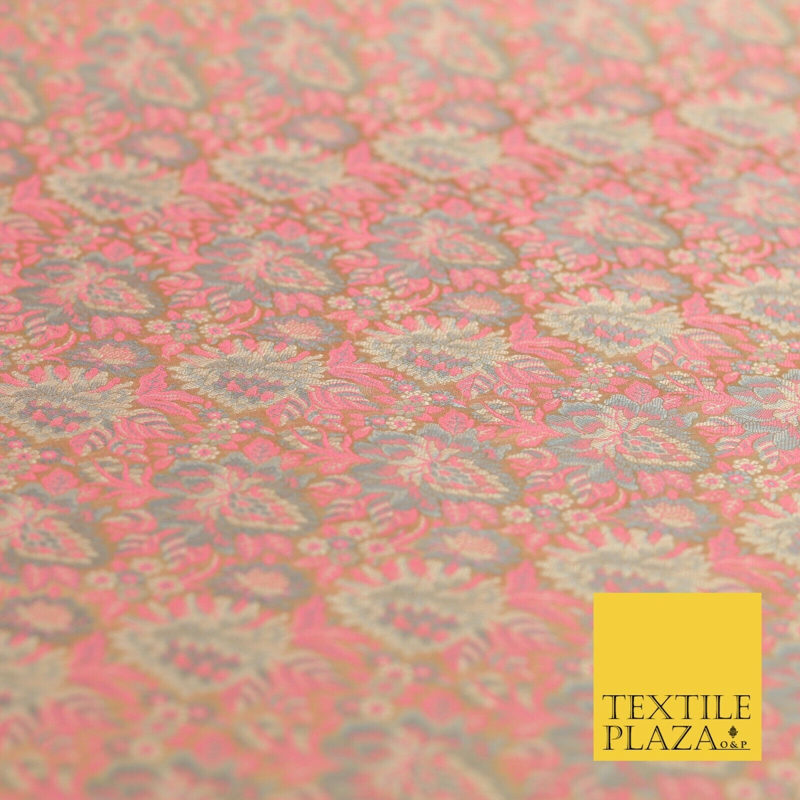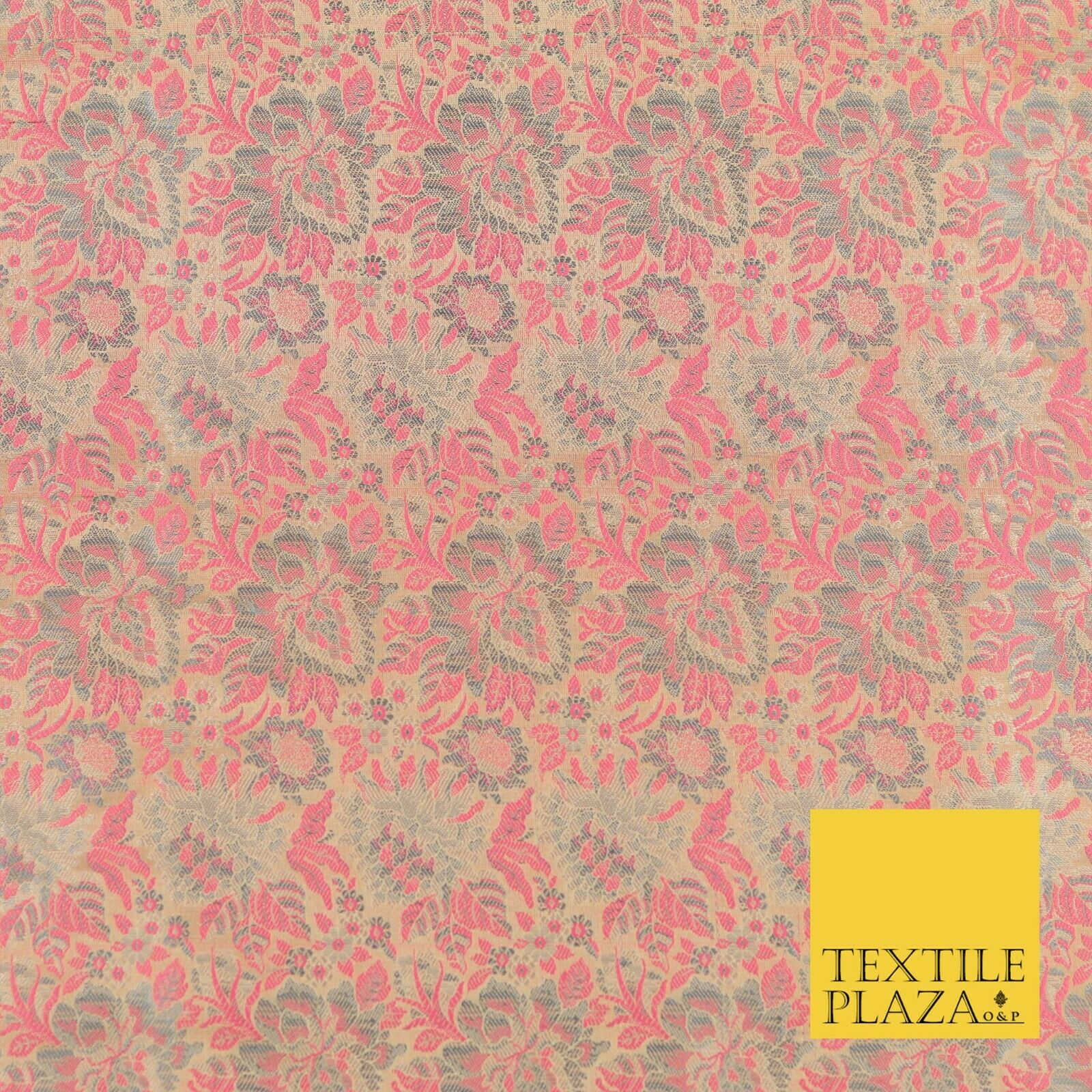 GOLD PINK Luxury PURE Benarsi Brocade Woven Dress Fabric Metallic Fancy 1740
