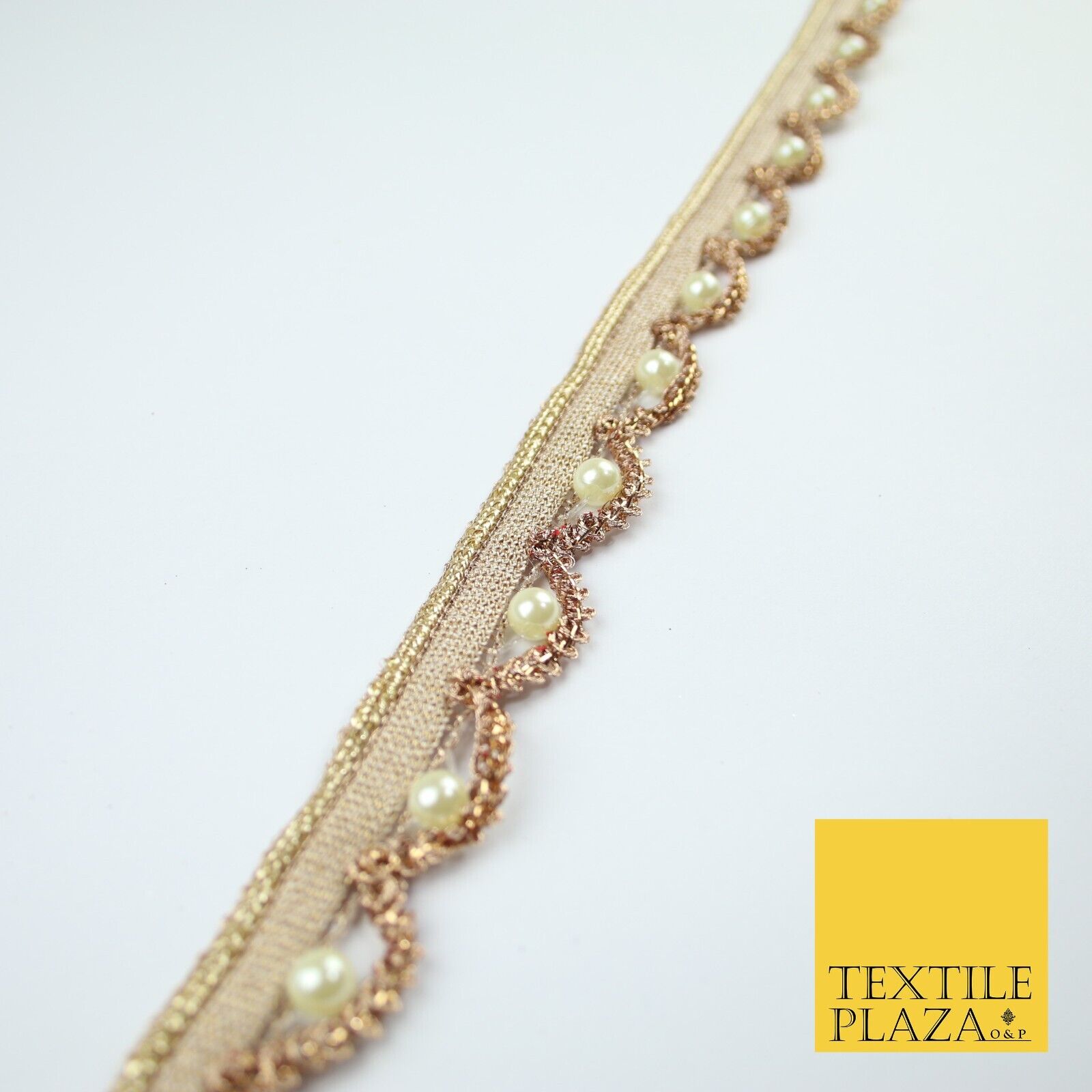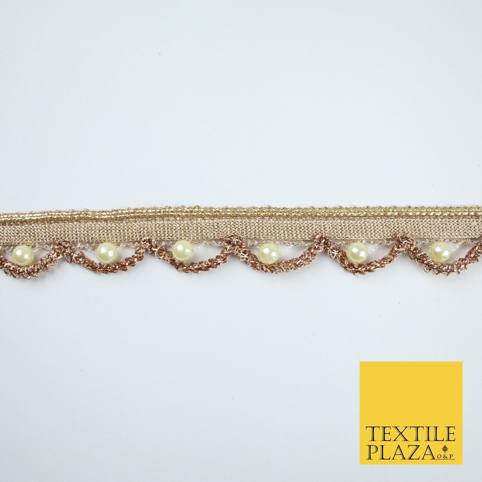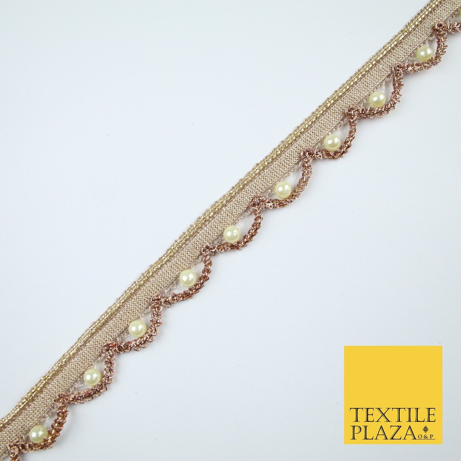 Gold / Rose Pearl Rope Swag Metallic Ribbon Trim Border Lace - 2cm Wide - X668