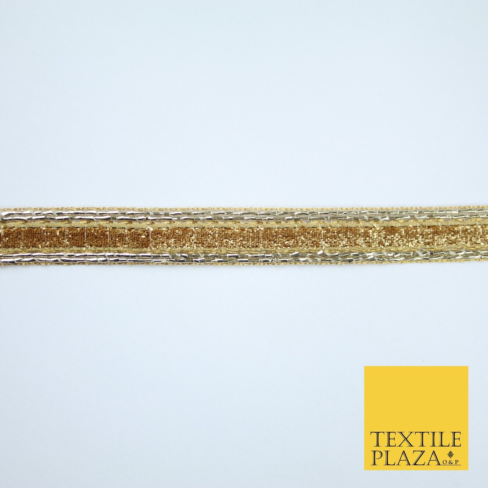 Gold Shimmer Fleck Zari Fancy Ribbon Trim Border Gota Lace - 1.5cm Wide - X145