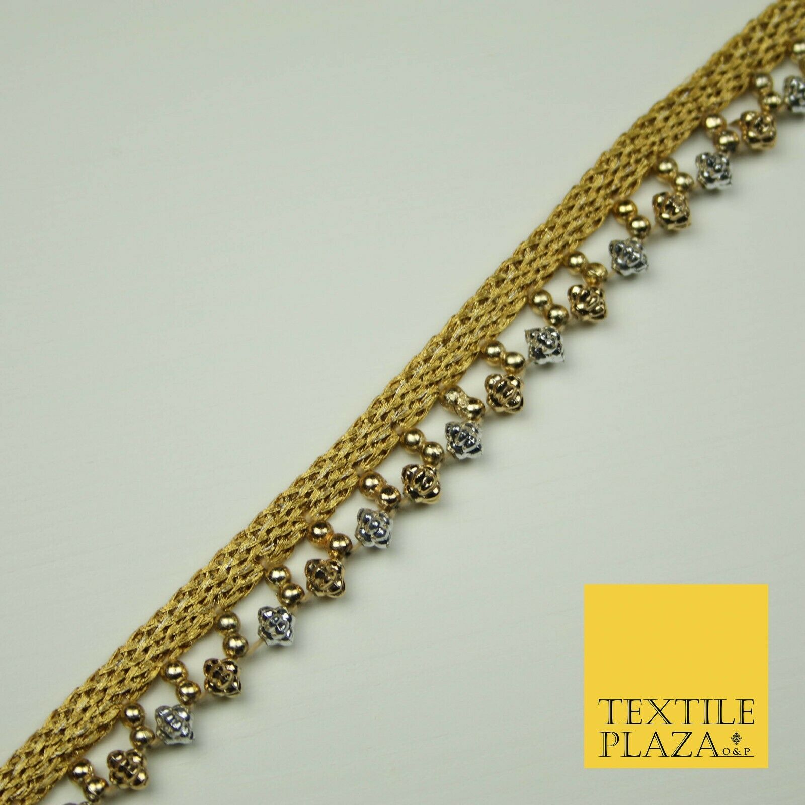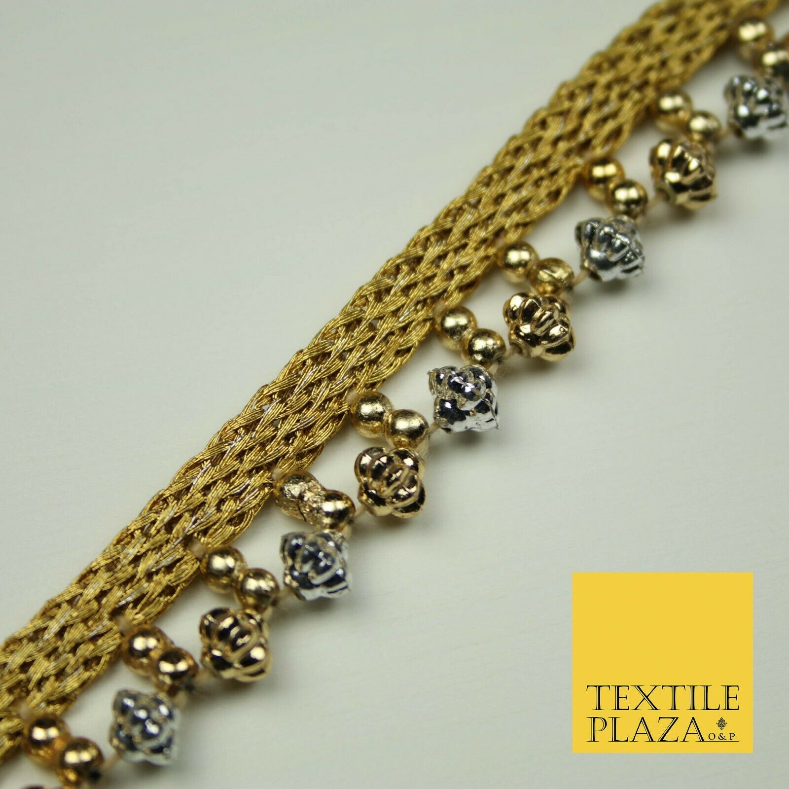 Gold Silver Textured Pearl Cone Beaded Ribbon Trim Border Indian Lace X400