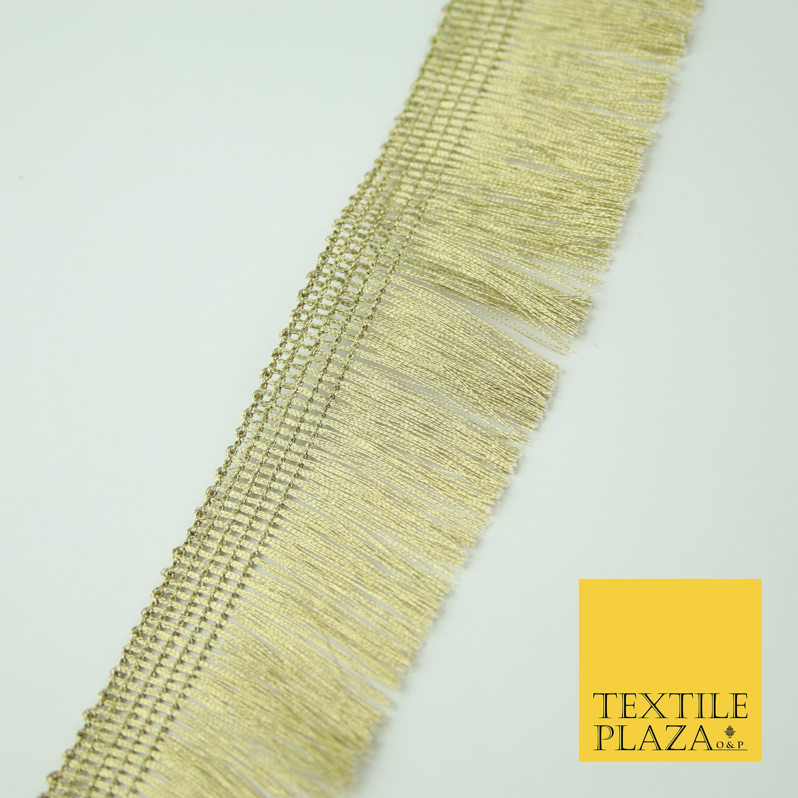 Gold Simple Metallic Fringe Tassel Trimming Gota Border Indian Ribbon Lace X337