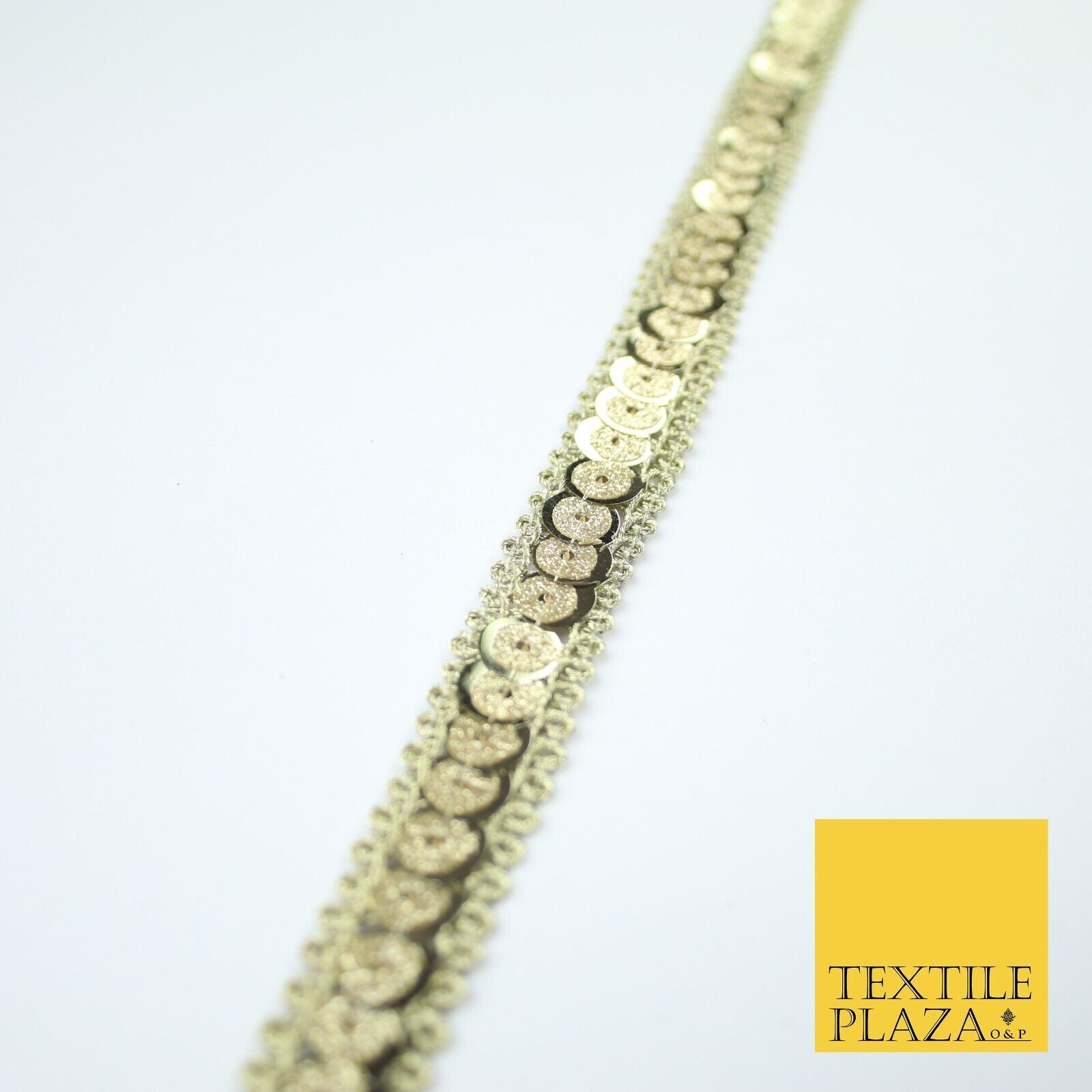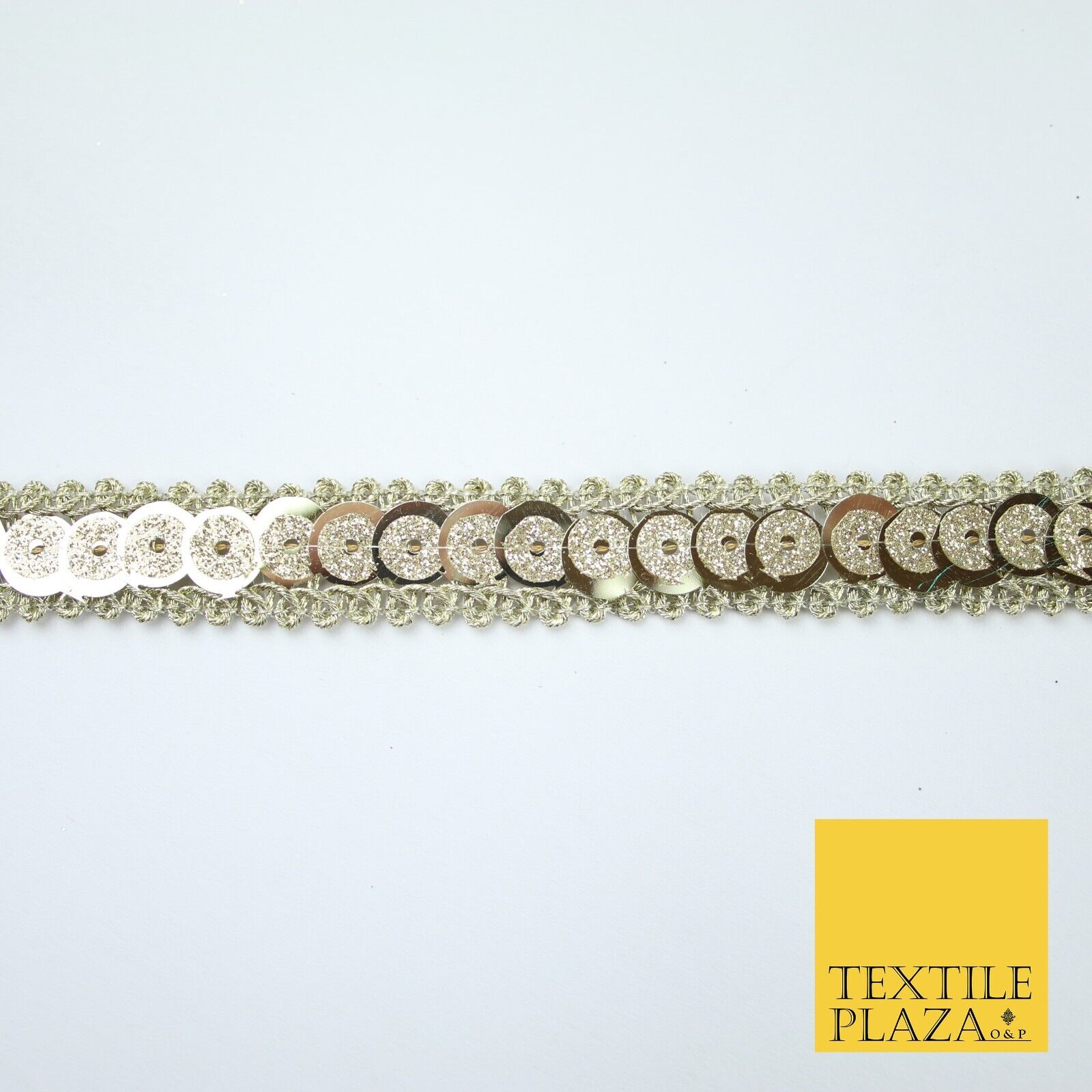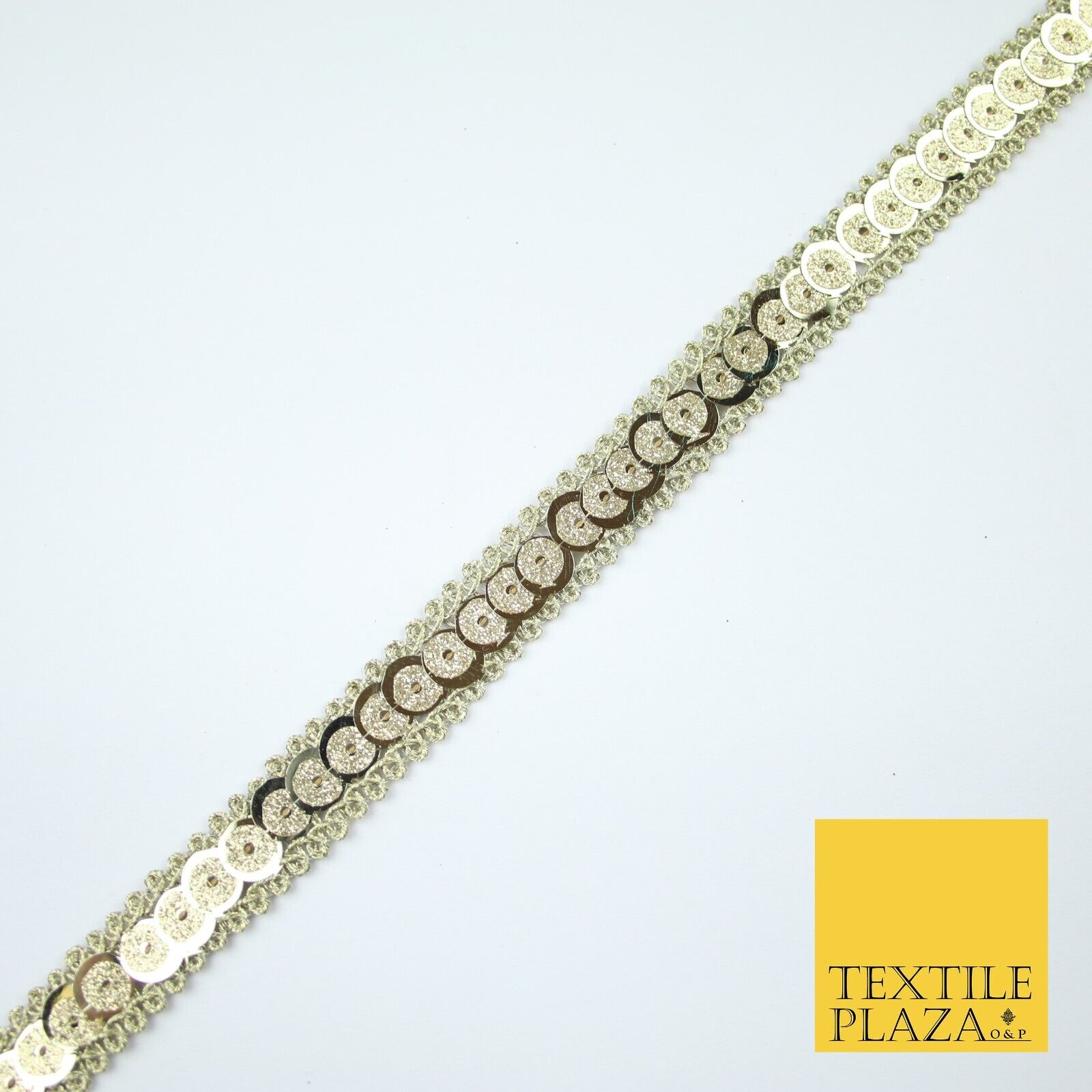 Gold Slim Dual Chrome Glitter Sequin Trim Border Lace - 1.5cm Wide - X575
