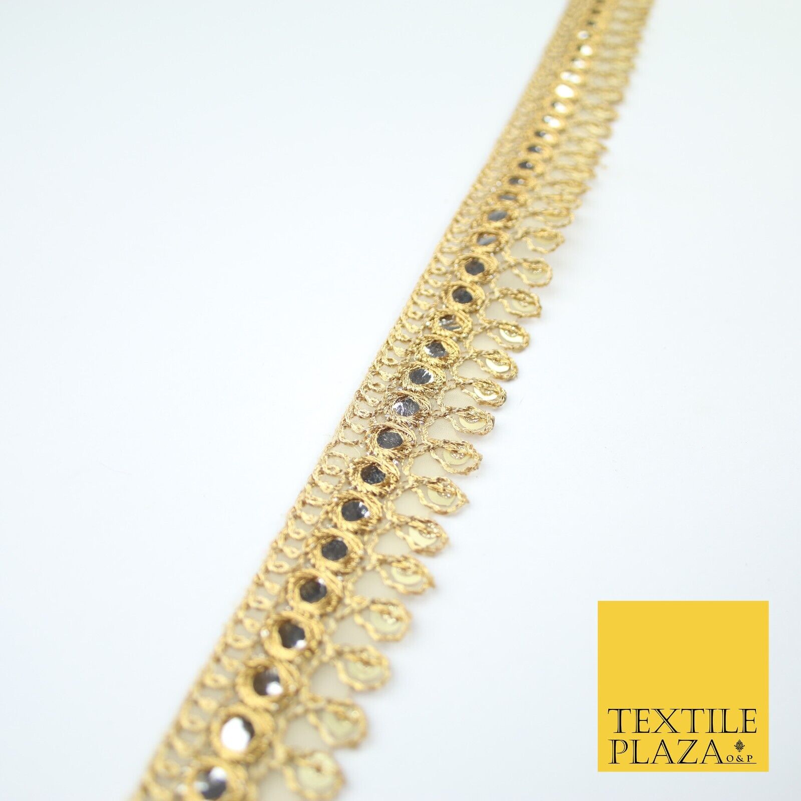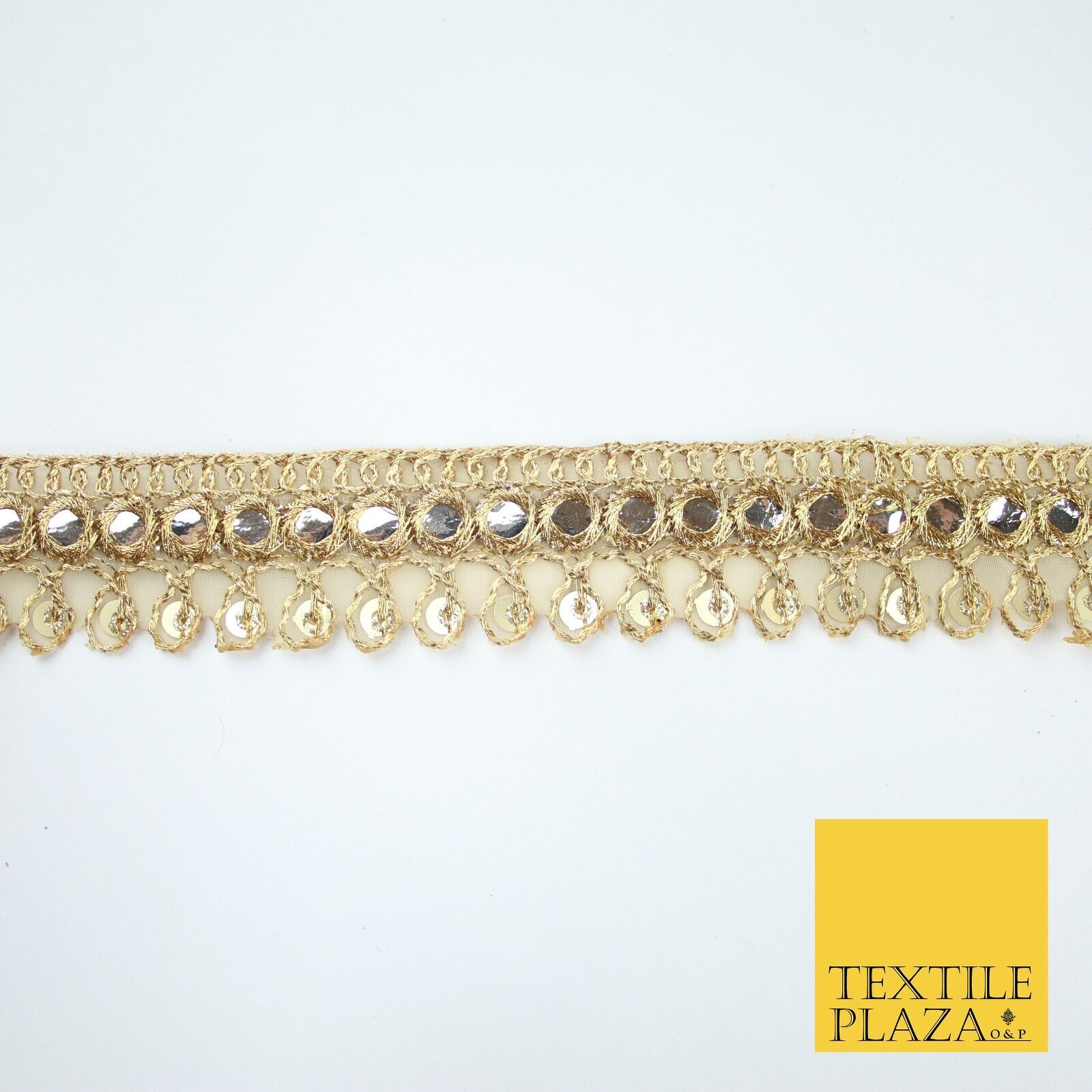 Gold Teardrop Mirror Effect Sequin Cutwork Net Trim Border Lace - 2cm Wide X620