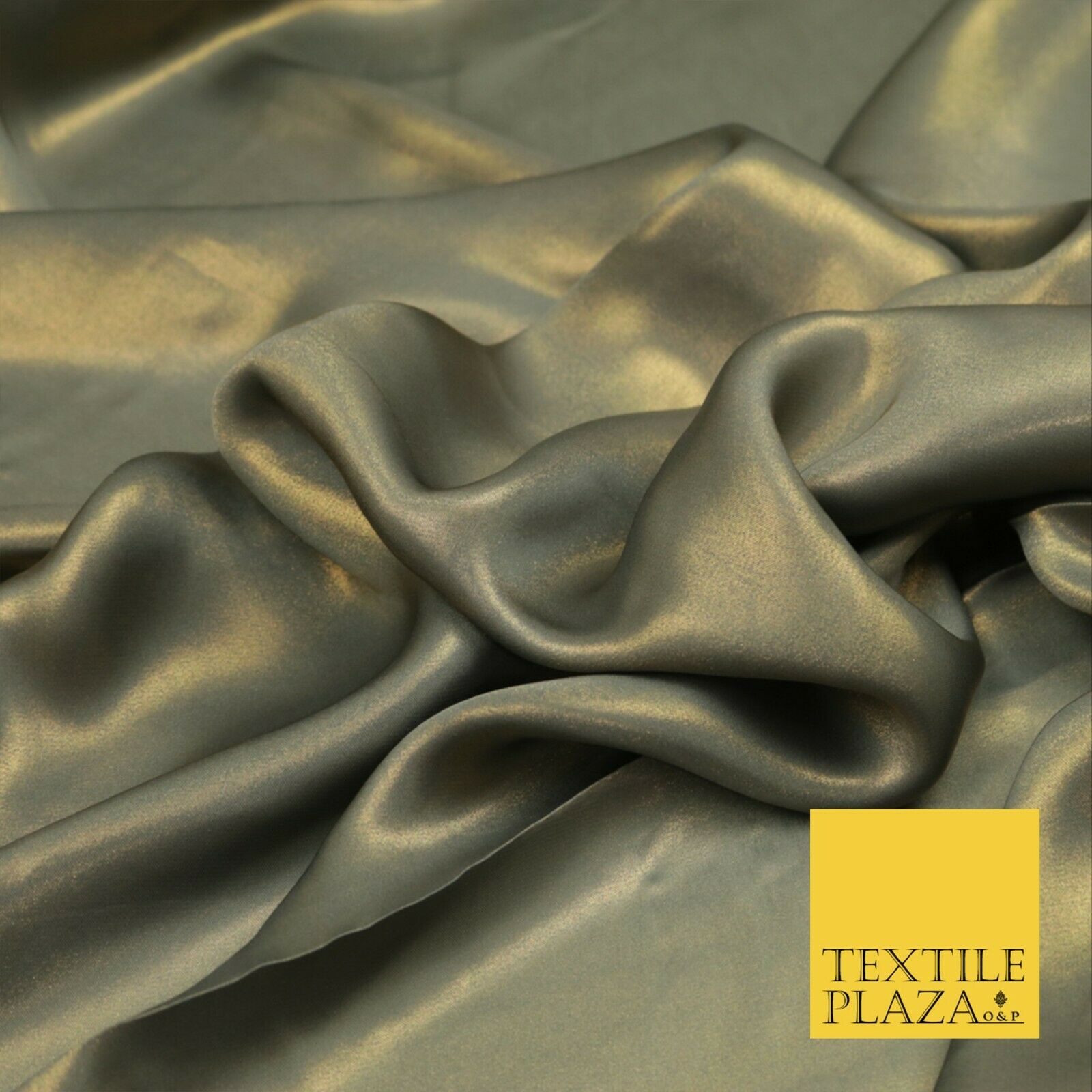 GRAPHITE GOLD Fine Silky Metallic Shimmer Satin Georgette Dress Fabric Drape1424