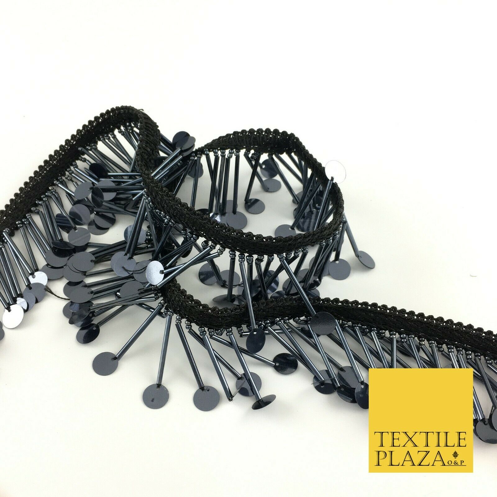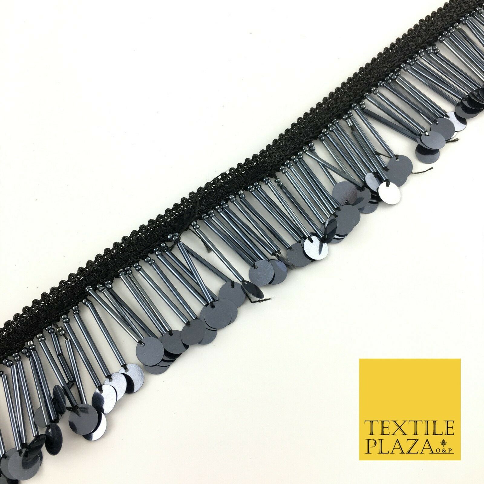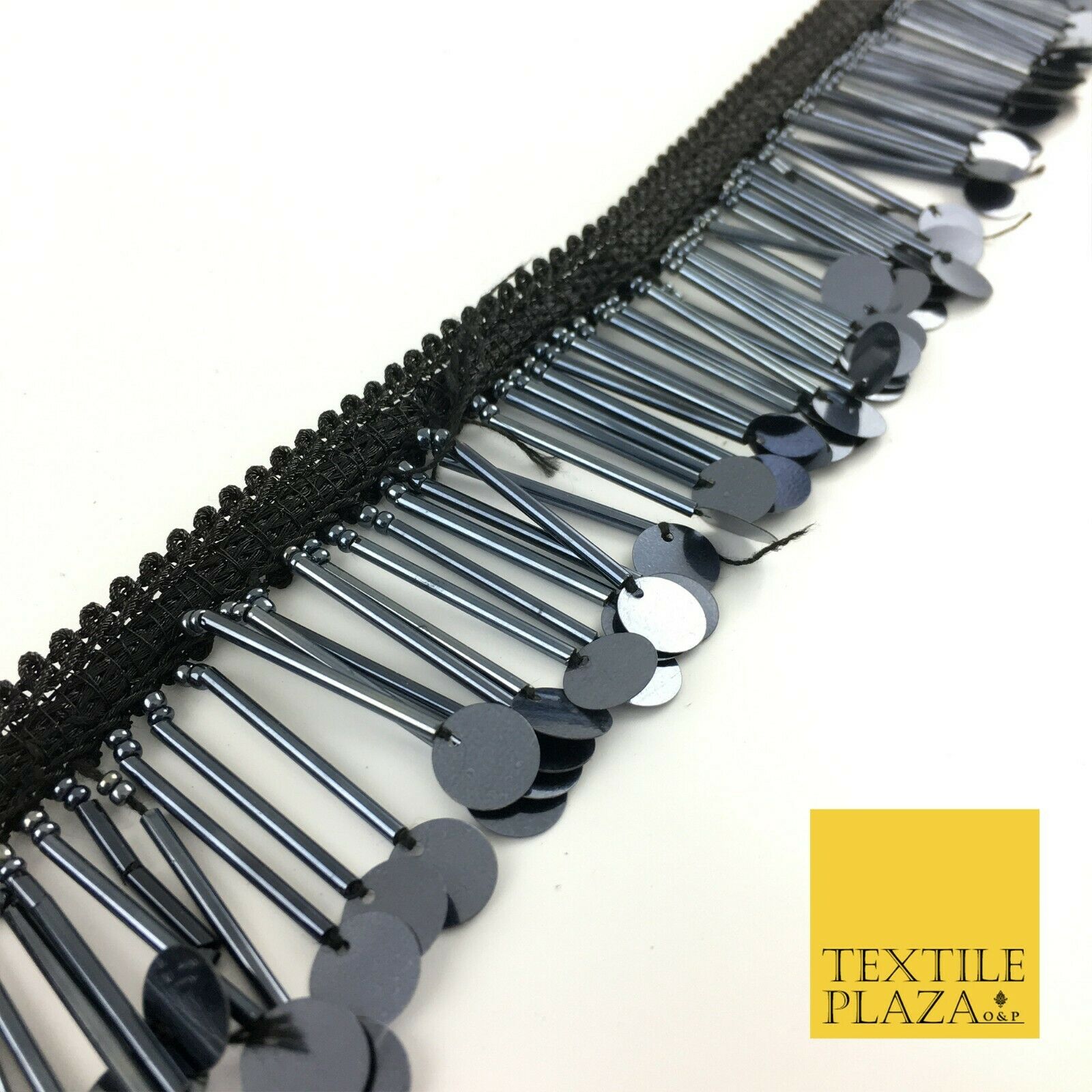 Graphite Sequin Glass Tube Fringe Tassel Drop Trim Ribbon Border Lace (X176)