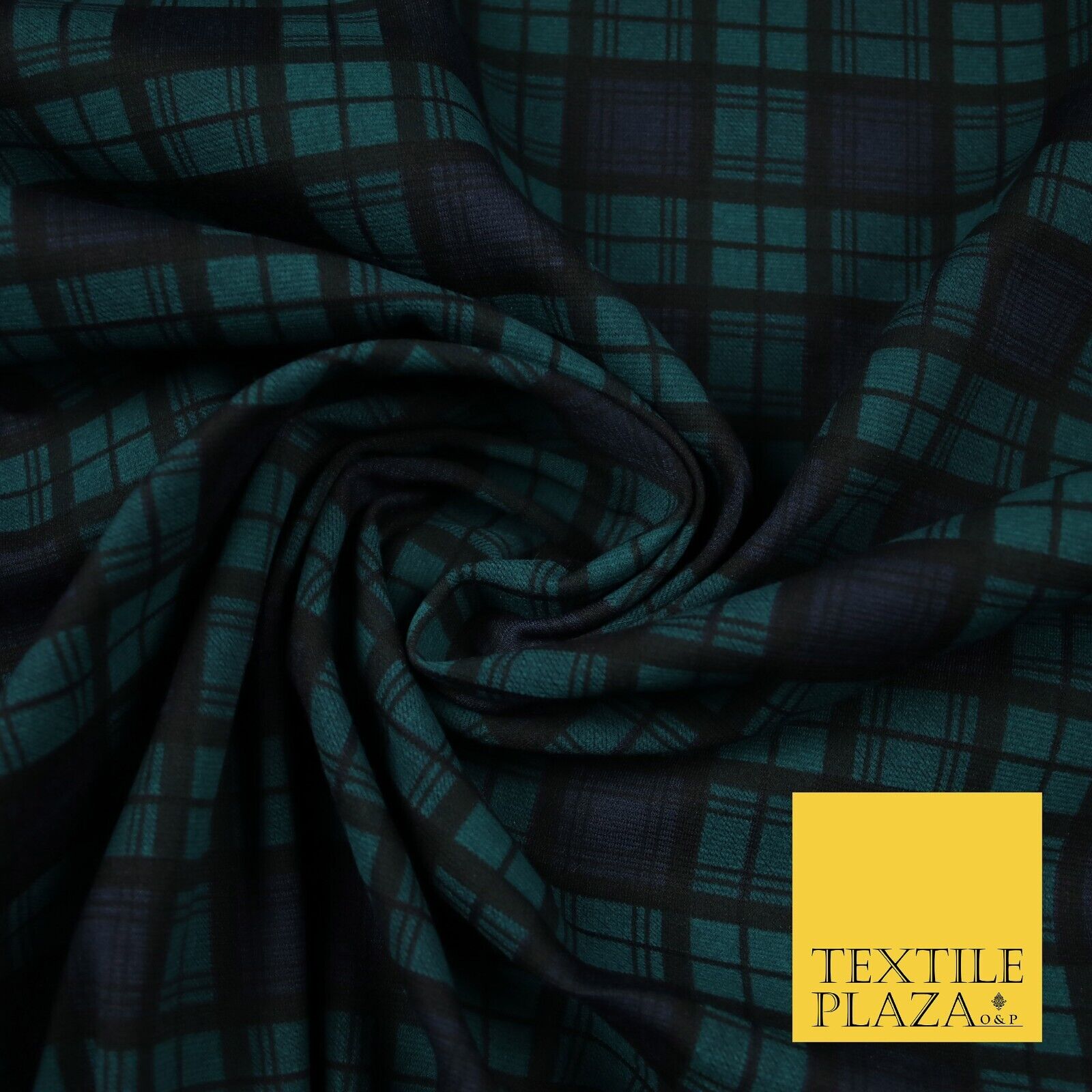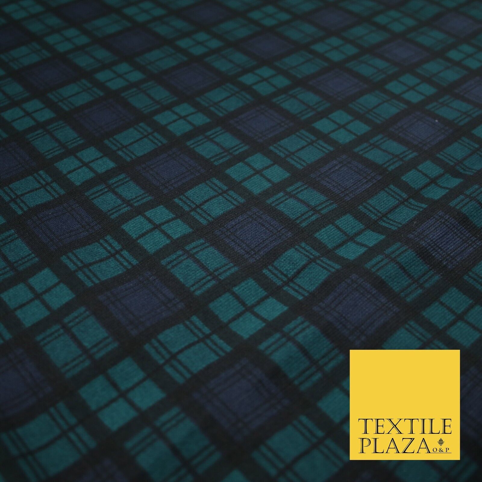 Green & Blue Check Print Soft Touch Stretch Jersey Fabric 56" 6618