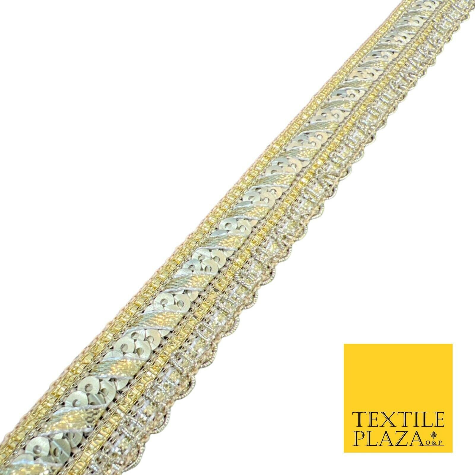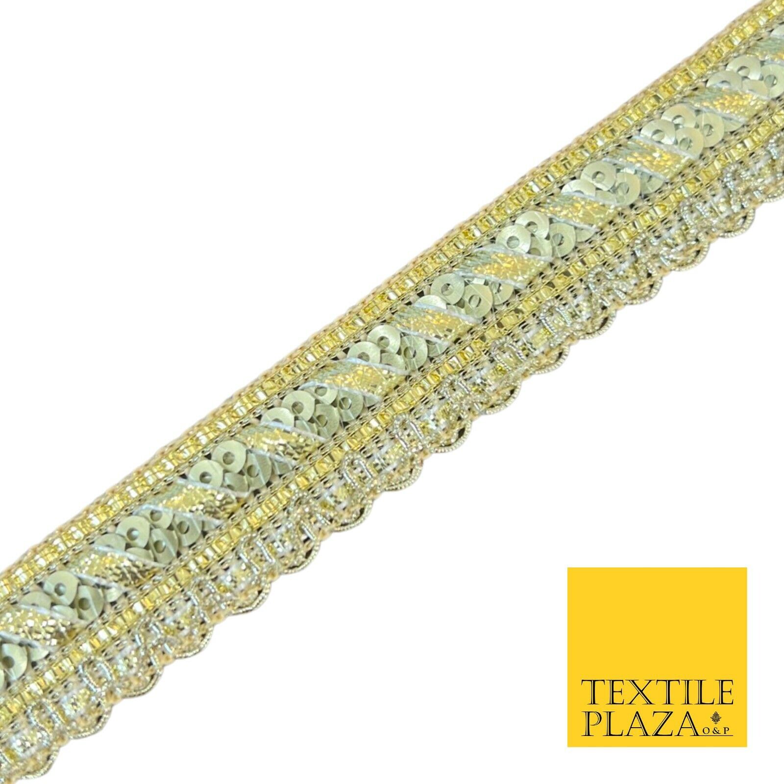 Green Gold Double Sequin Mini Swag Fancy Gota Trim Border Ribbon Lace X547