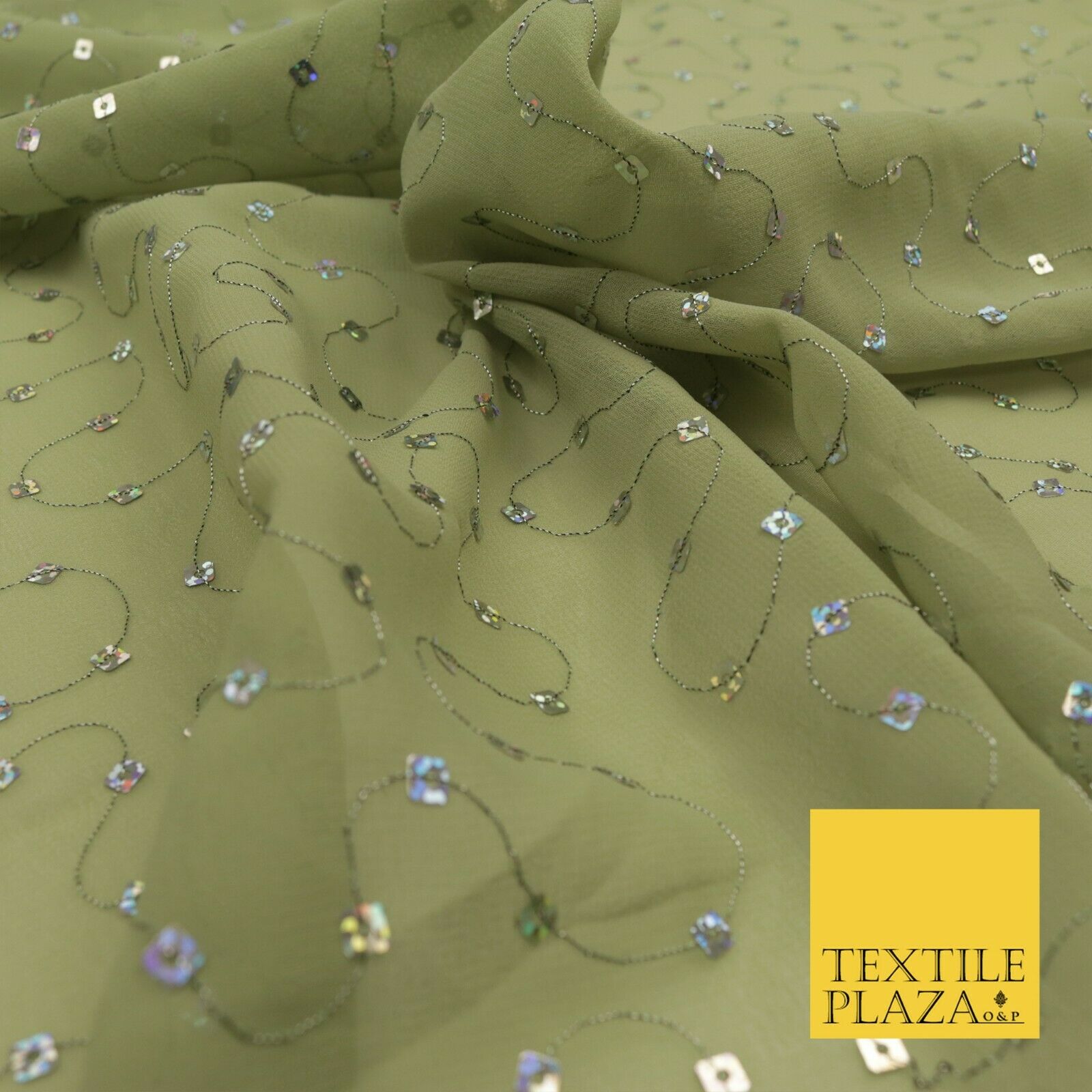 Green Hologram Square Sequin Georgette Dress Fabric Fancy Sparkly Dance 1598