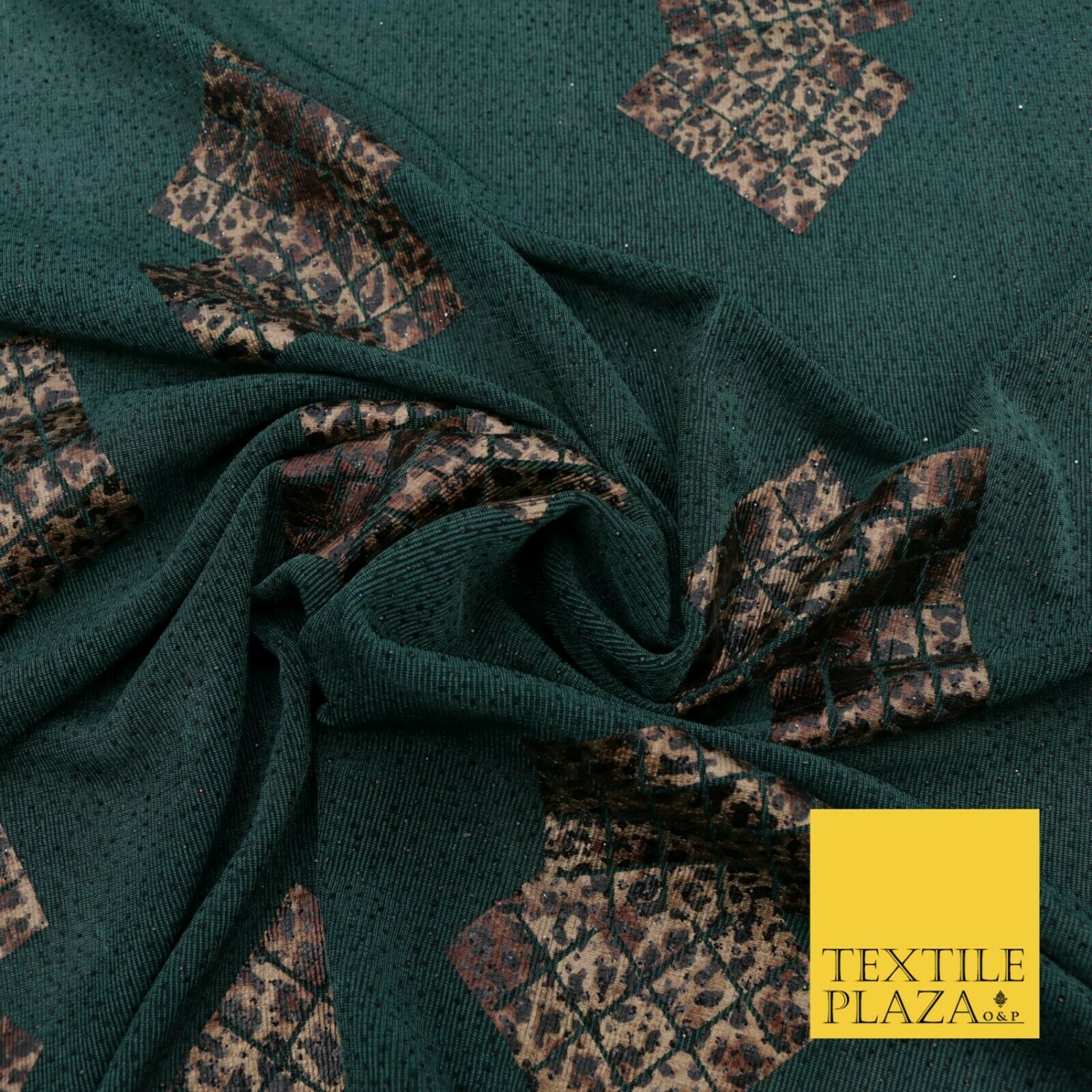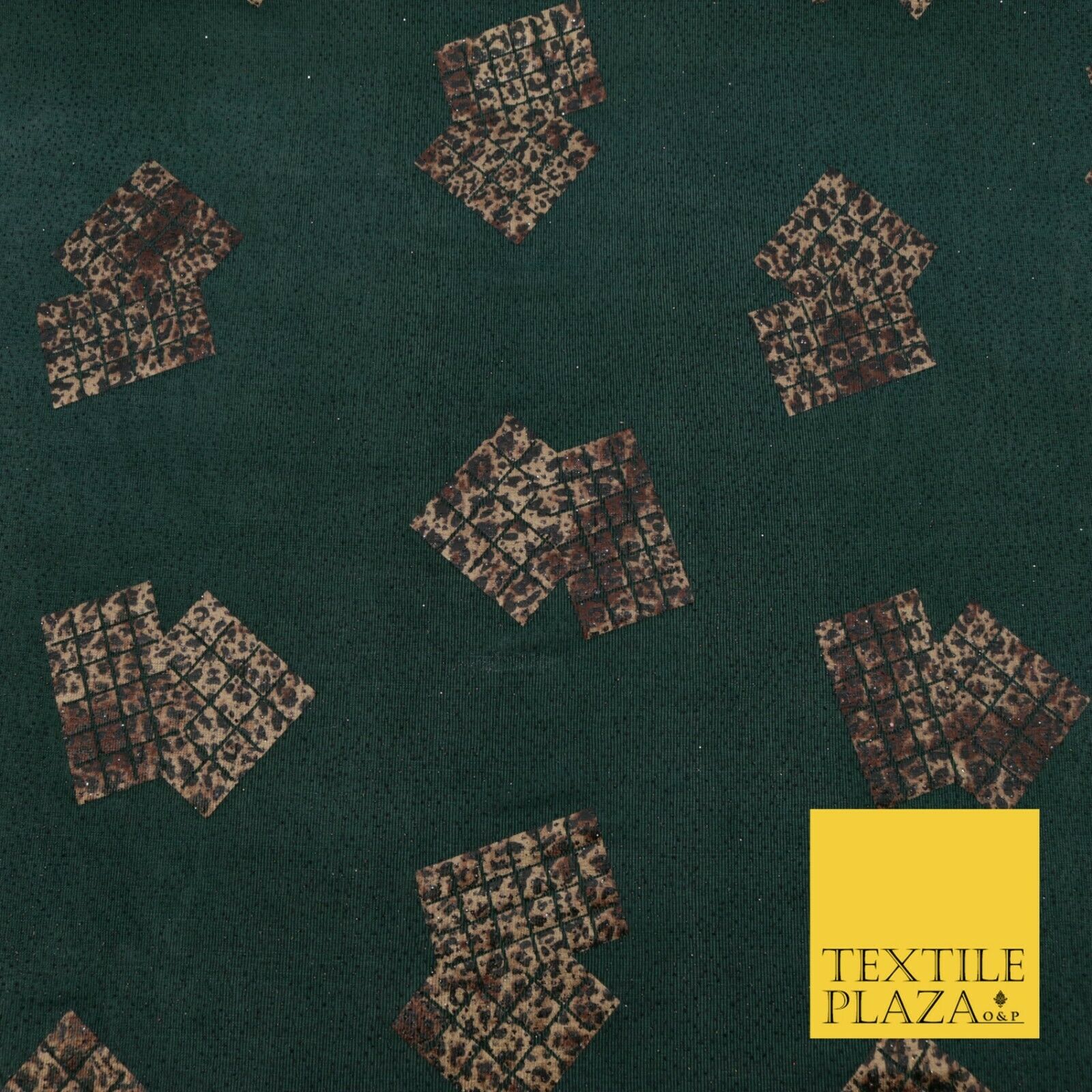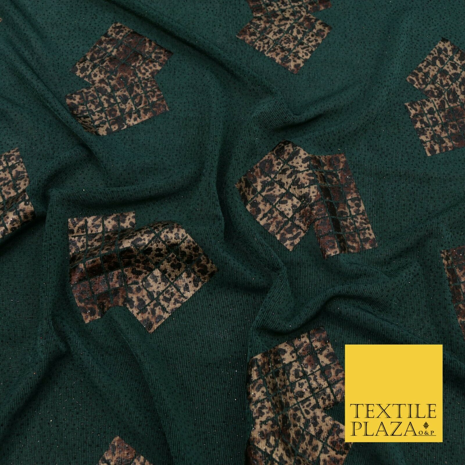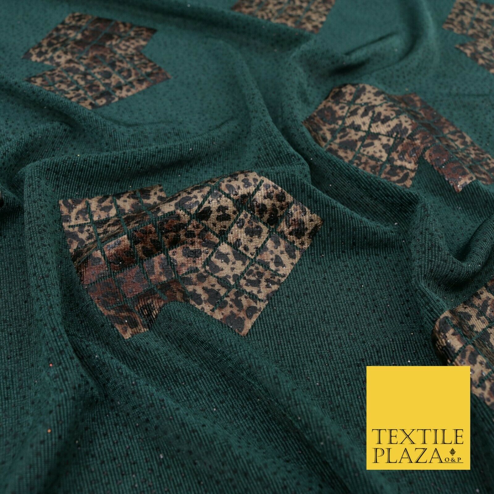 GREEN Leopard Waffle Cube Metallic Glitter Stretch Jersey Fabric - 59" 1575