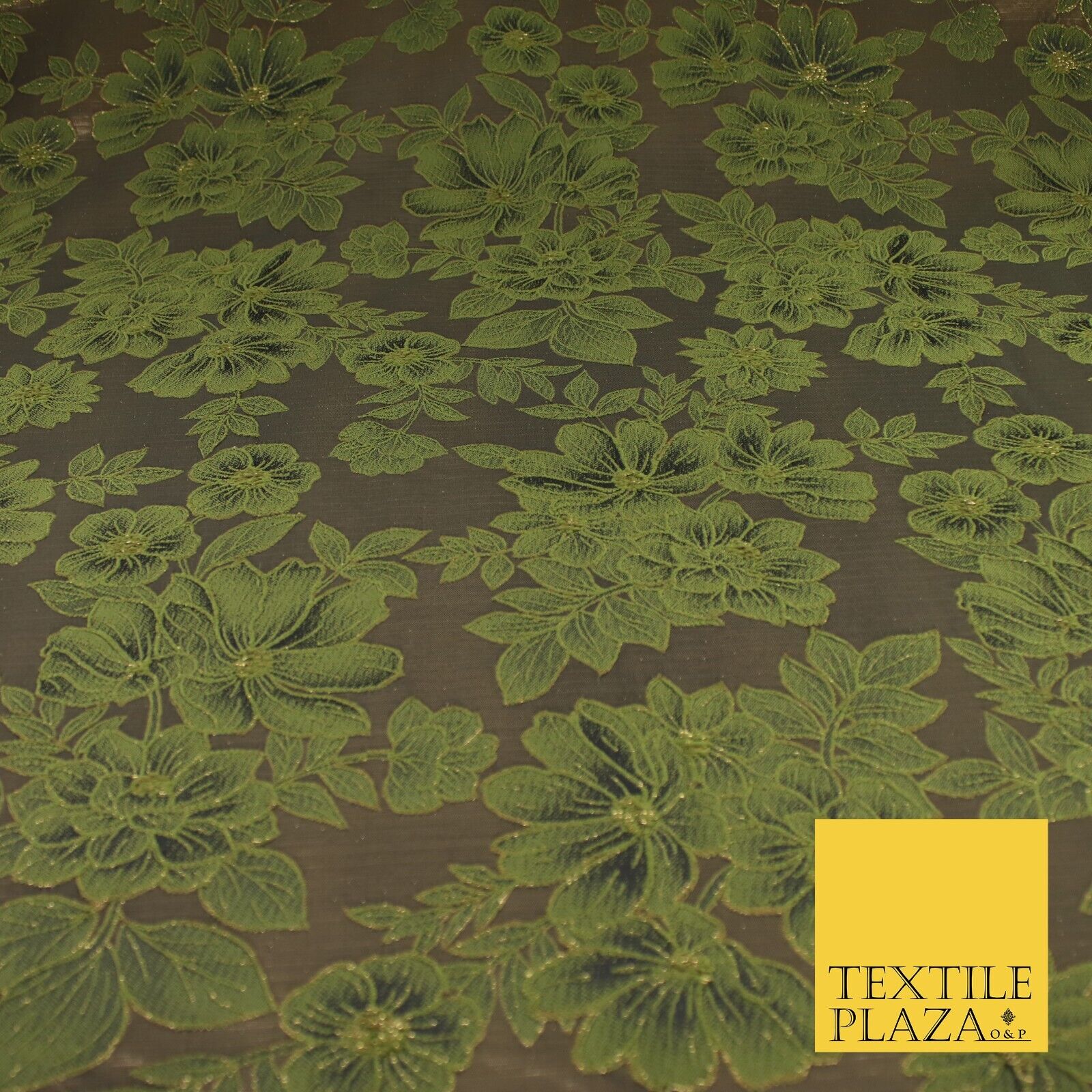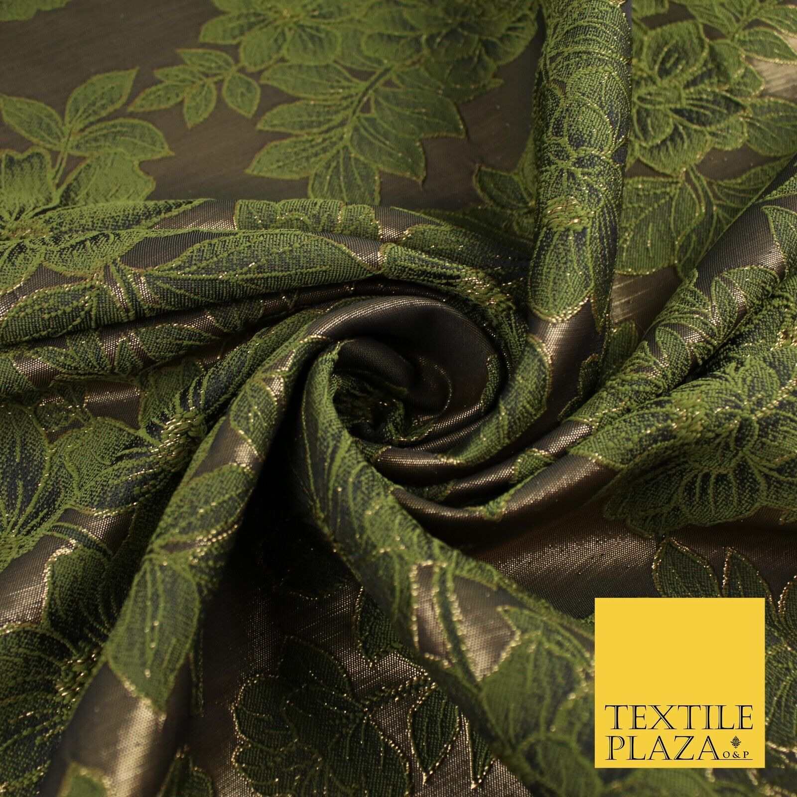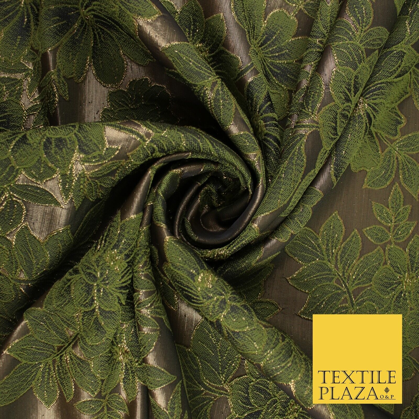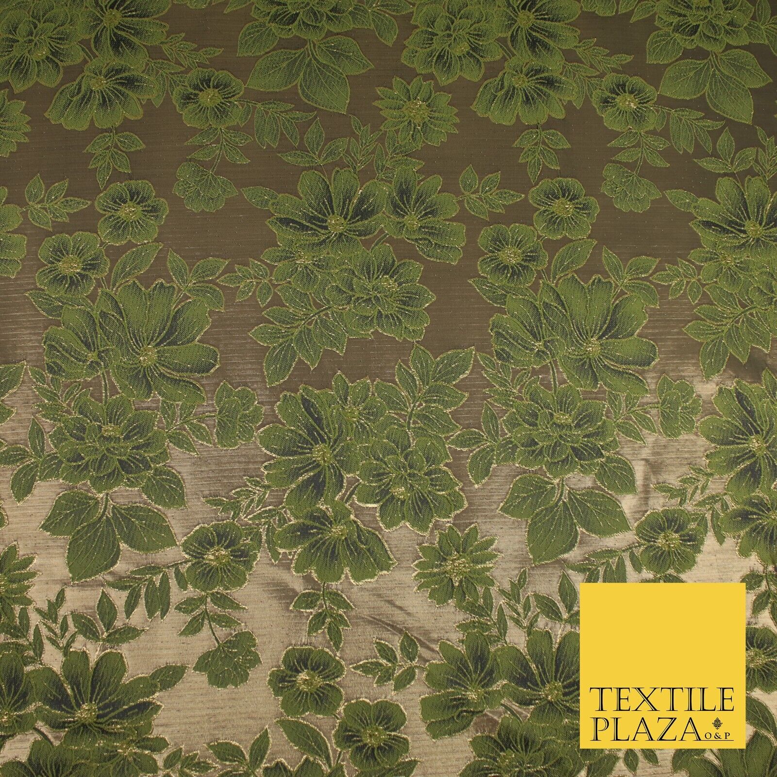 Green Metallic Floral Cluster Textured Brocade Fabric 8536