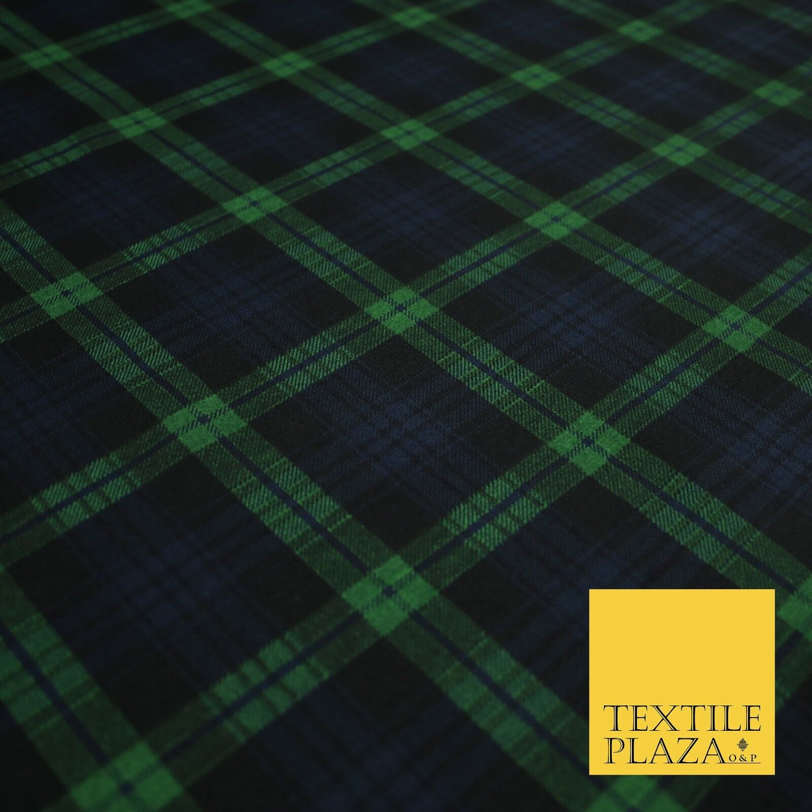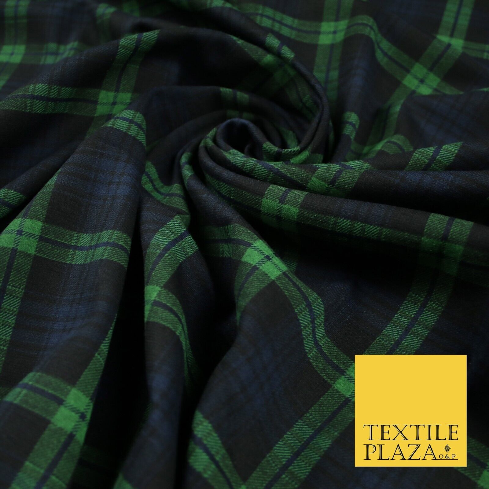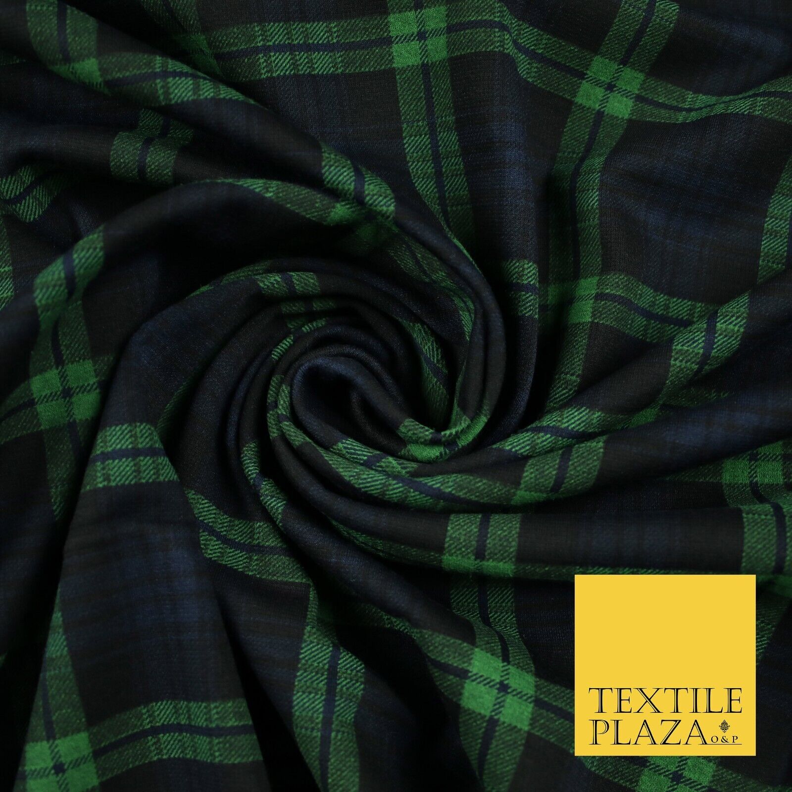 Green & Navy Blue Check Tartan Print Soft Touch Stretch Jersey Fabric 56" 6599