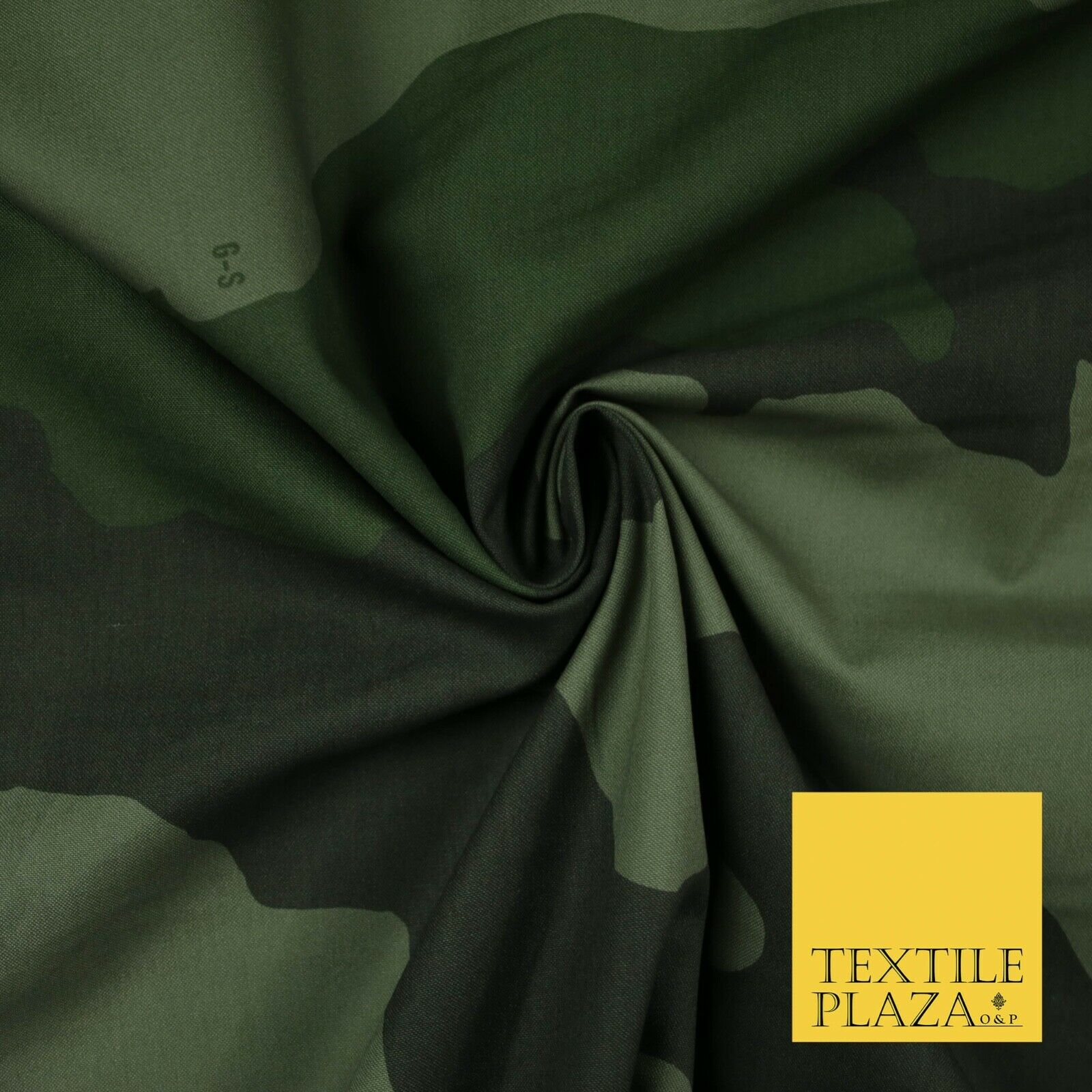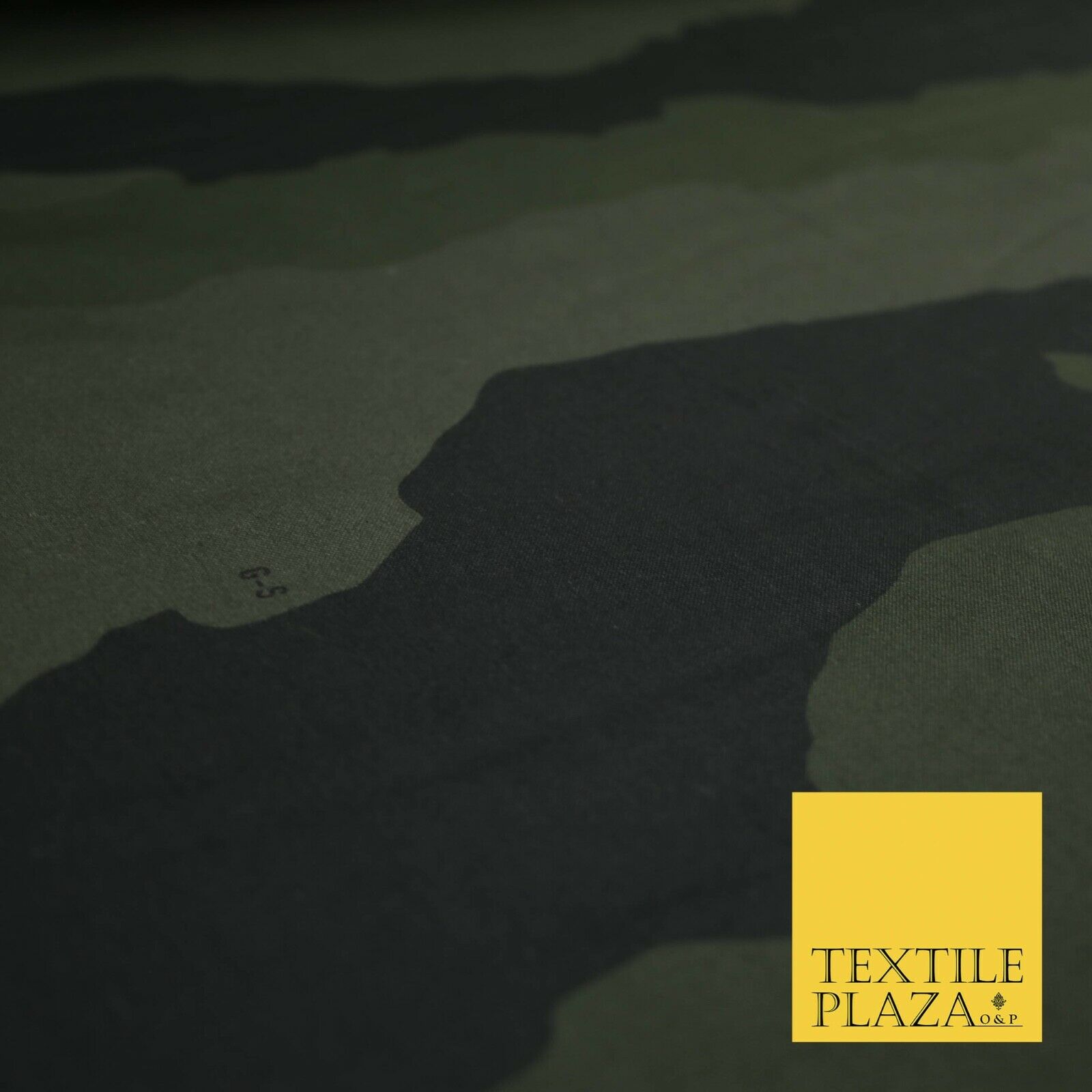 Green Oversized Wave Camouflage Cotton Fine Canvas Fabric Army Military Camo 59"