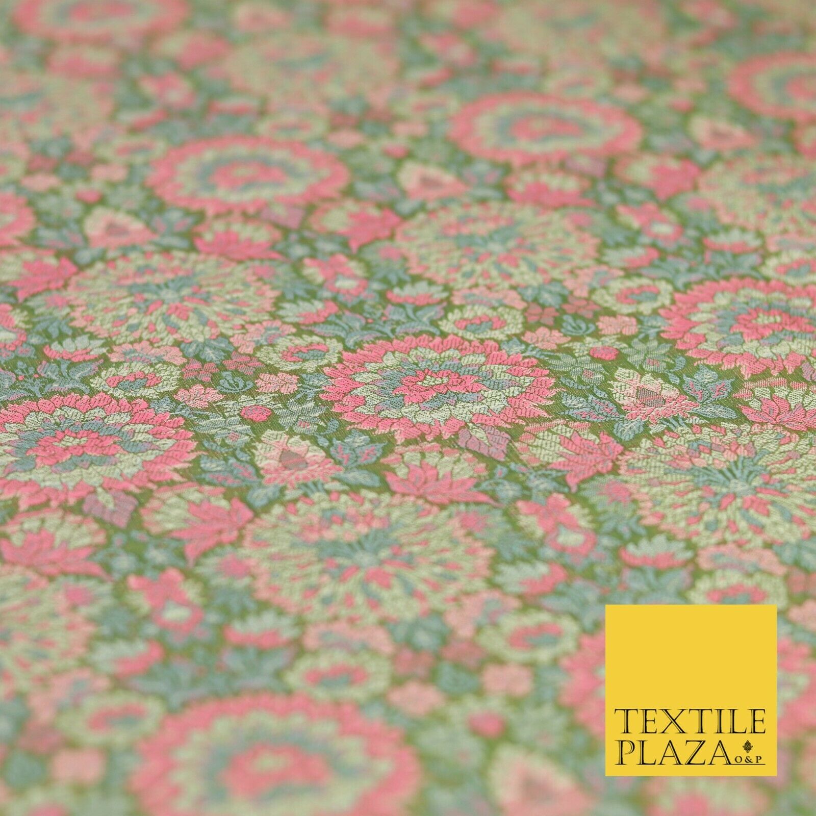 Green Pink Luxury Multi Flower PURE Benarsi Brocade Woven Dress Fabric Fancy1755