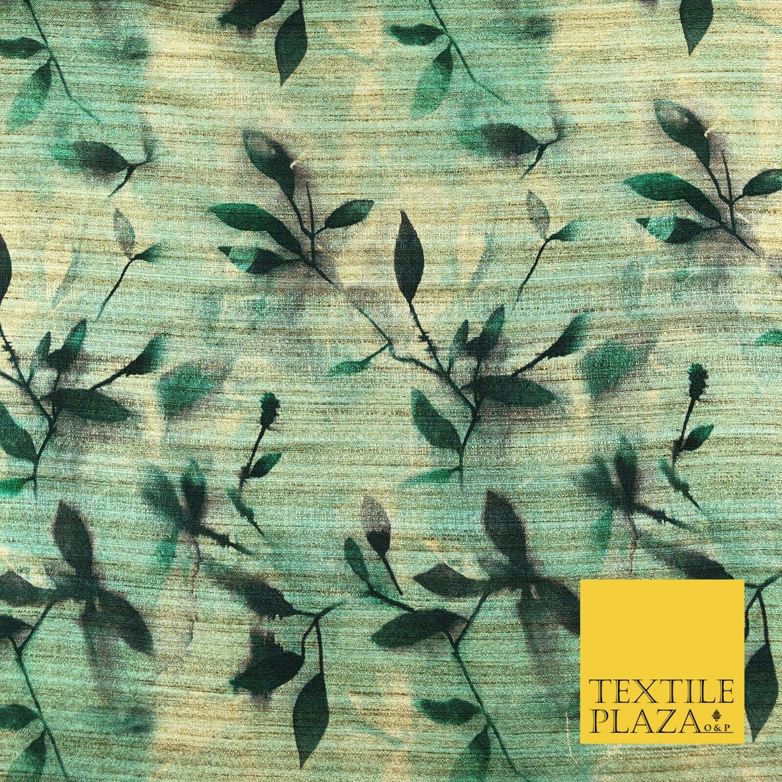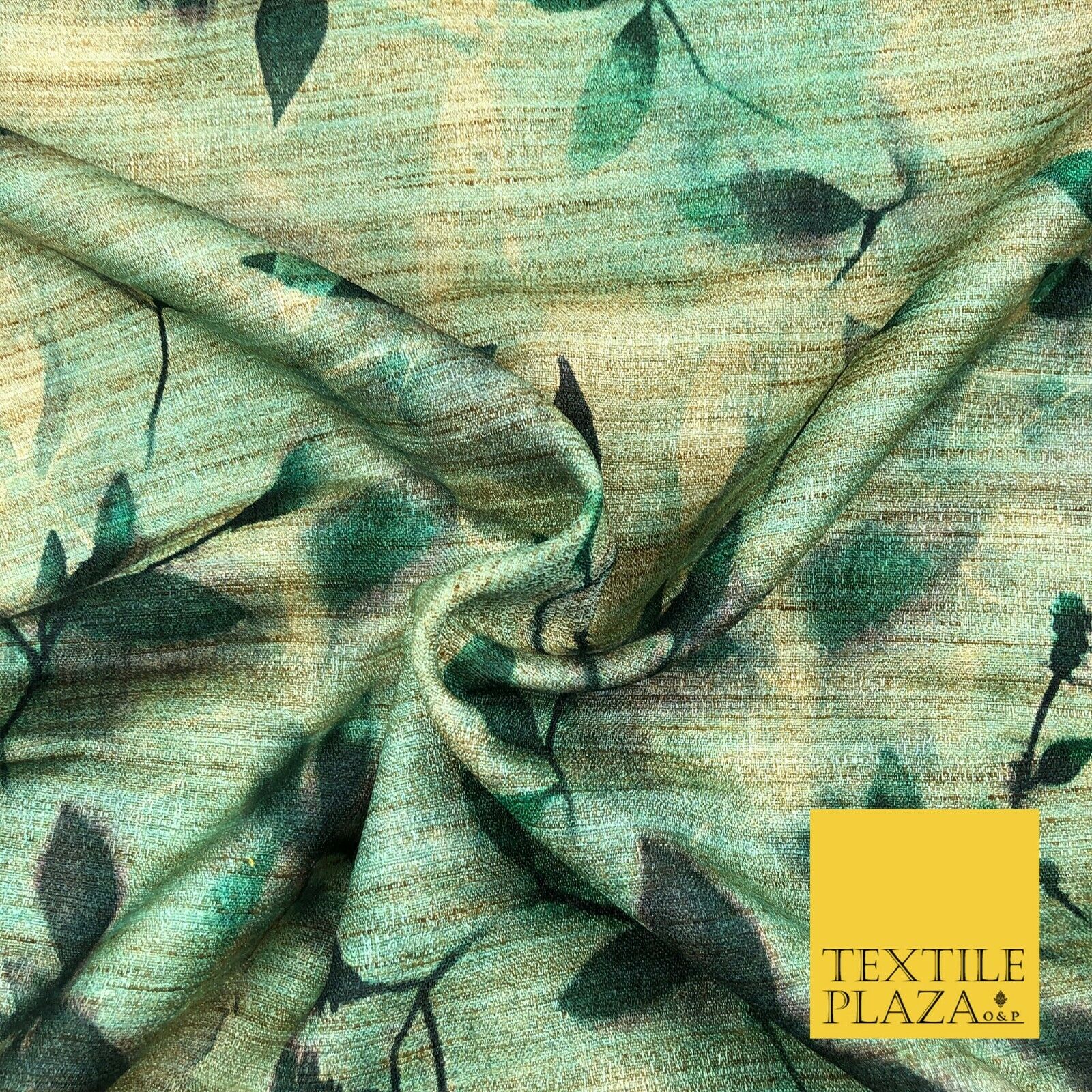 GREEN Shaded Floral Leaves Digital Print Faux Raw Silk Fabric Dress Craft 1466