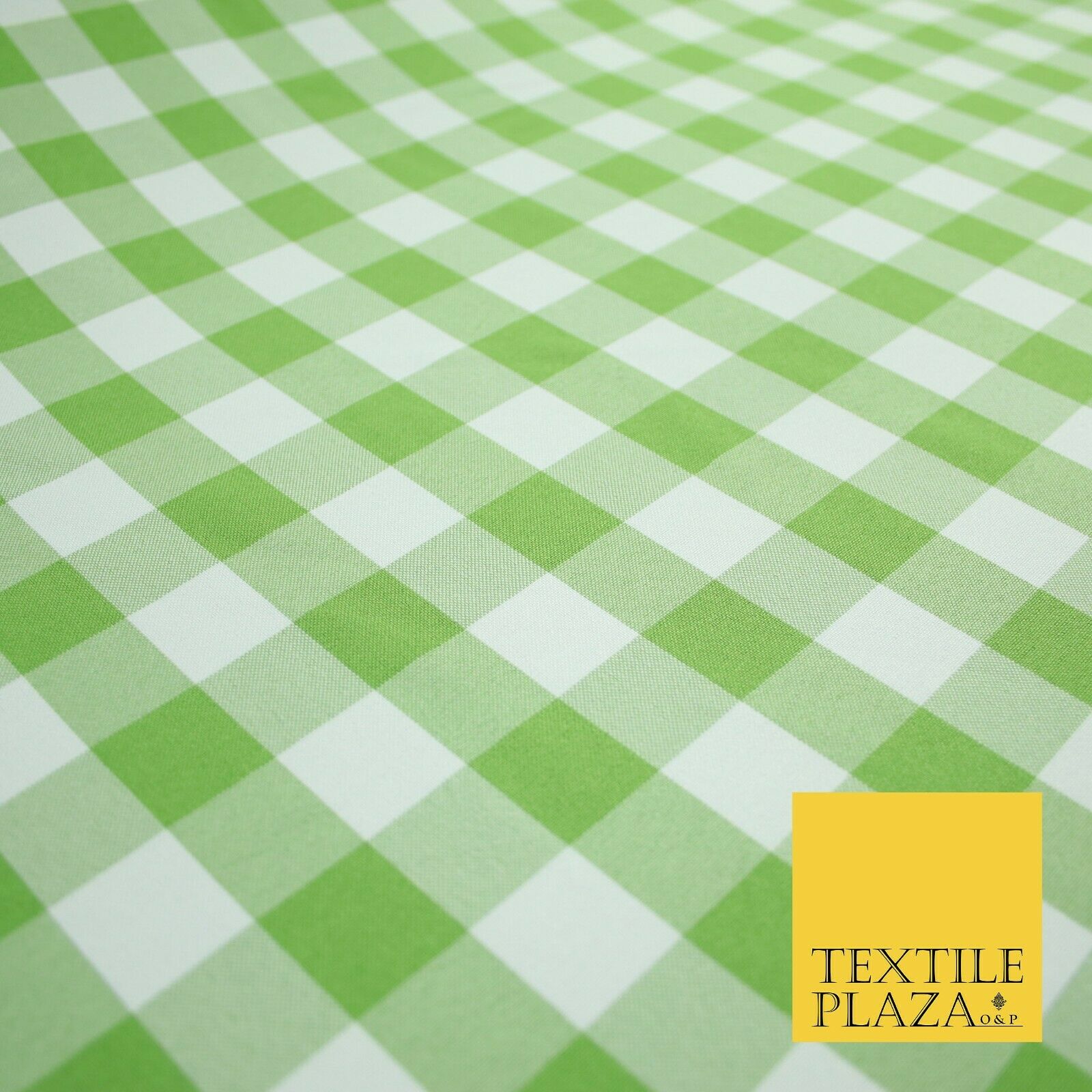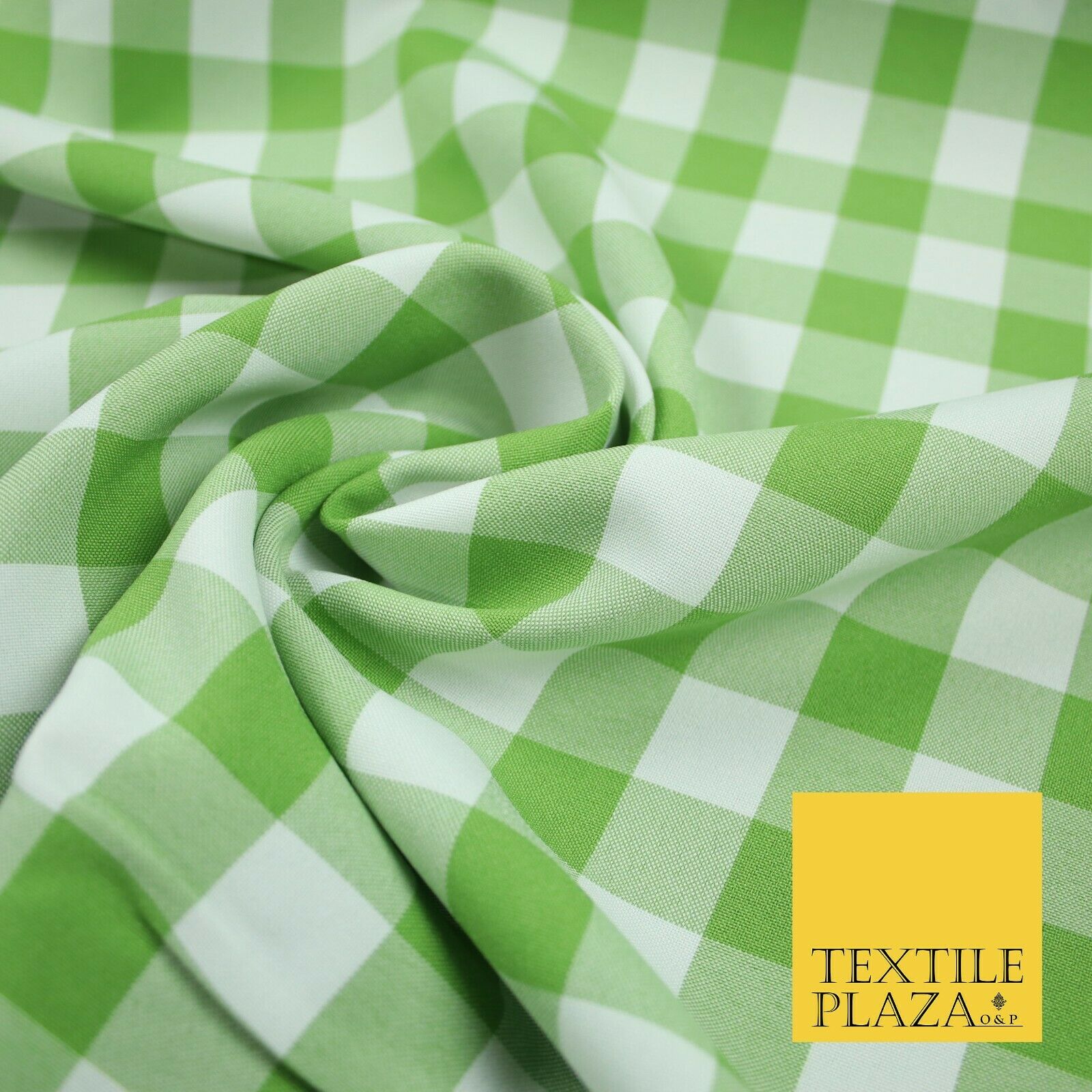 Green & White Gingham Check Bi-Stretch Panama Fabric Uniform Skirts 58" 6461
