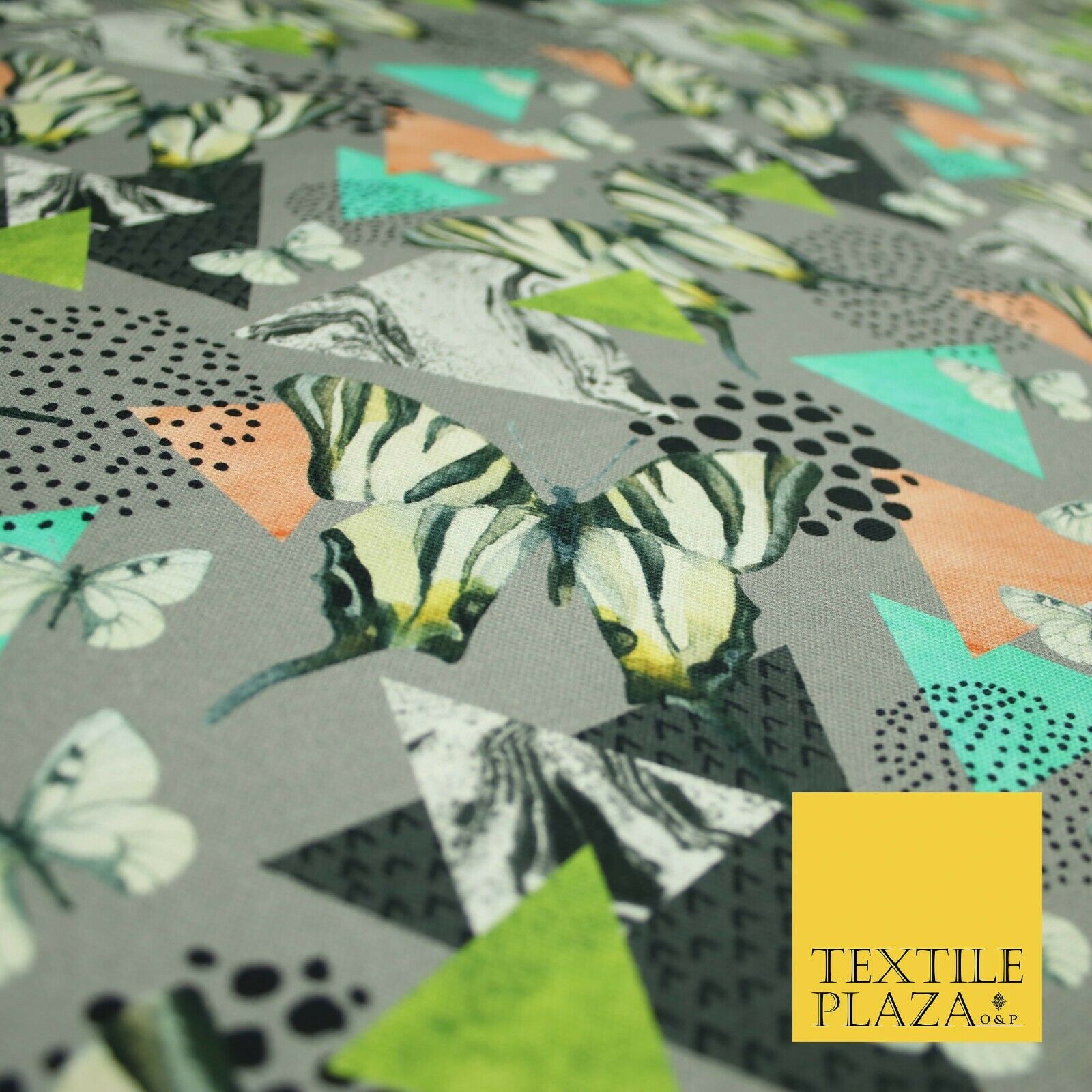 Grey Abstract Wacky Zebra Butterfly Printed 100% Cotton Canvas Fabric 58" 4484