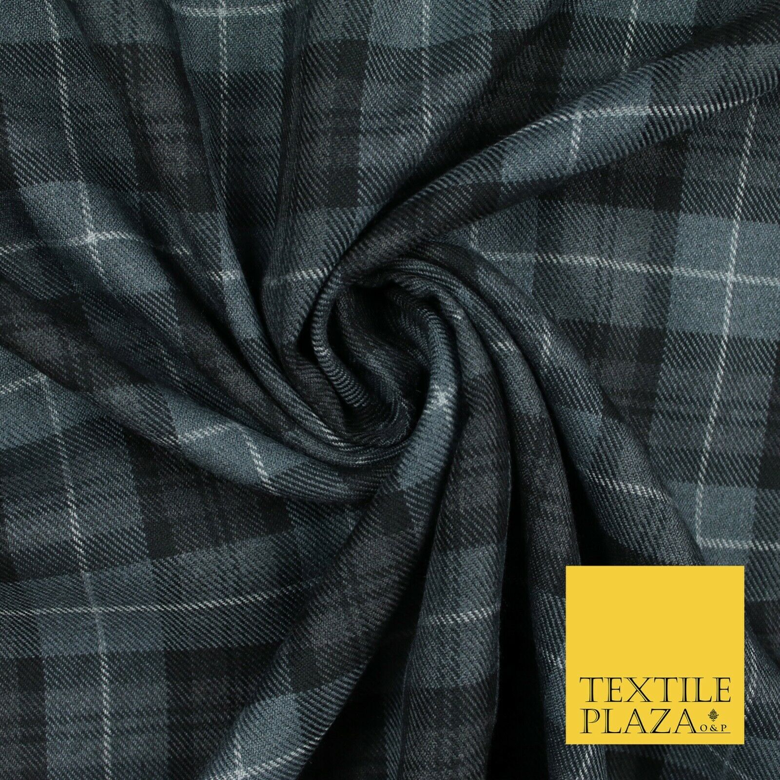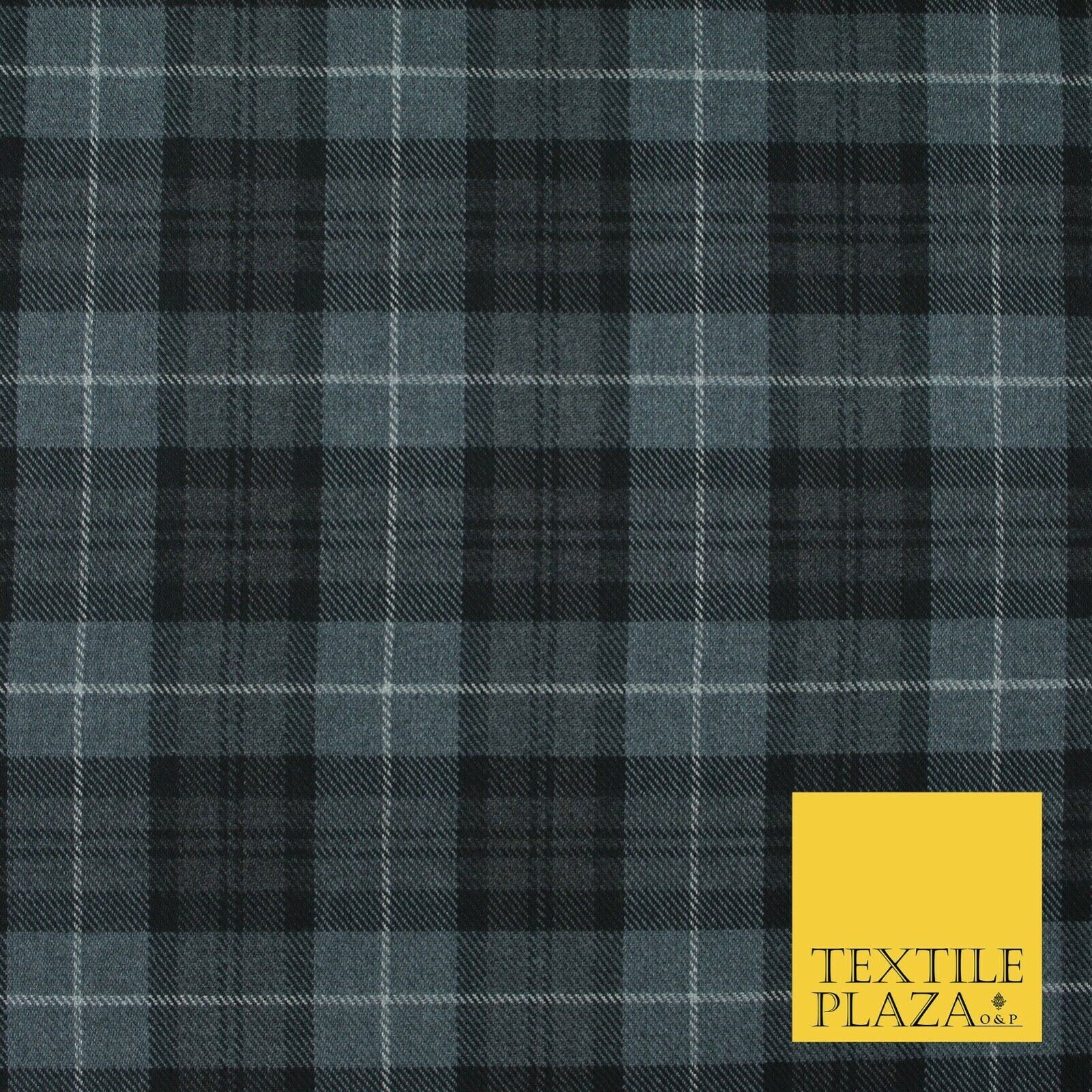 GREY BLACK Douglas TARTAN Polyester Viscose Fabric Material 58" Craft Dress 6440