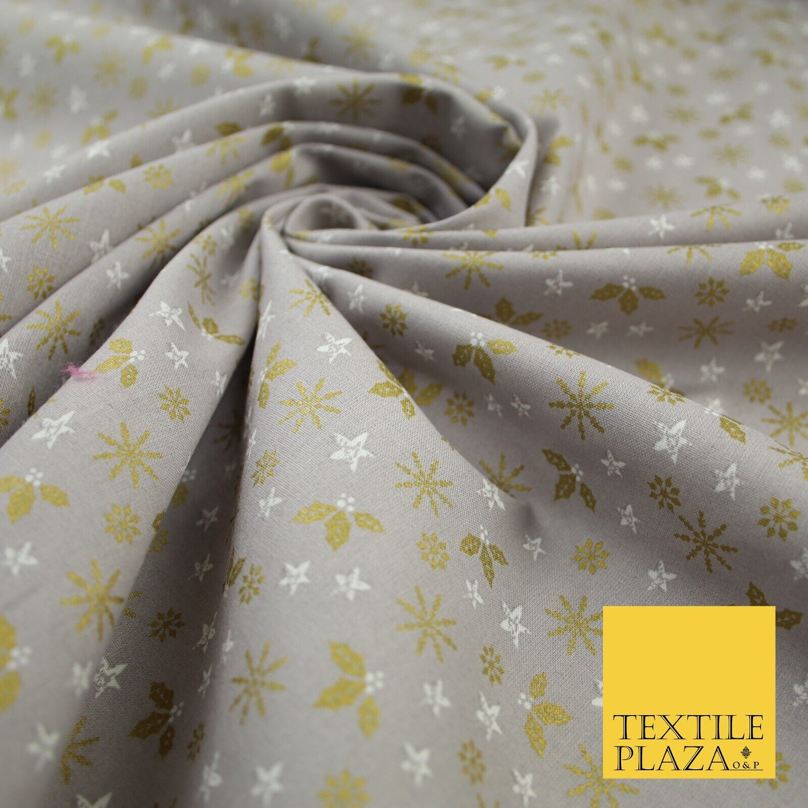 Product form Grey Gold Metallic Snowflake Star Holly Festive Printed 100% Cotton Fabric 8240 £6.99 Snowflakes Holly Stars Festive Printed Cotton Fabric Fabric : 100% COTTON Colour: GREY Available to purchase by the Metre. Sizes... Read more Read more 1 Metre Sample (10cm x 10cm) Size 1 Metre Sample (10cm x 10cm) Free pickup in our shop(s) Show extra info for delivery time Add to cart This item is a recurring or deferred purchase. By continuing, I agree to the cancellation policy and authorize you to charge my payment method at the prices, frequency and dates listed on this page until my order is fulfilled or I cancel, if permitted. Shipped today? Order within: Jan 07, 2026 12:00:00 +0000 Reviews 0 reviews Share with your friends Share WhatsApp Deel X Pin it Messenger Email Description Snowflakes Holly Stars Festive Printed Cotton Fabric Fabric : 100% COTTON Colour: GREY Available to purchase by the Metre. Sizes are as follows: Each Metre is approx. 39" by 59" (100cm by 150cm) Can be used for festive activities, bunting, table coverings, sacks, craft, sewing and much more! Images are for illustrative purposes. Colour Shade may vary.
