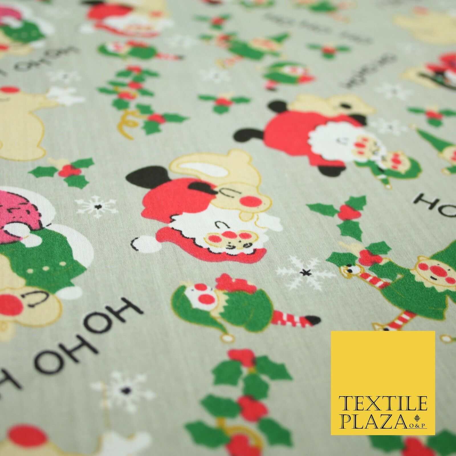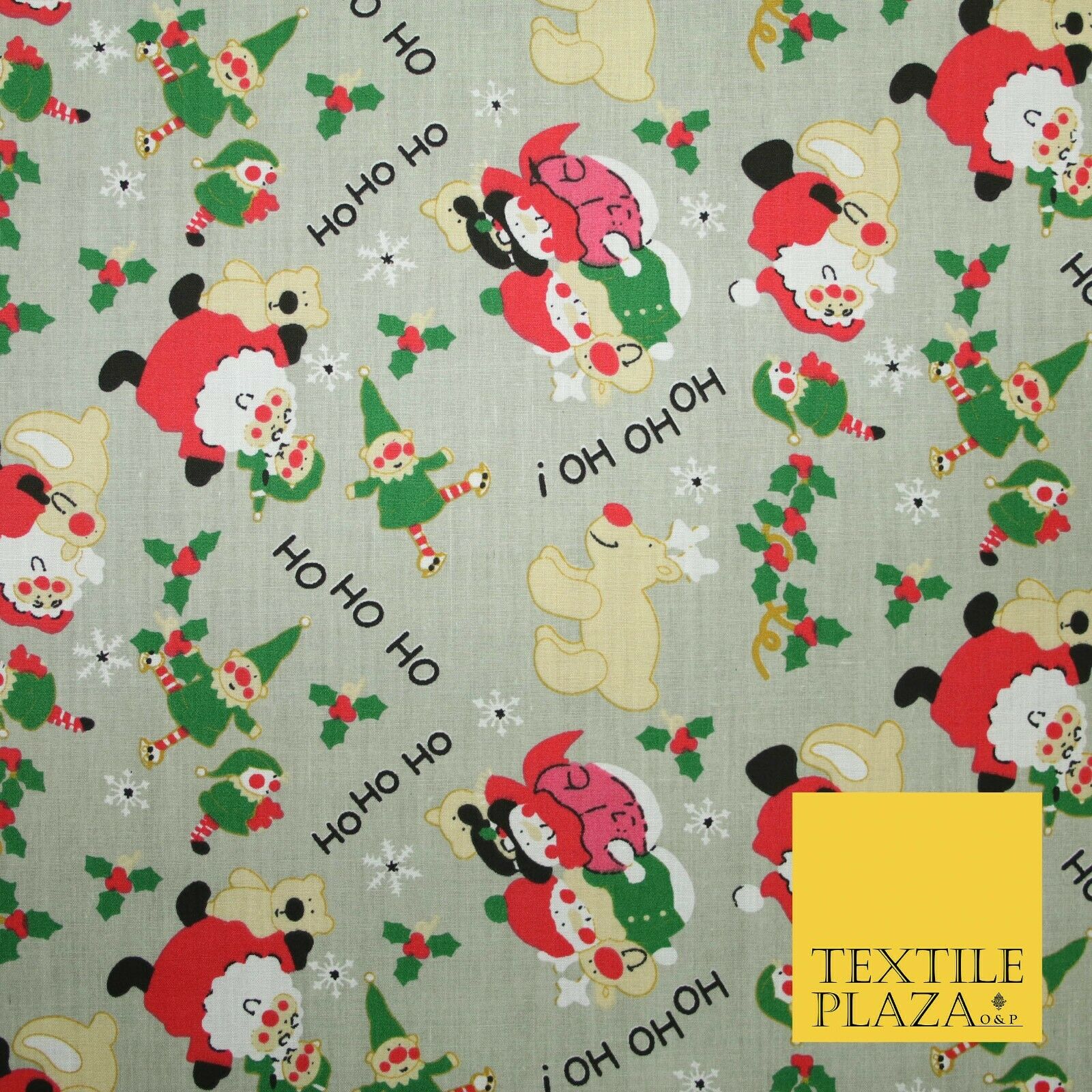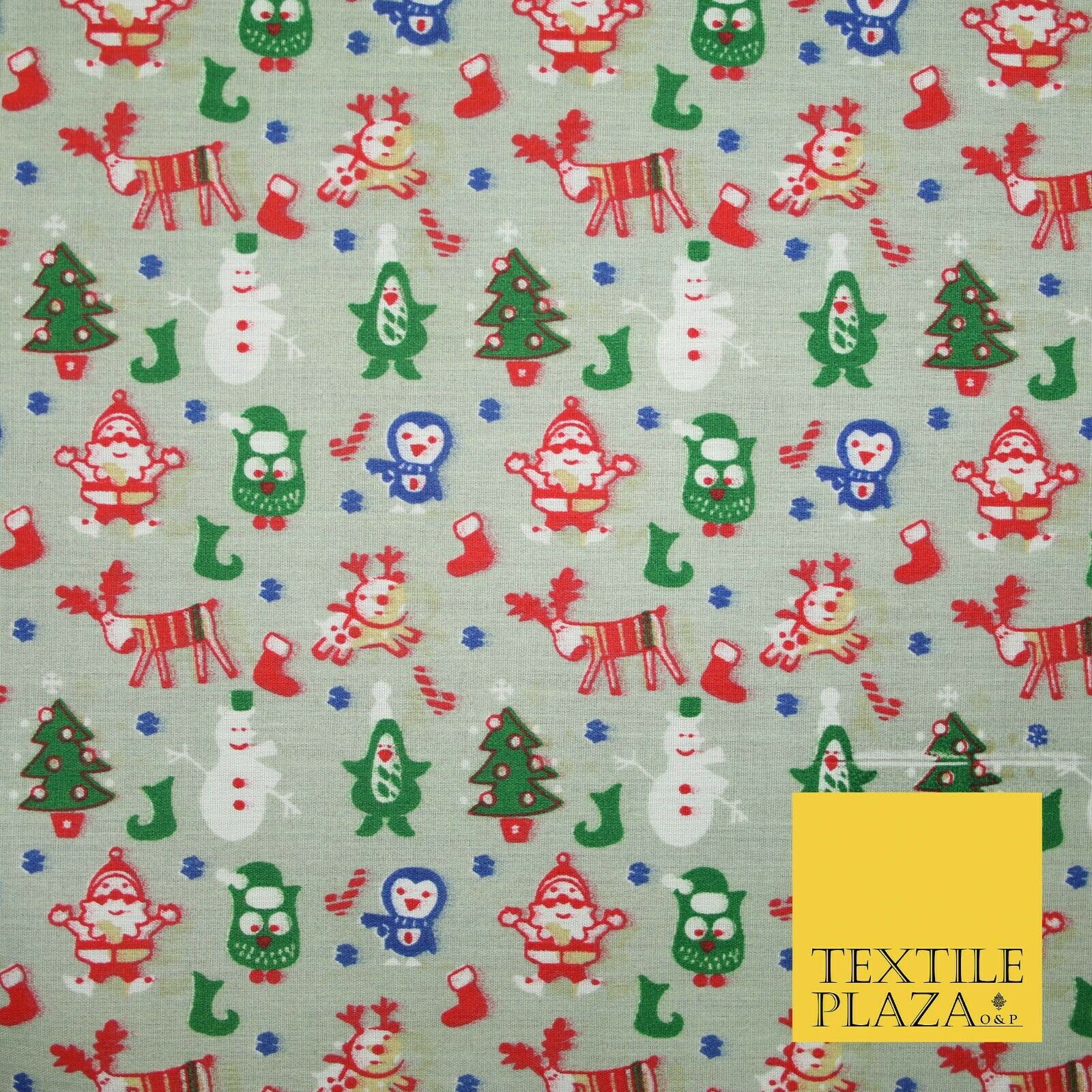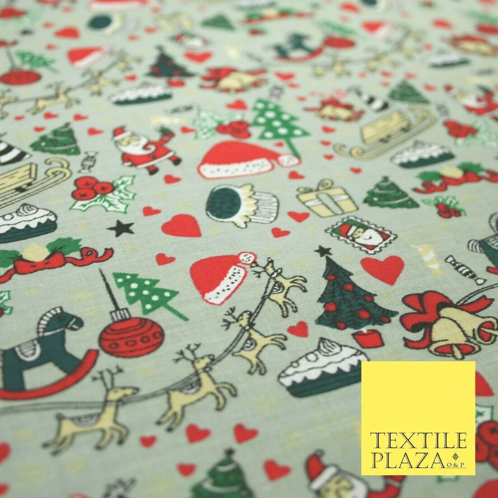 Grey Mix 3 Designs Festive Christmas Xmas Printed Poly Cotton Fabric Polycotton