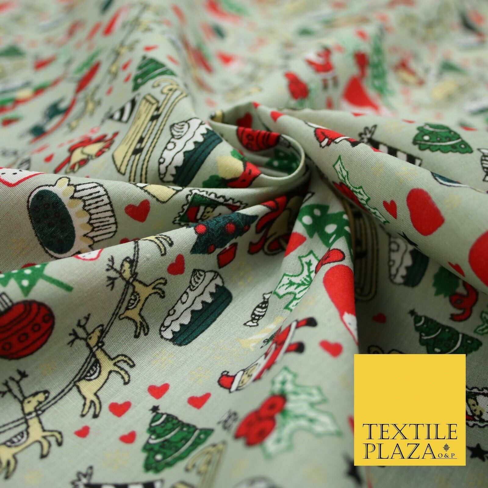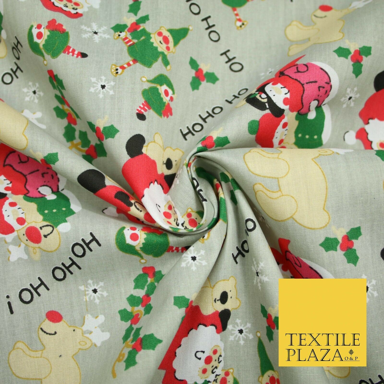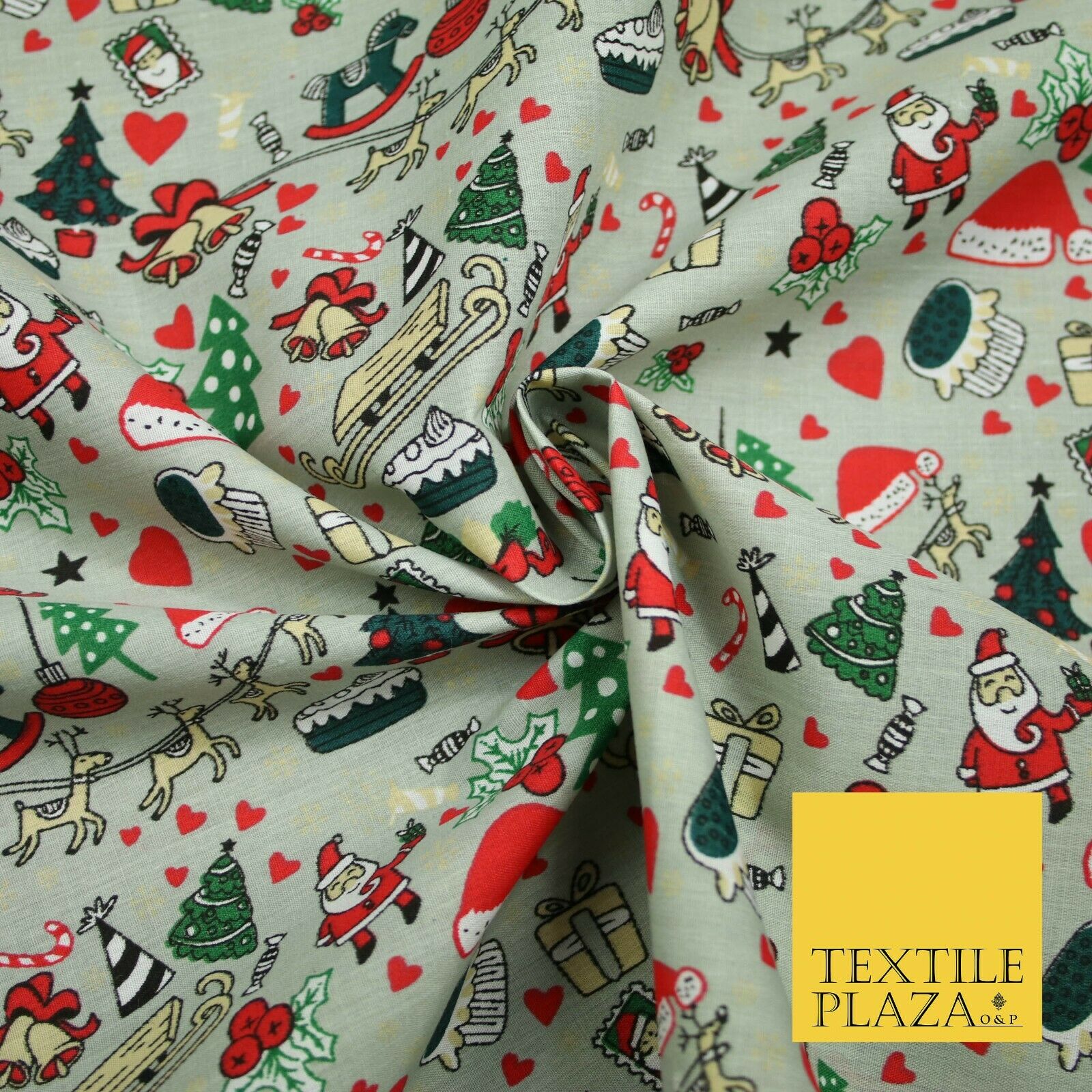 Grey Mix 3 Designs Festive Christmas Xmas Printed Poly Cotton Fabric Polycotton