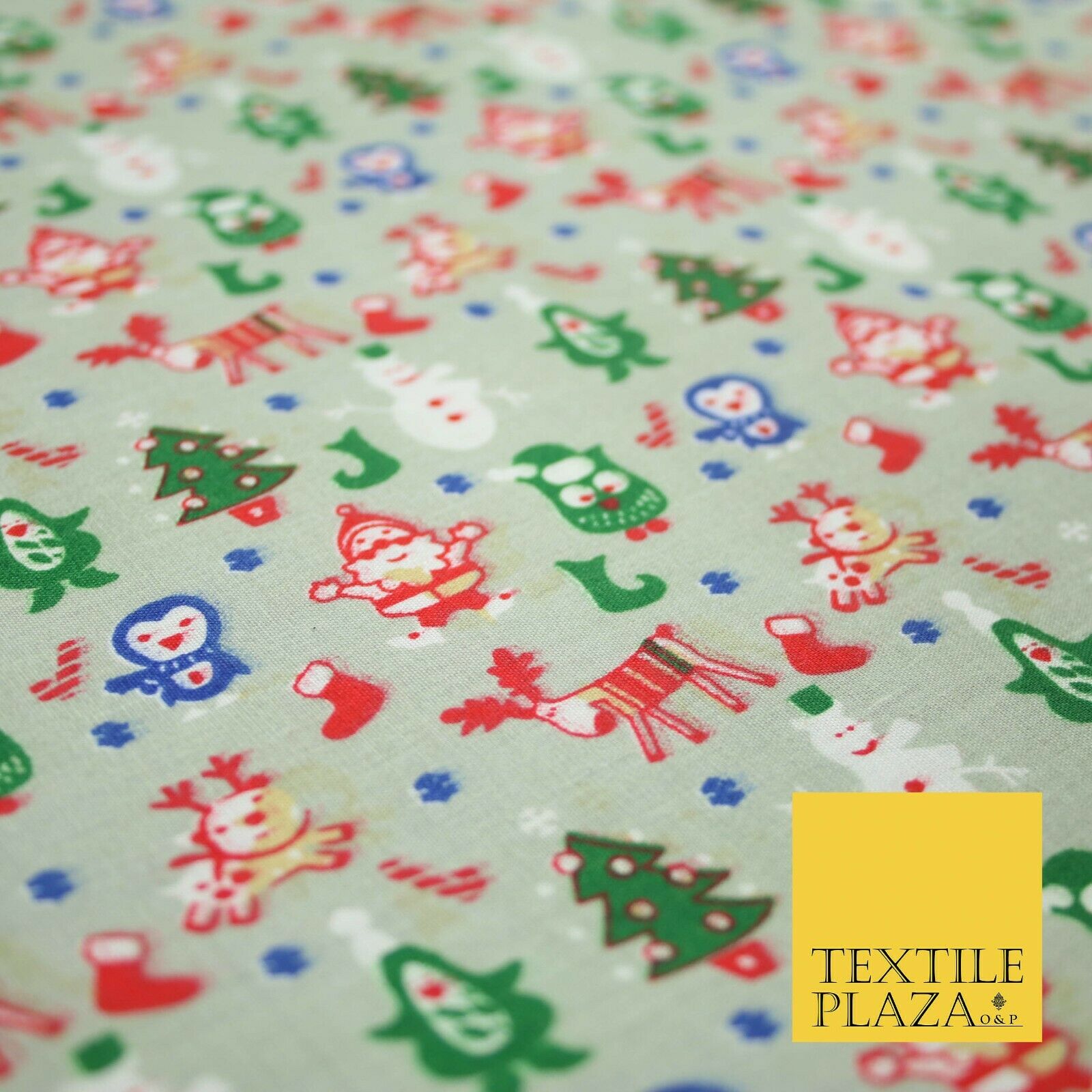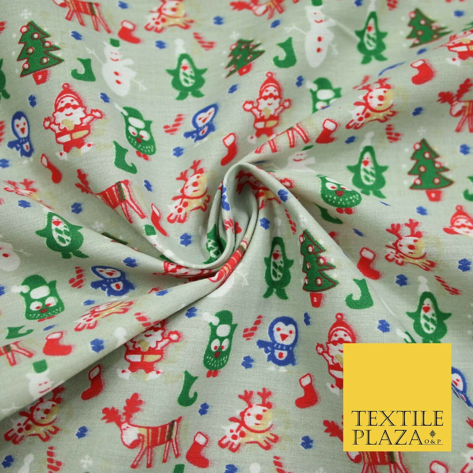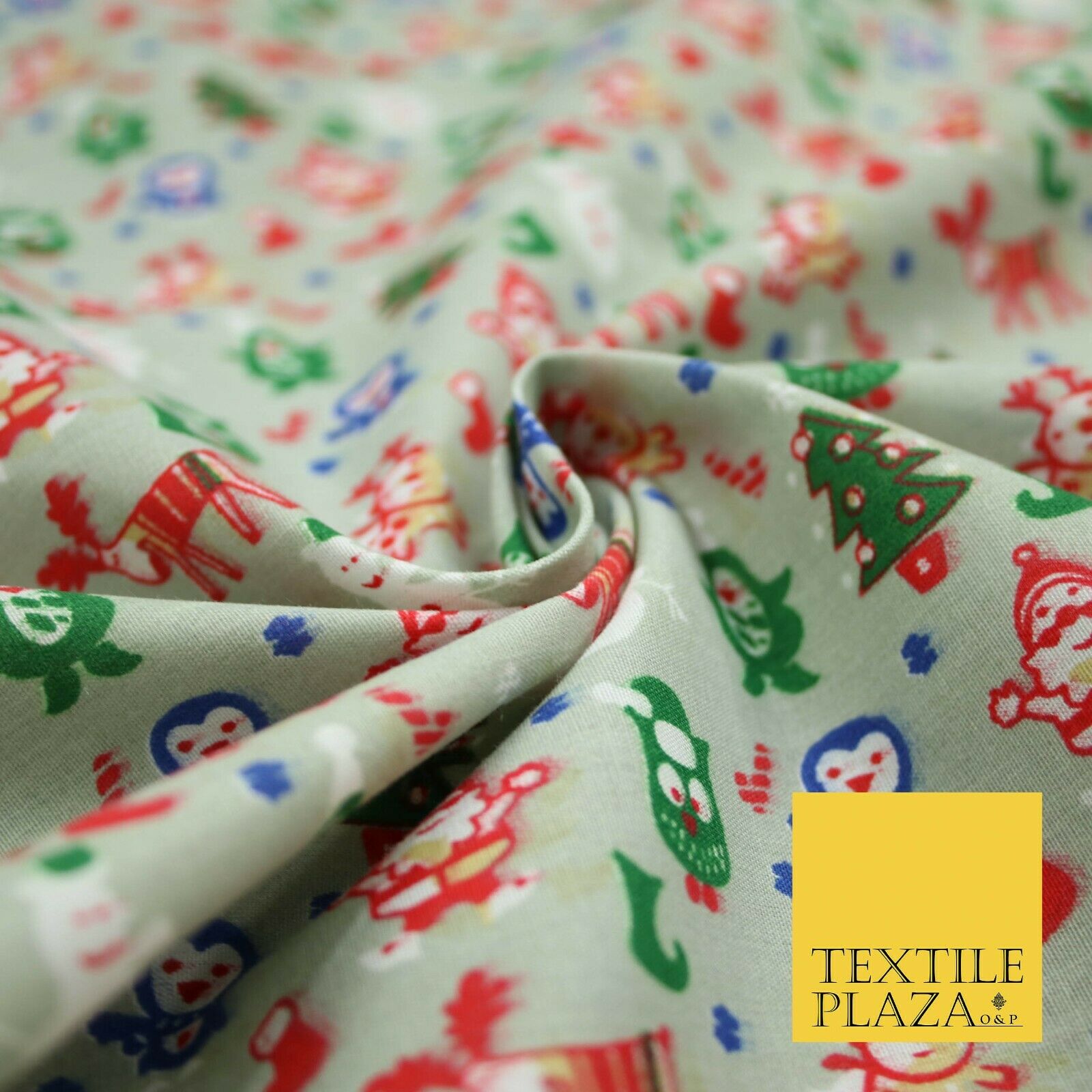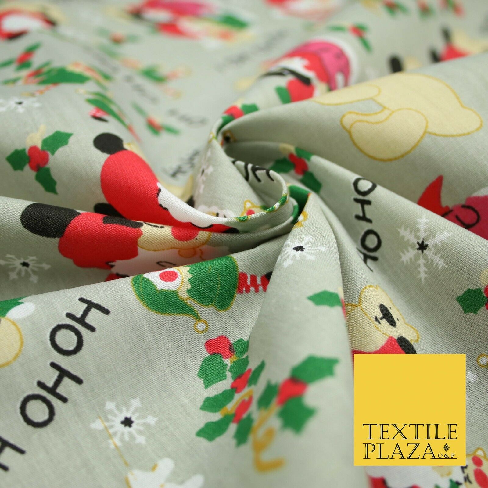 Grey Mix 3 Designs Festive Christmas Xmas Printed Poly Cotton Fabric Polycotton