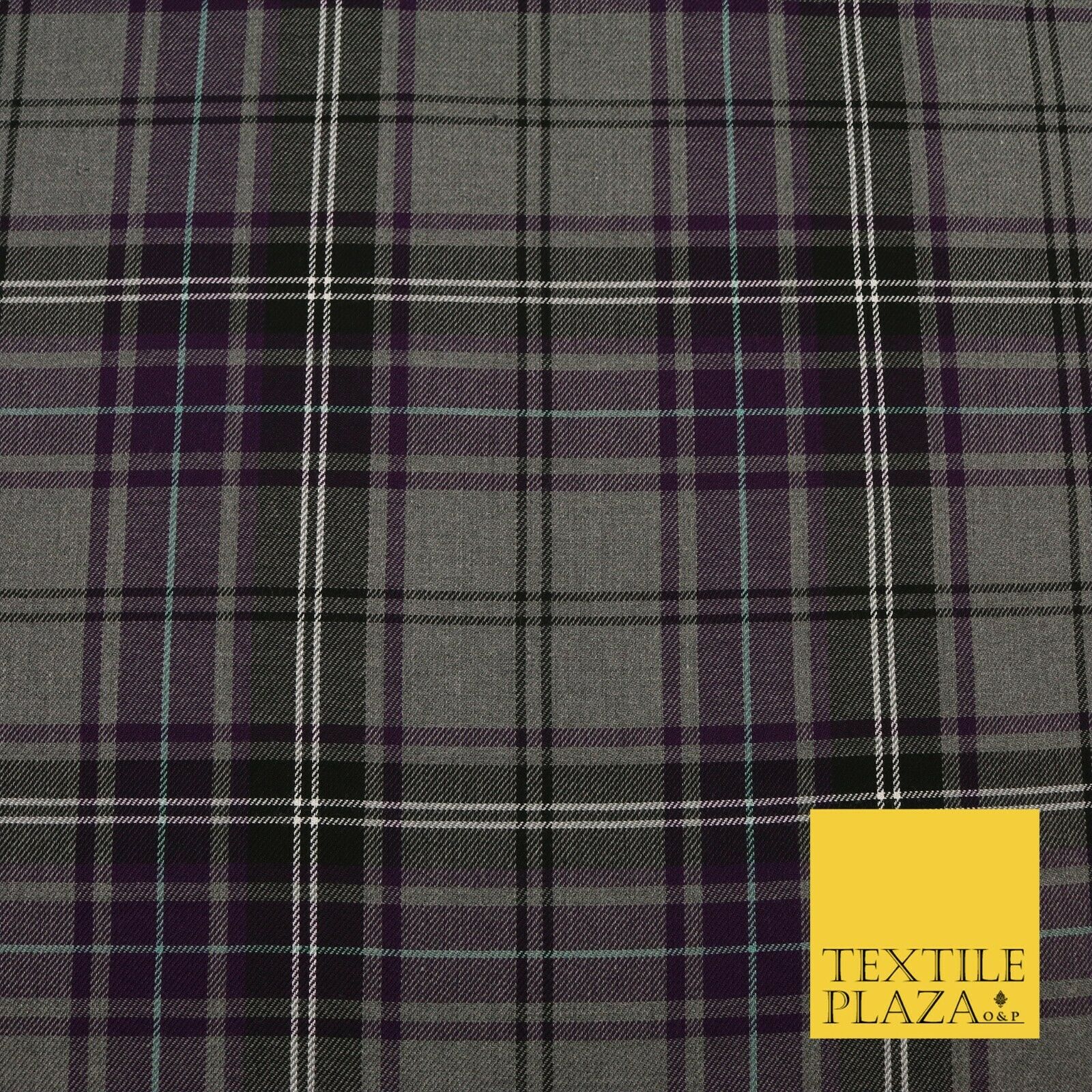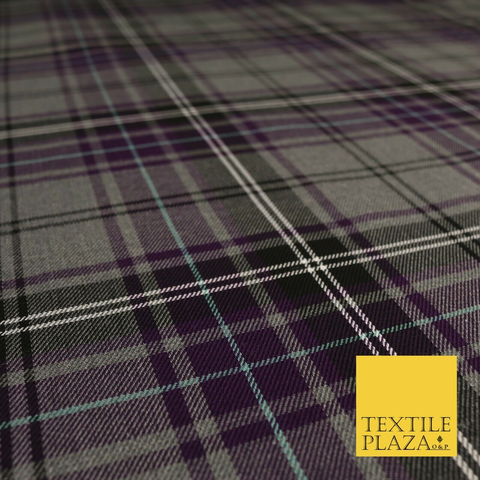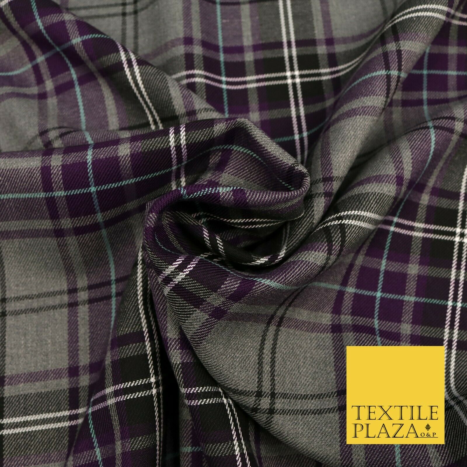 GREY PURPLE TARTAN Check Polyester Viscose Fabric 58" Craft Dress 1631