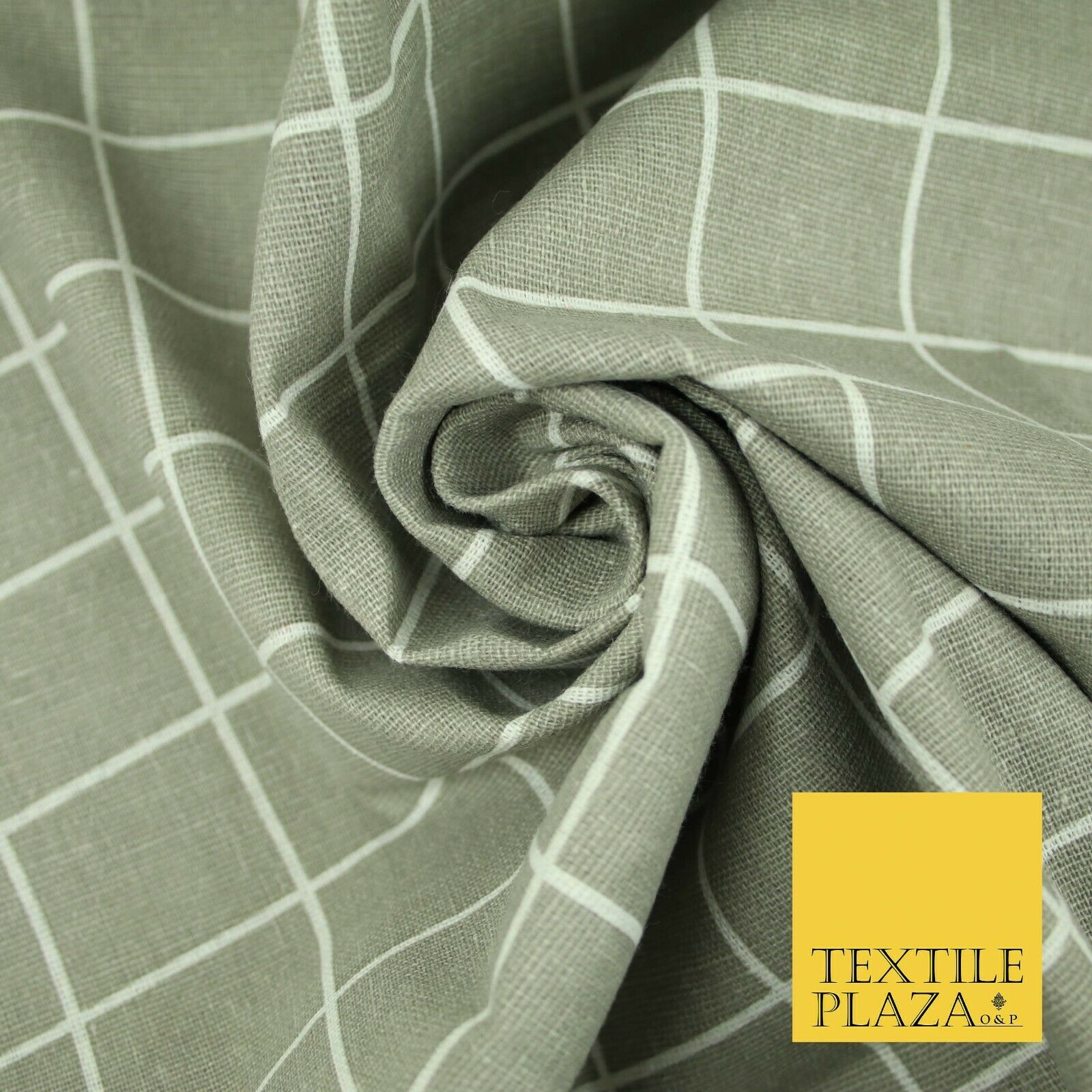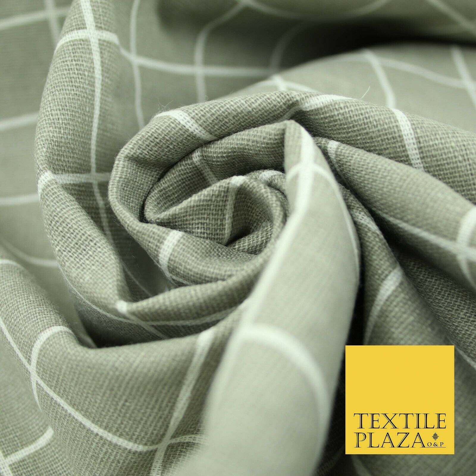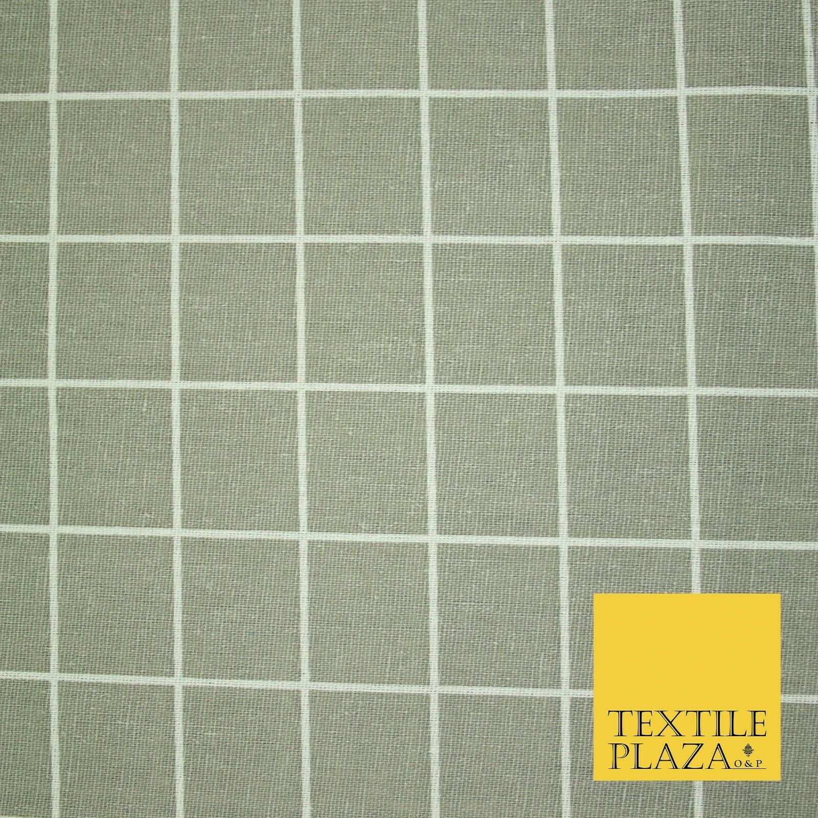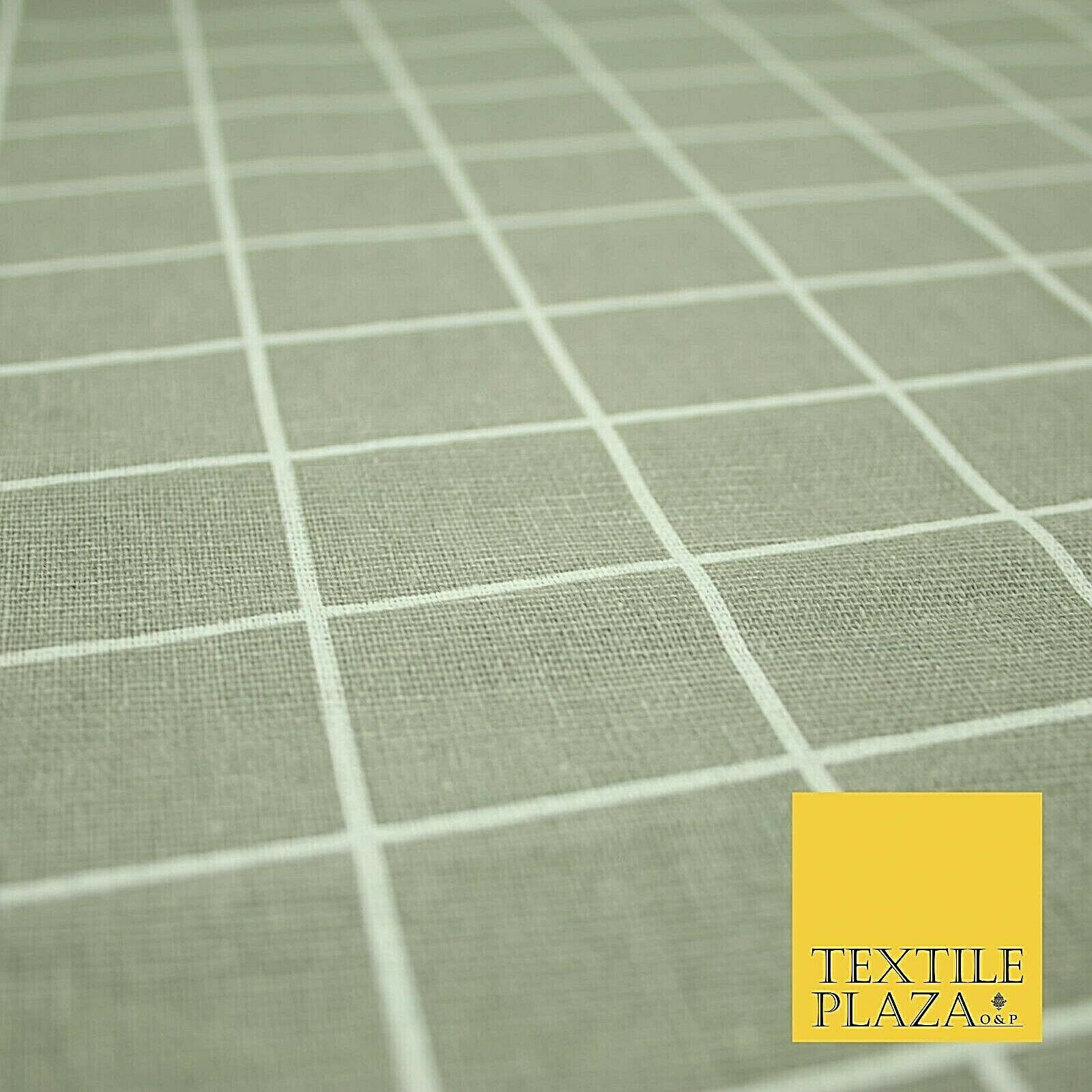 Grey White 4cm Square Box Check Think Lines Printed 100% Cotton Linen Fabric 60"