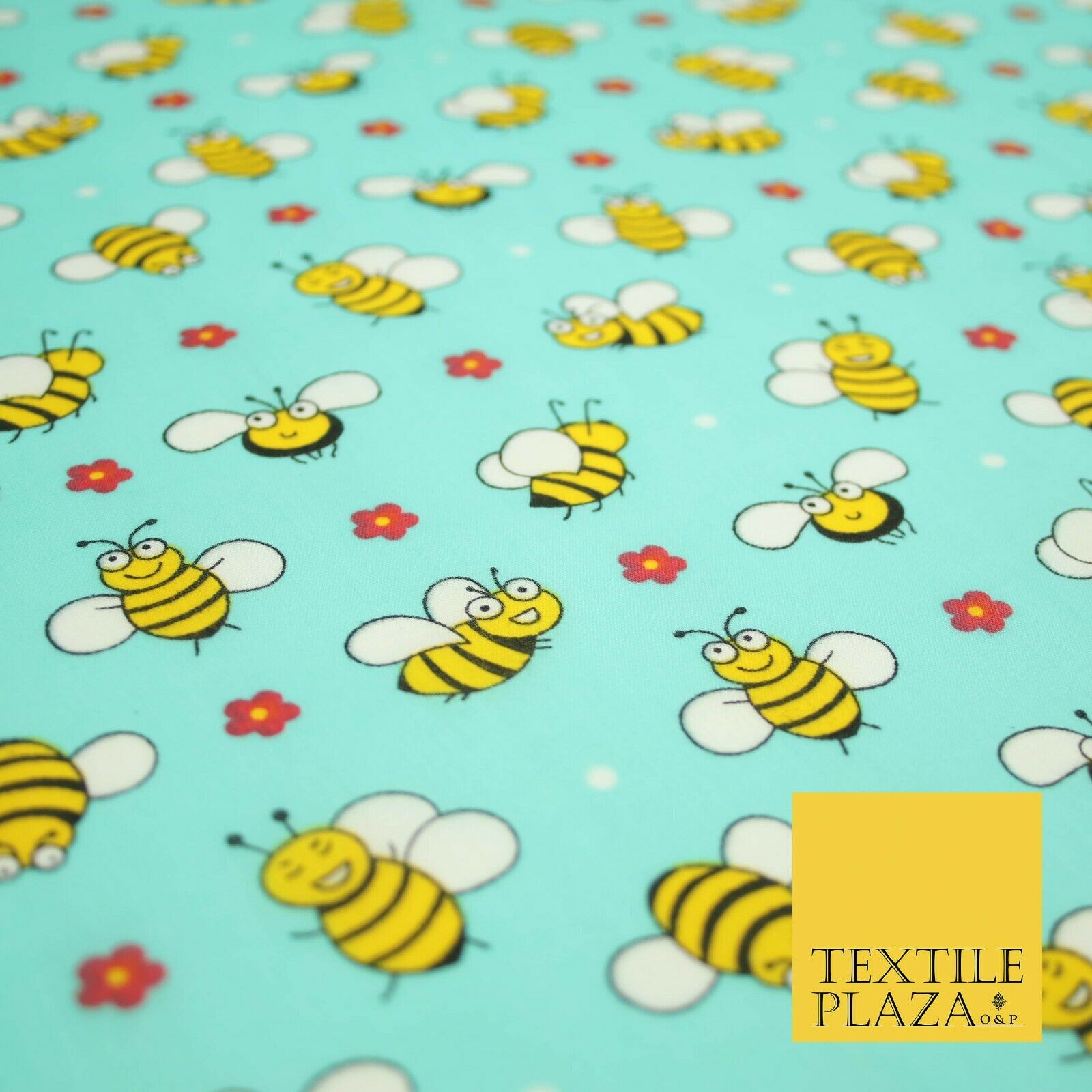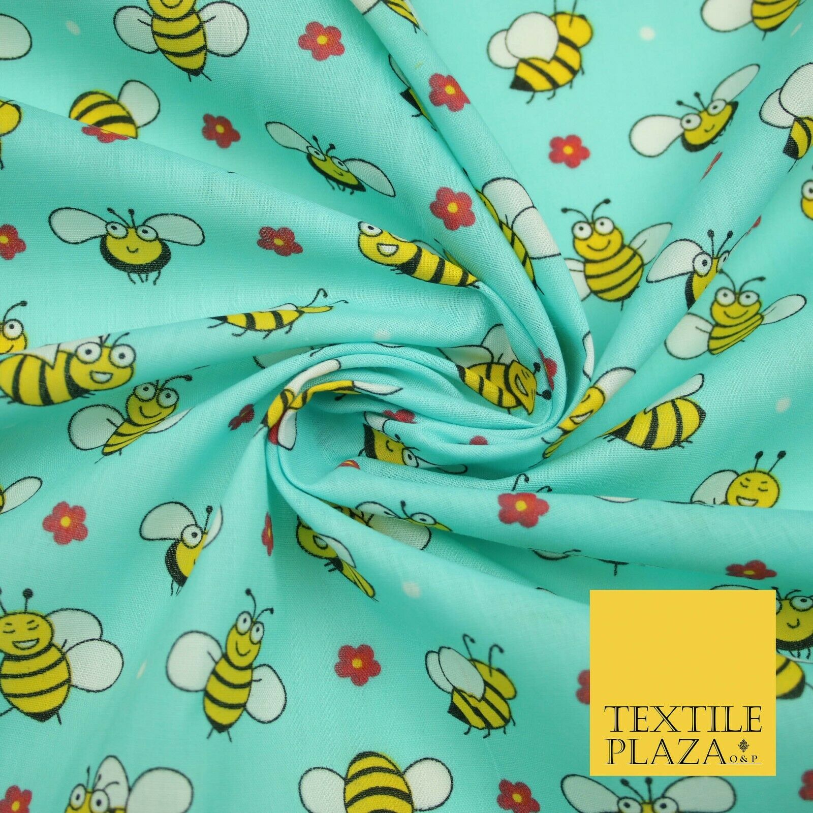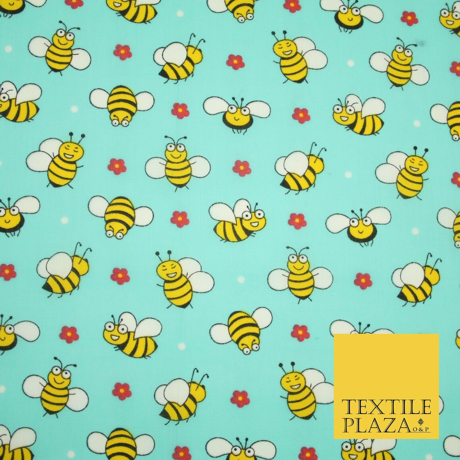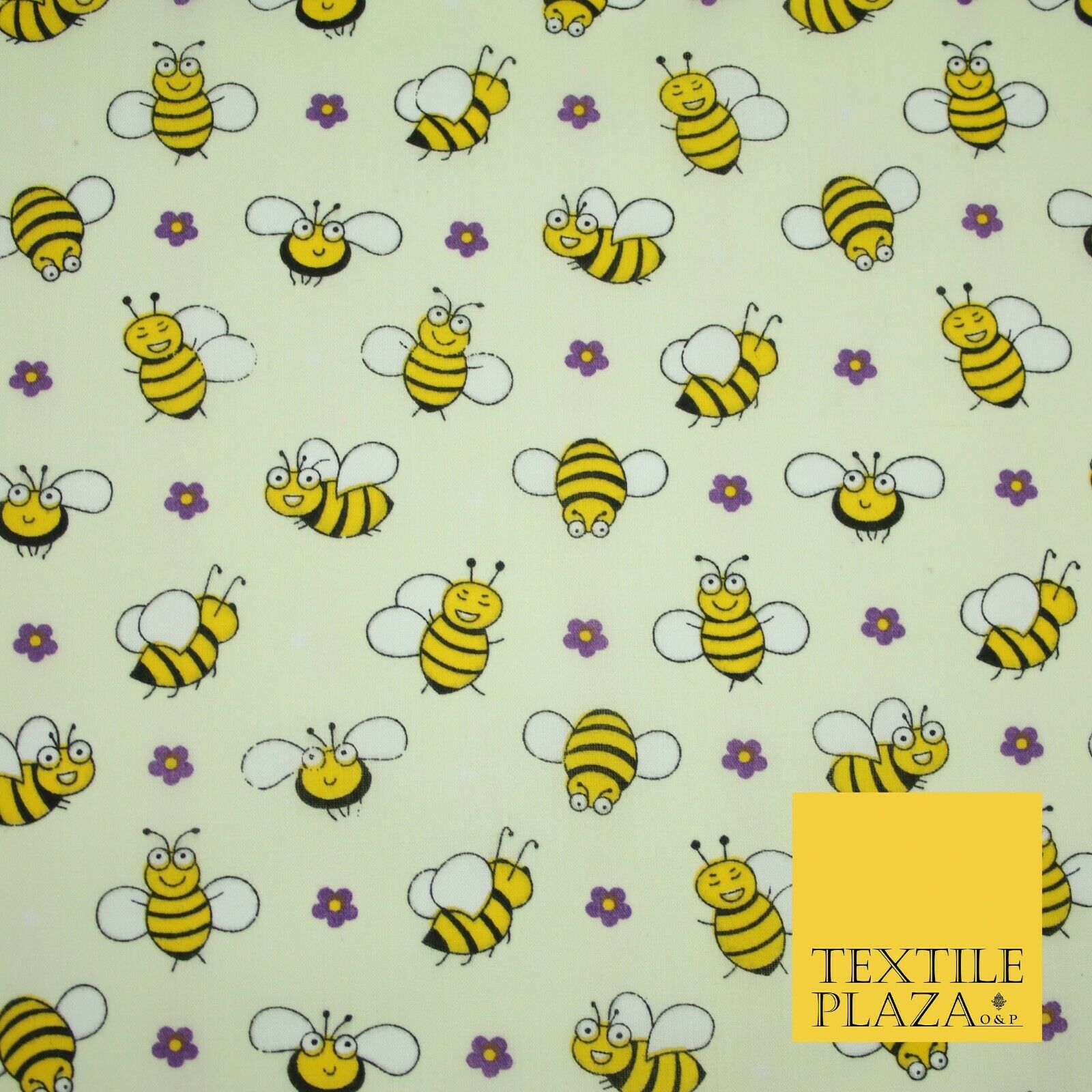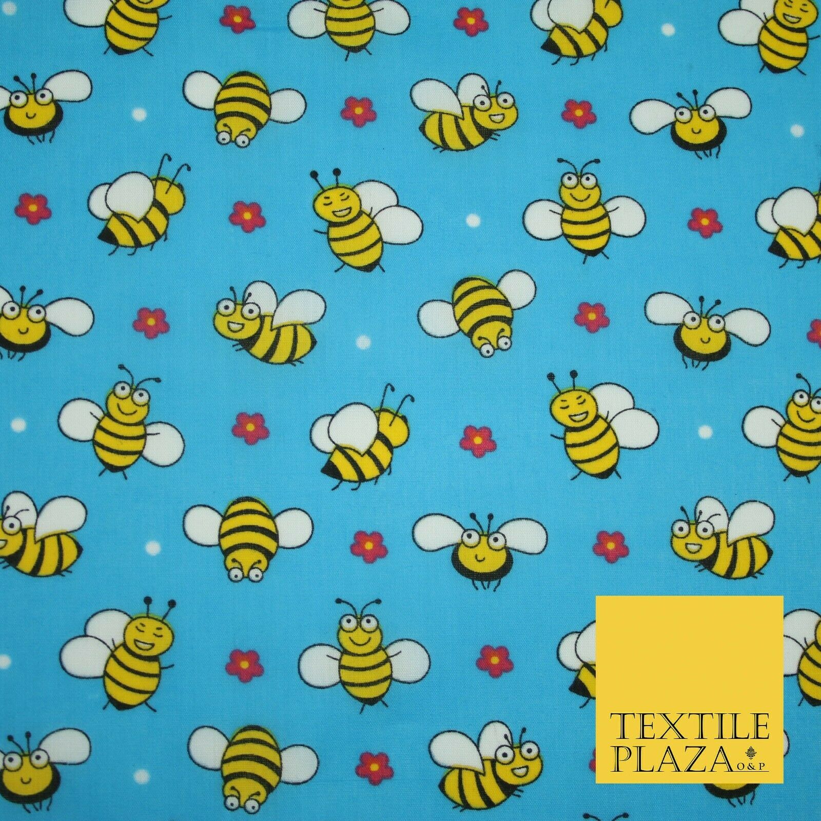 Happy Busy Bumble Bees Printed Polycotton Dress Craft Fabric Kids 44" 3 COLOURS