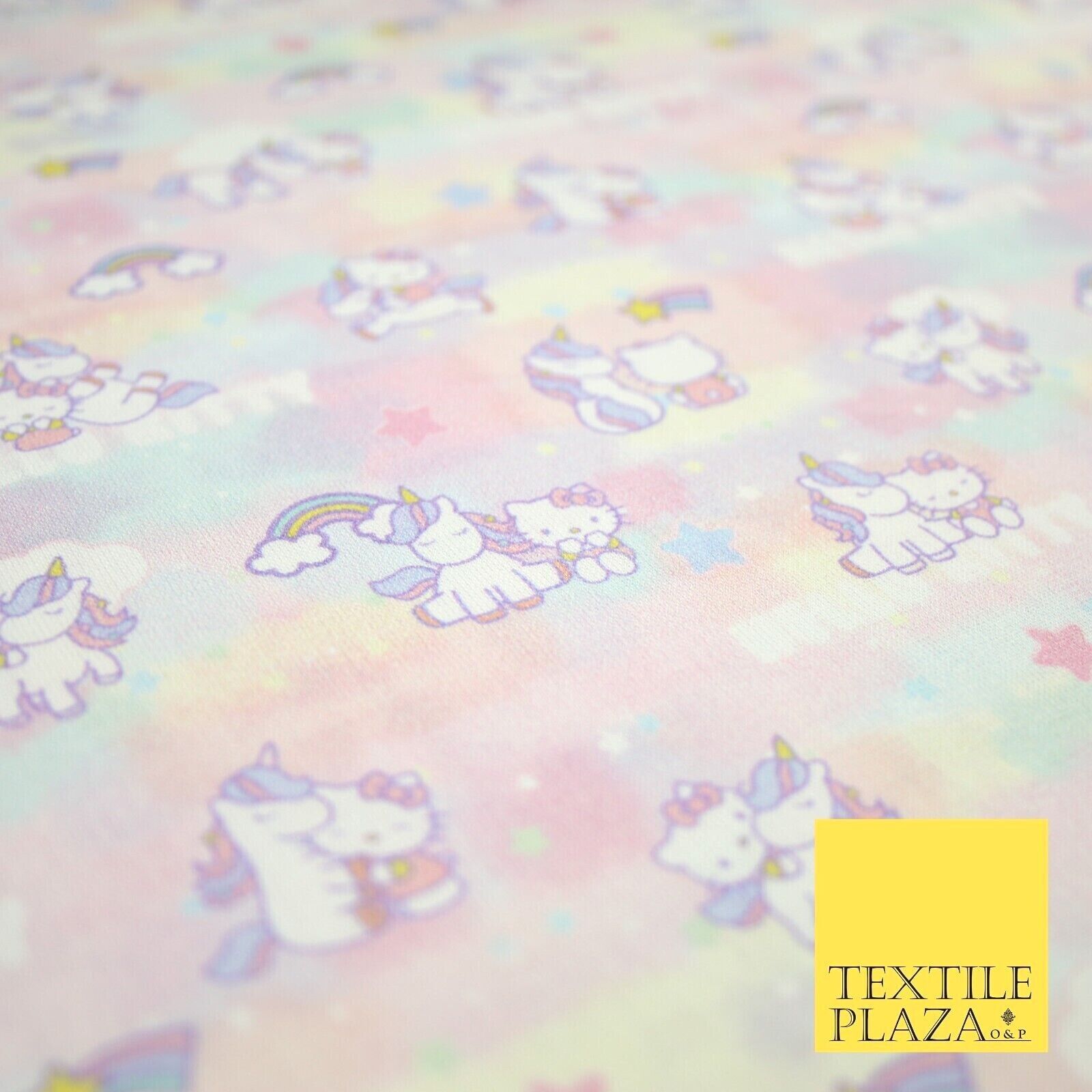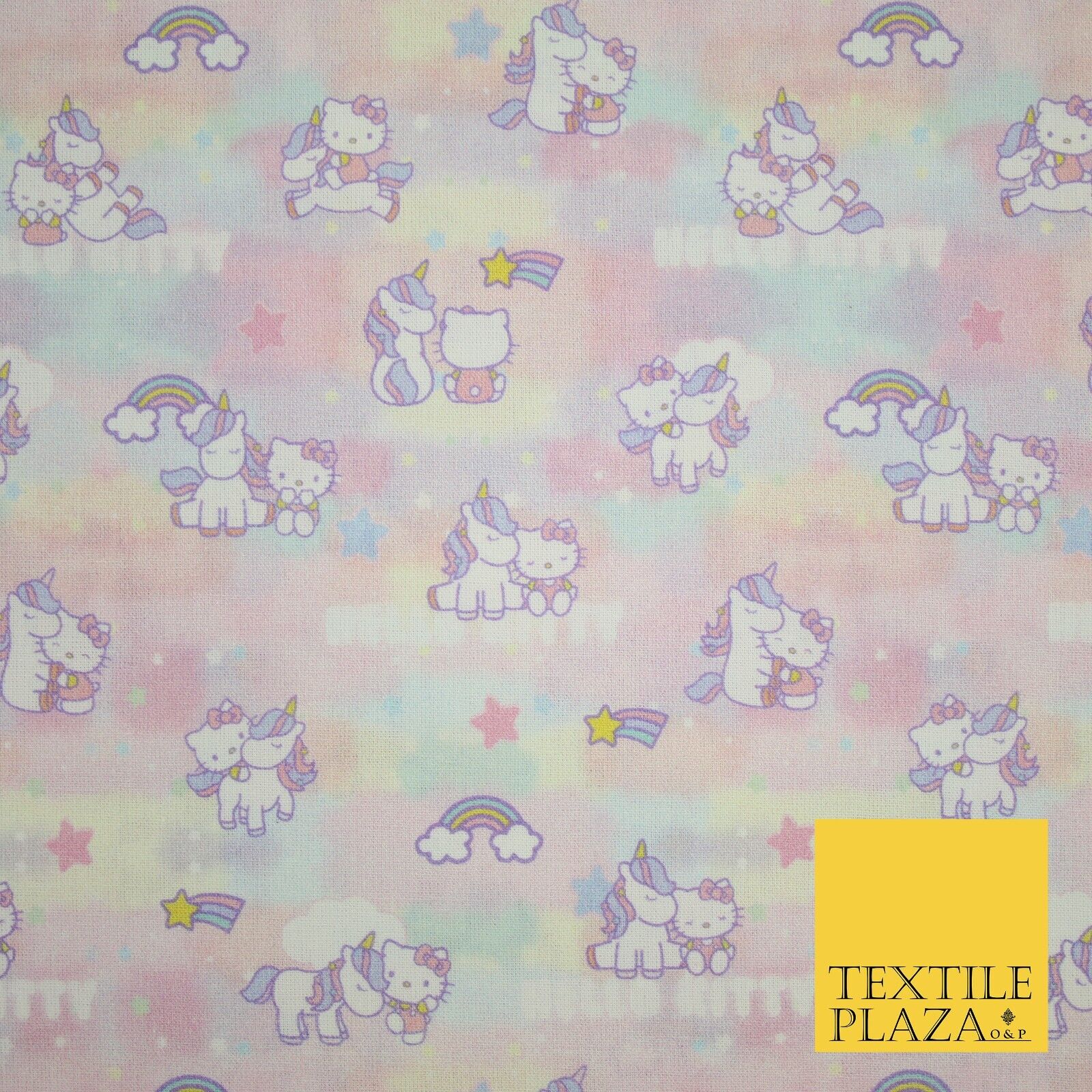 HELLO KITTY Unicorn Pastel Rainbow Star Digital Print 100% Cotton Fabric 8217