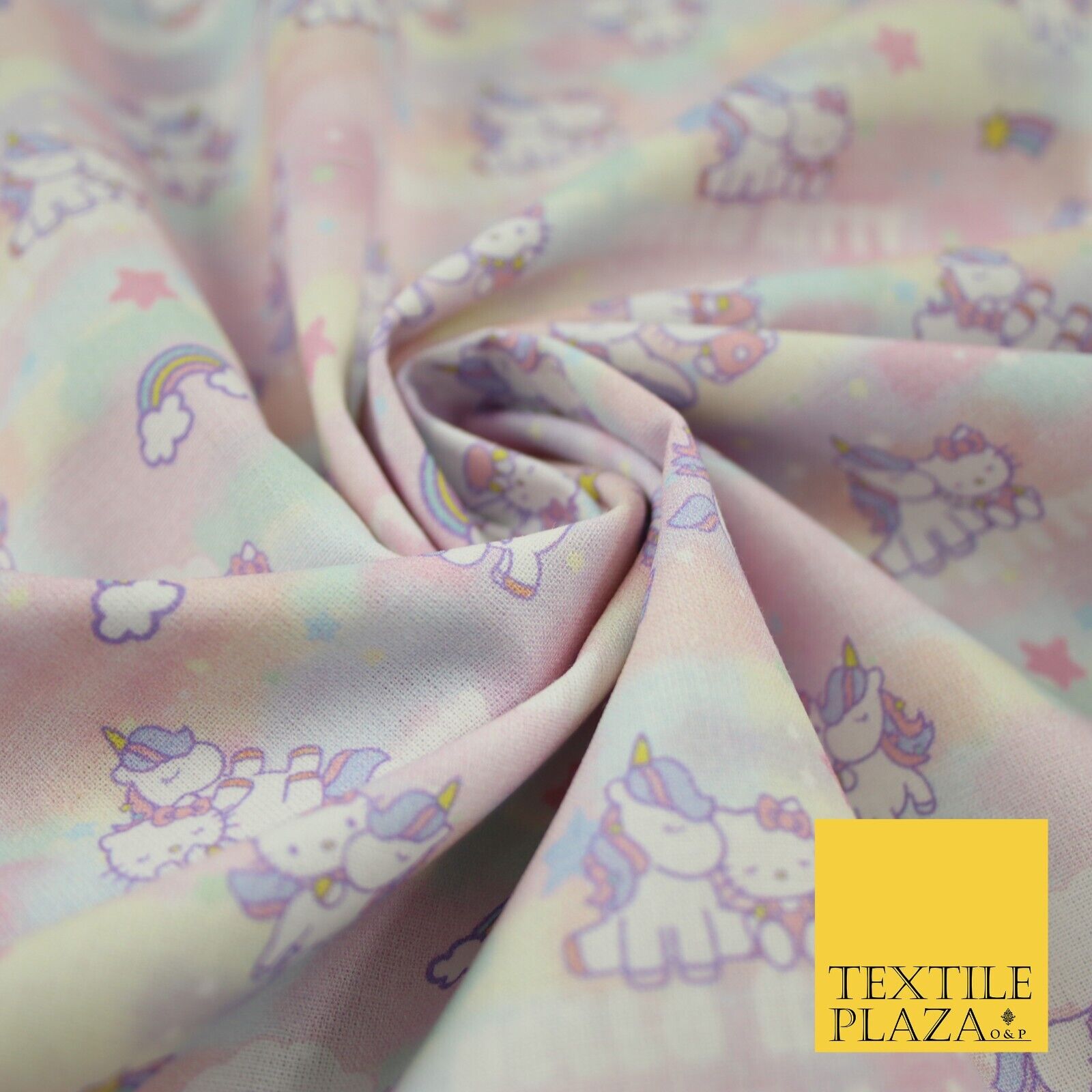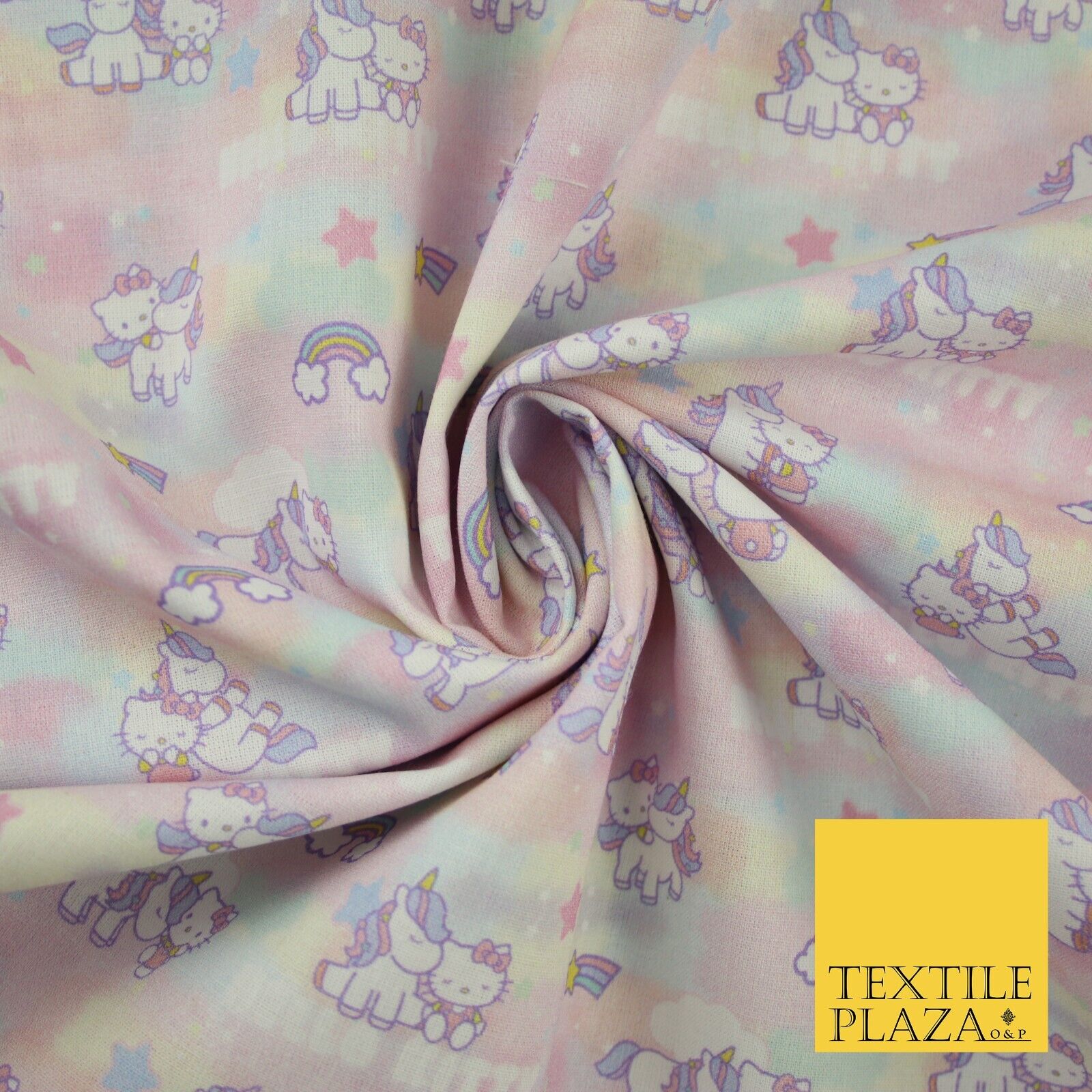 HELLO KITTY Unicorn Pastel Rainbow Star Digital Print 100% Cotton Fabric