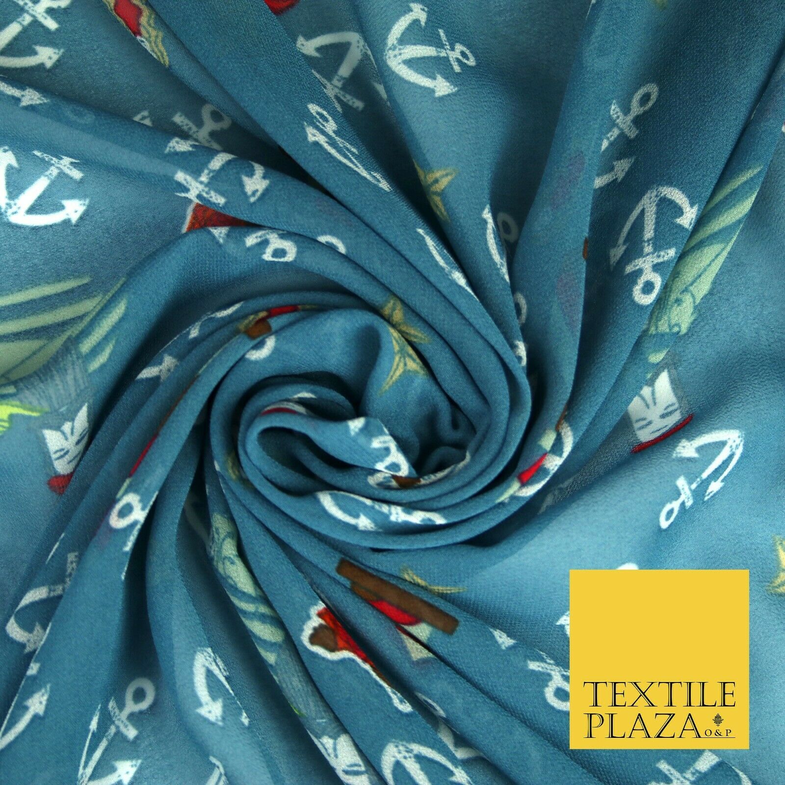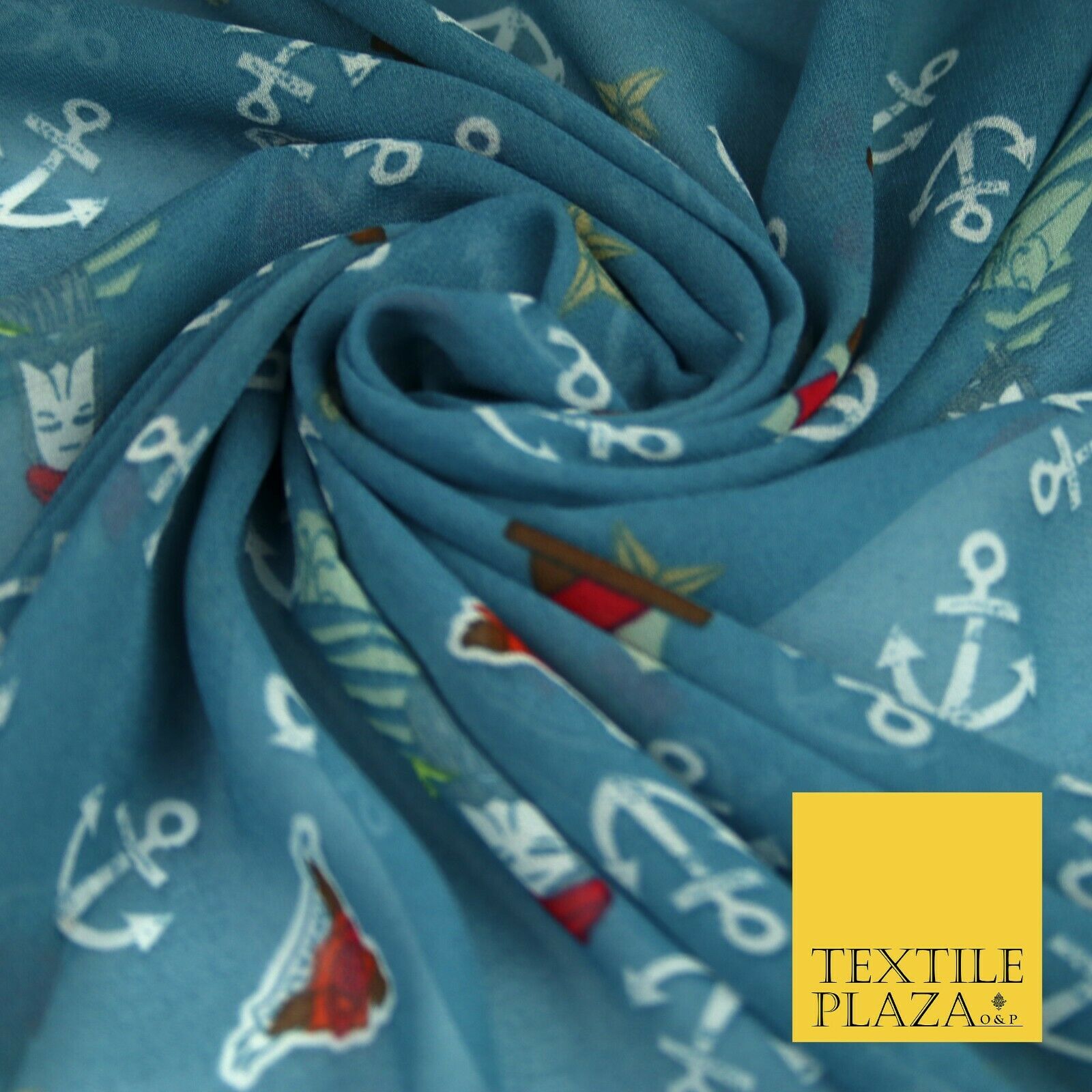 High Quality Anchors Chains Paint Explosions Printed Georgette Dress Fabric