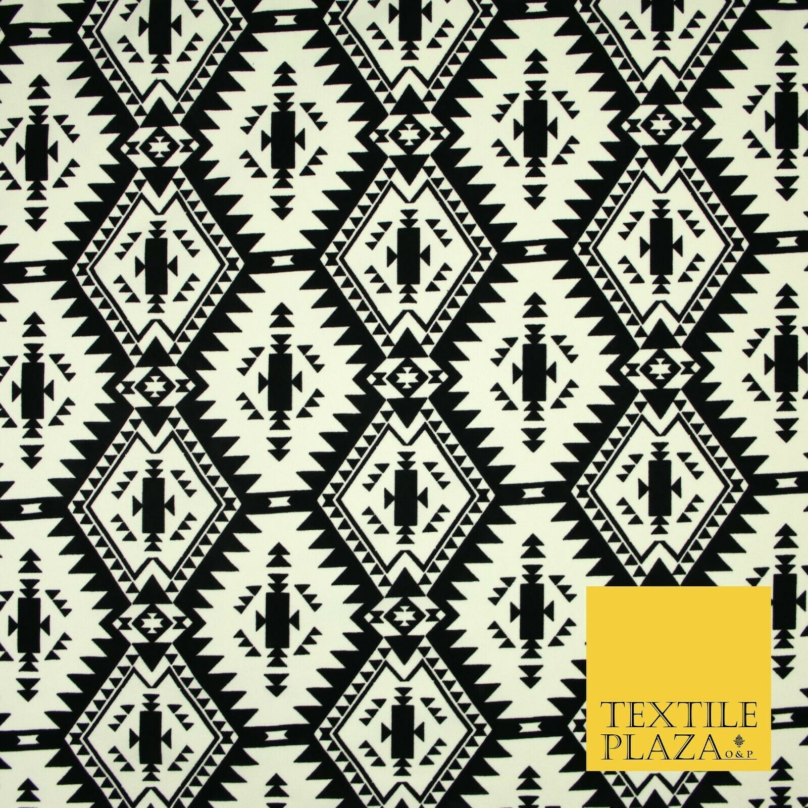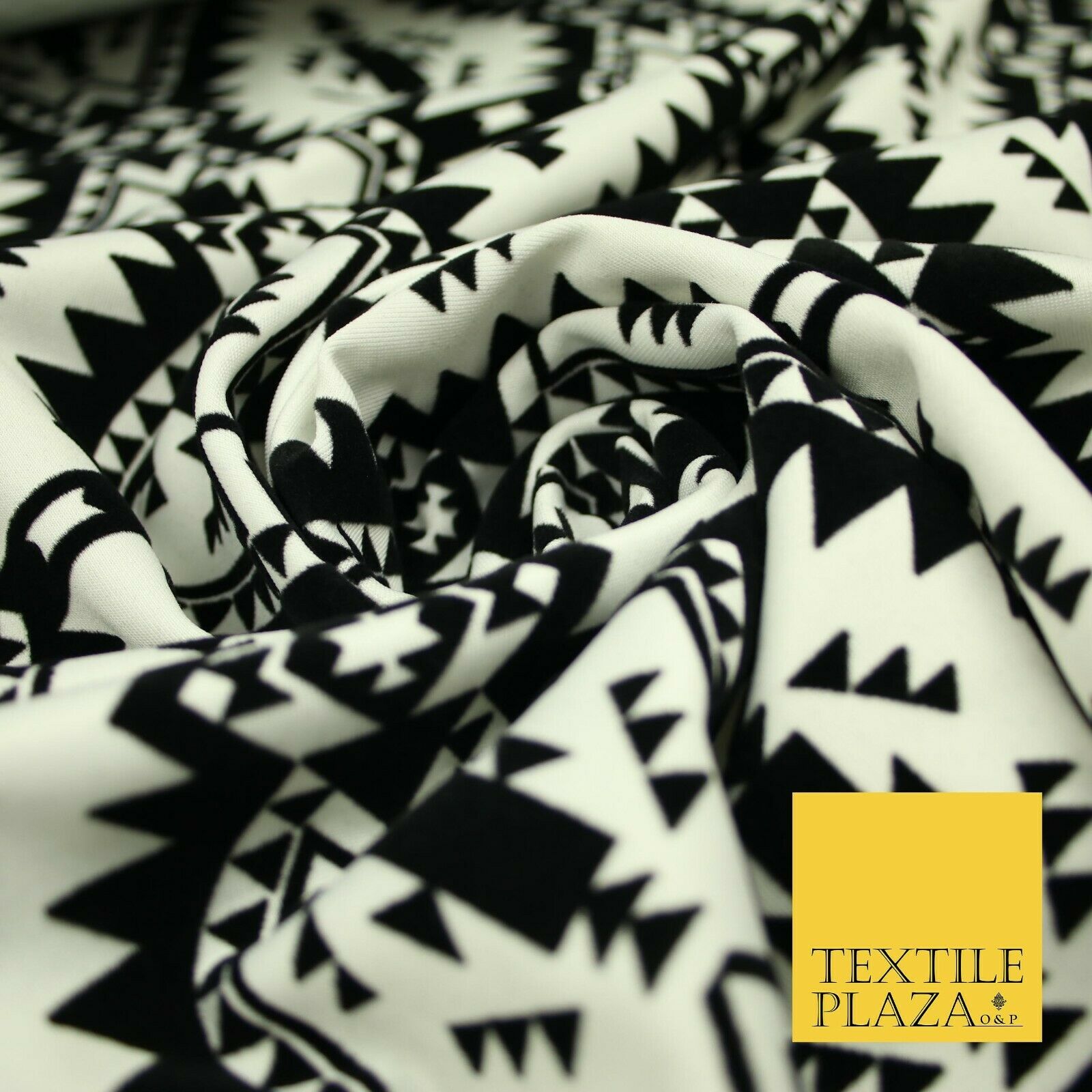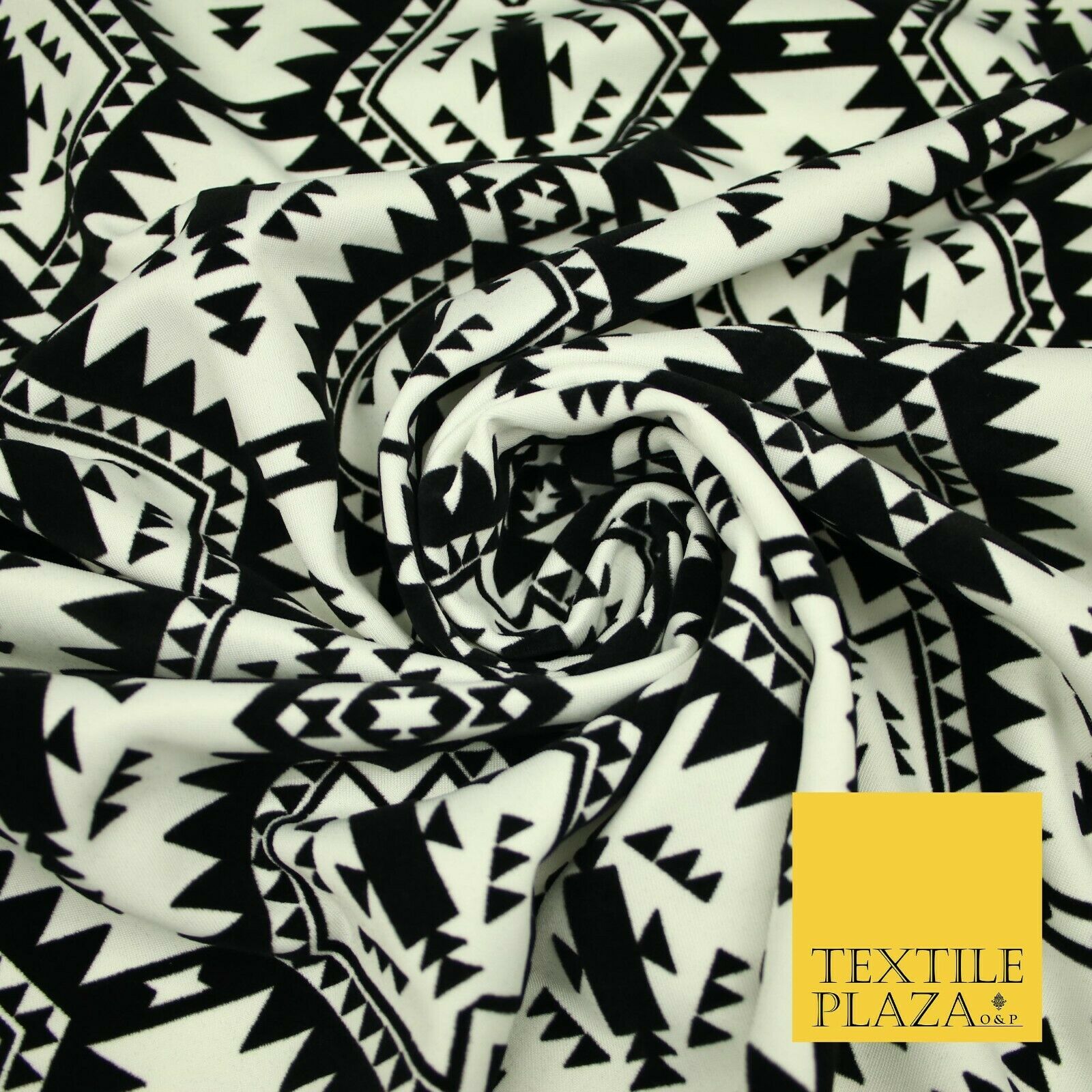High Quality Black & White Flocked Aztec Spike Tribal Stretch Jersey Fabric 3953
