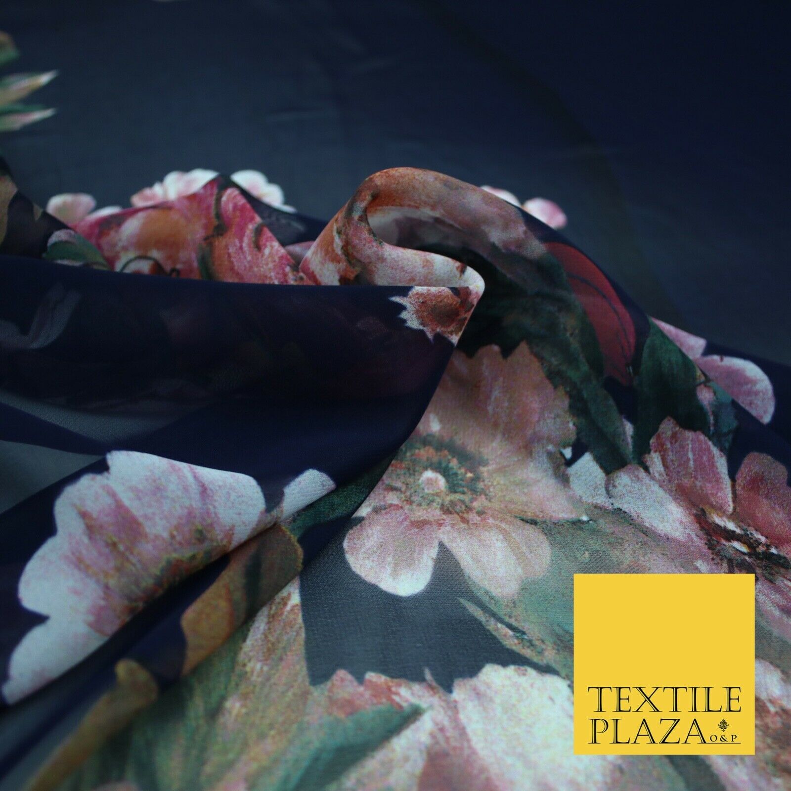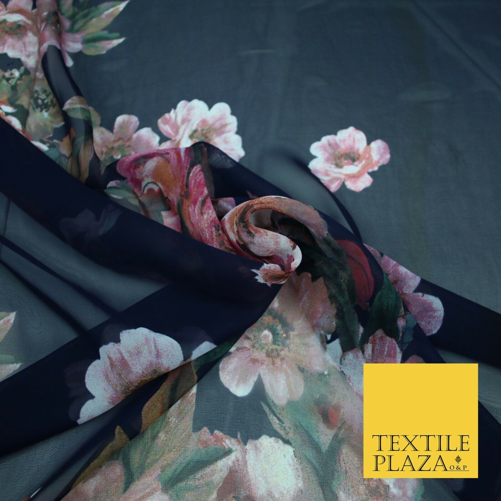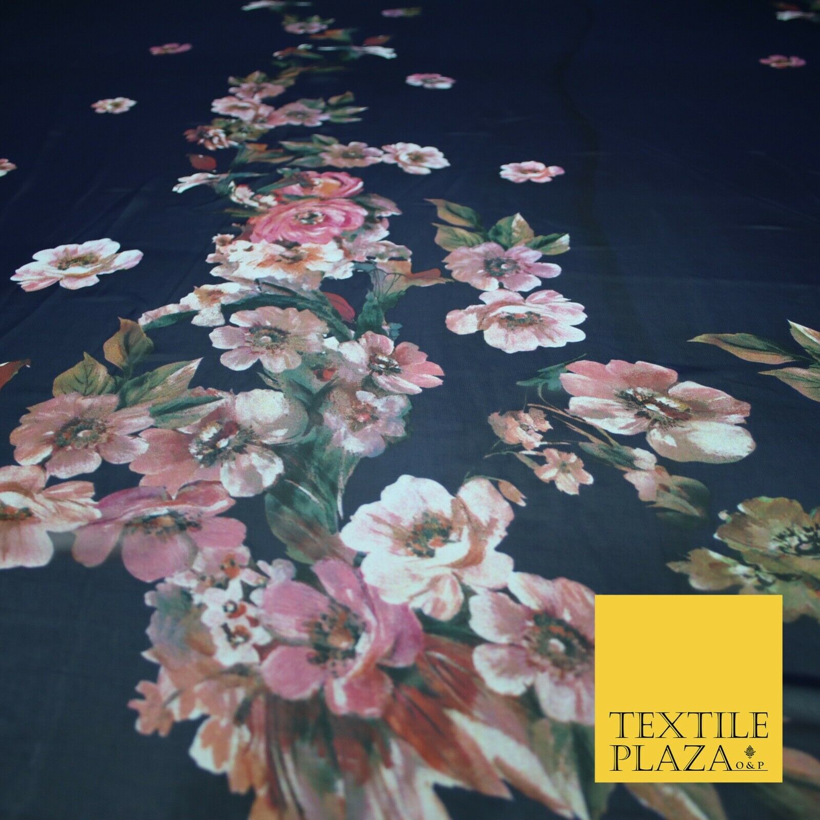 High Quality Ink Navy Blue Panel Print Chiffon Georgette Dress Fabric Craft 2449