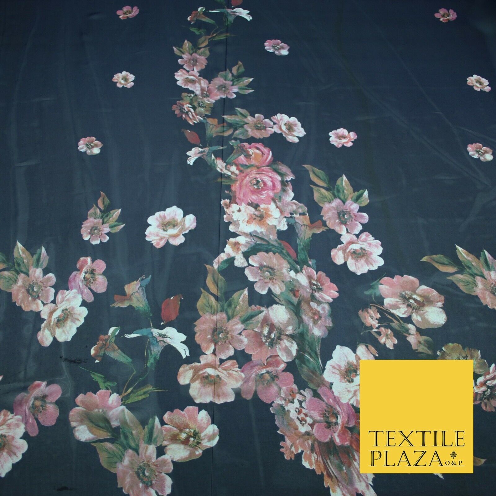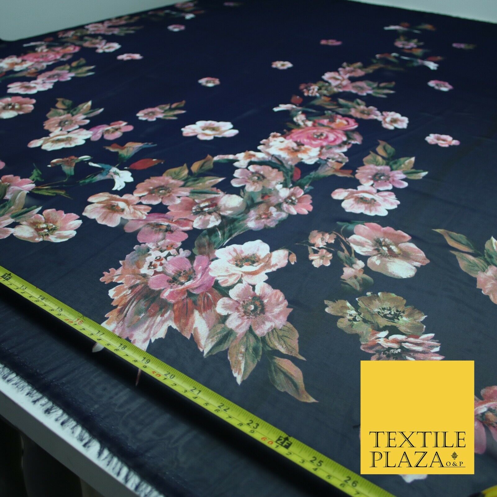 High Quality Ink Navy Blue Panel Print Chiffon Georgette Dress Fabric Craft 2449