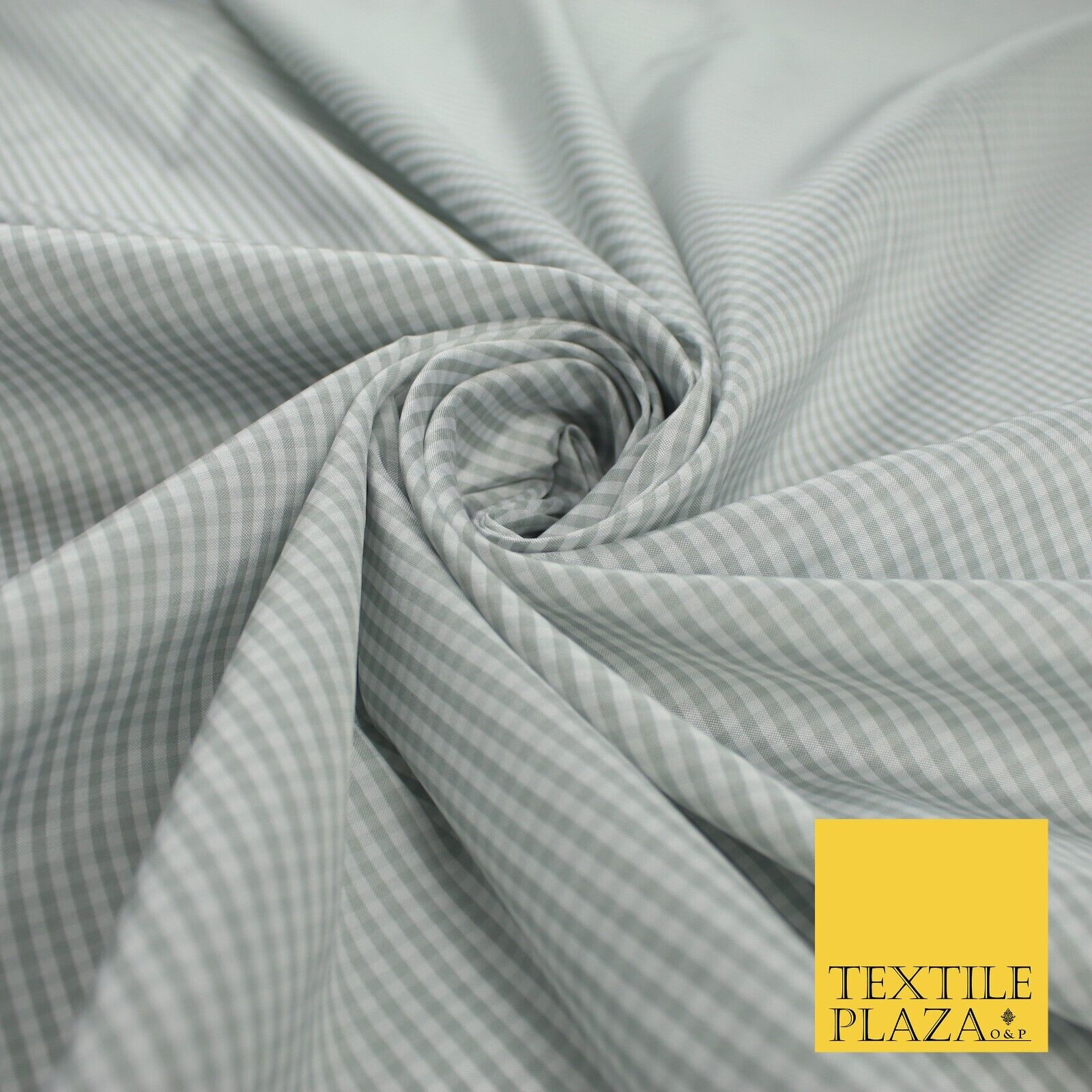 High Quality White Grey Check Gingham Faux Silk Taffeta Dress Fabric 57" 9642