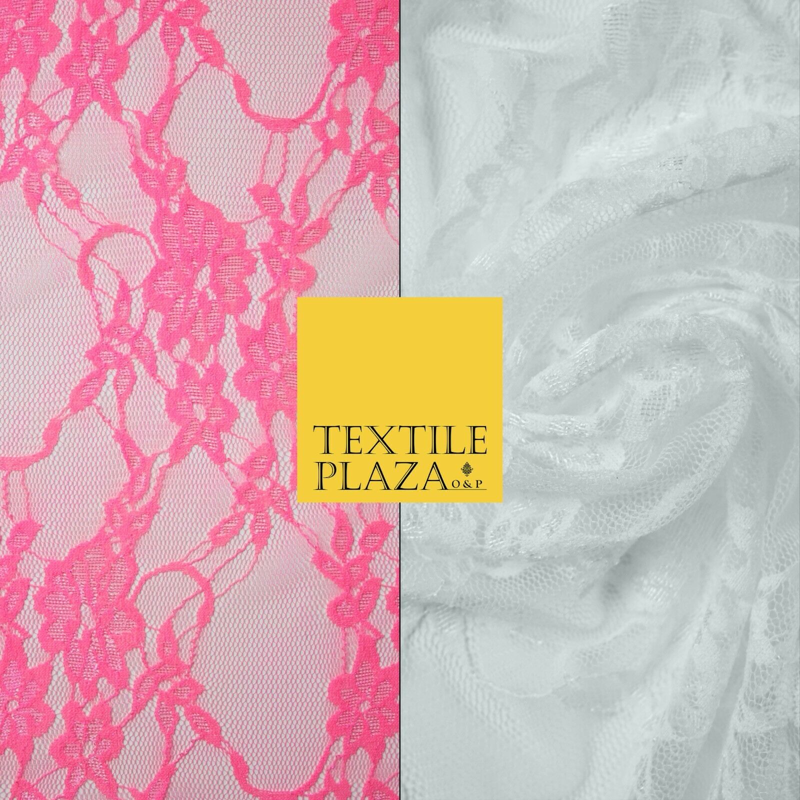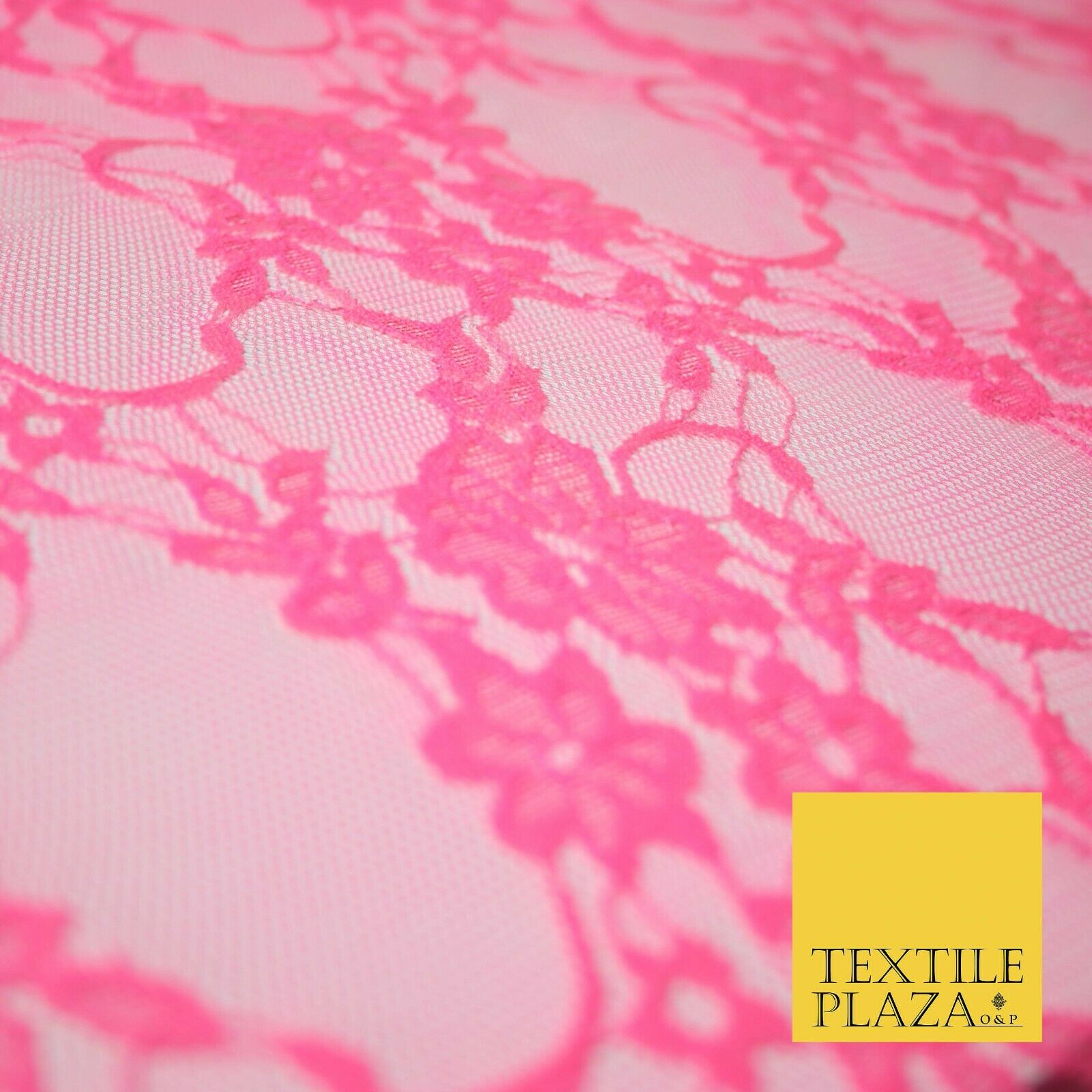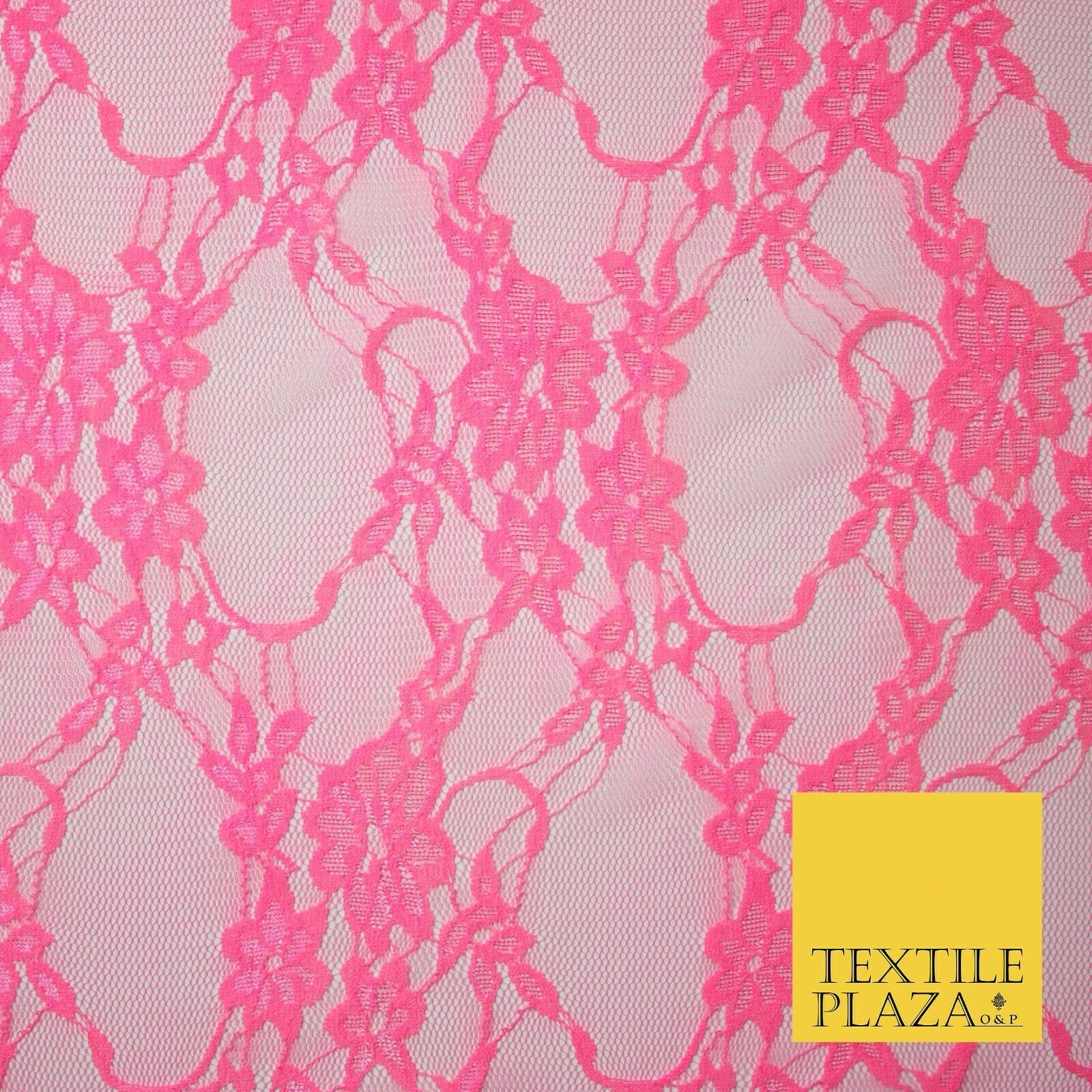 Hot Pink White Floral Mix Embroidered Net Lace Dress Fabric Tulle Fancy 58" Wide