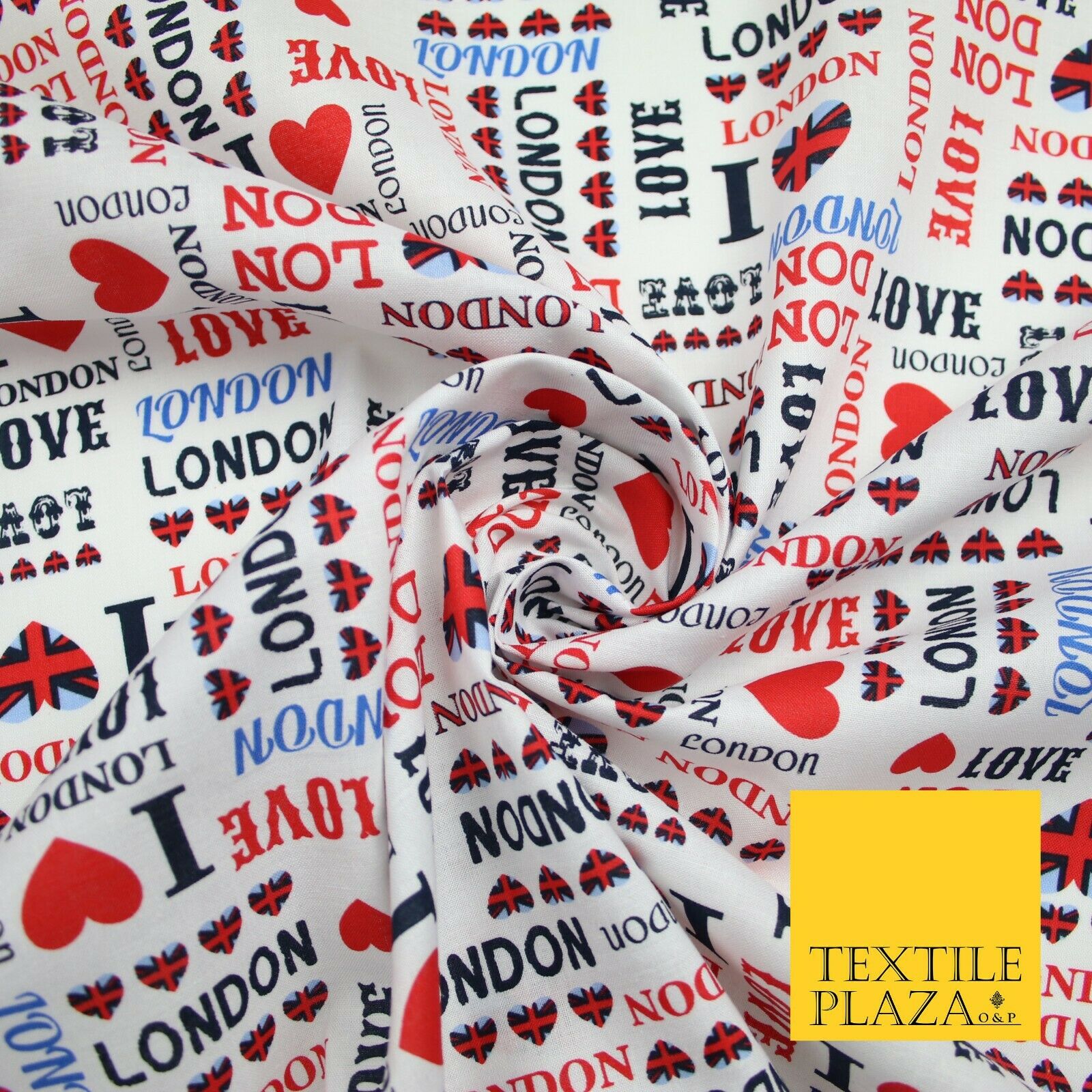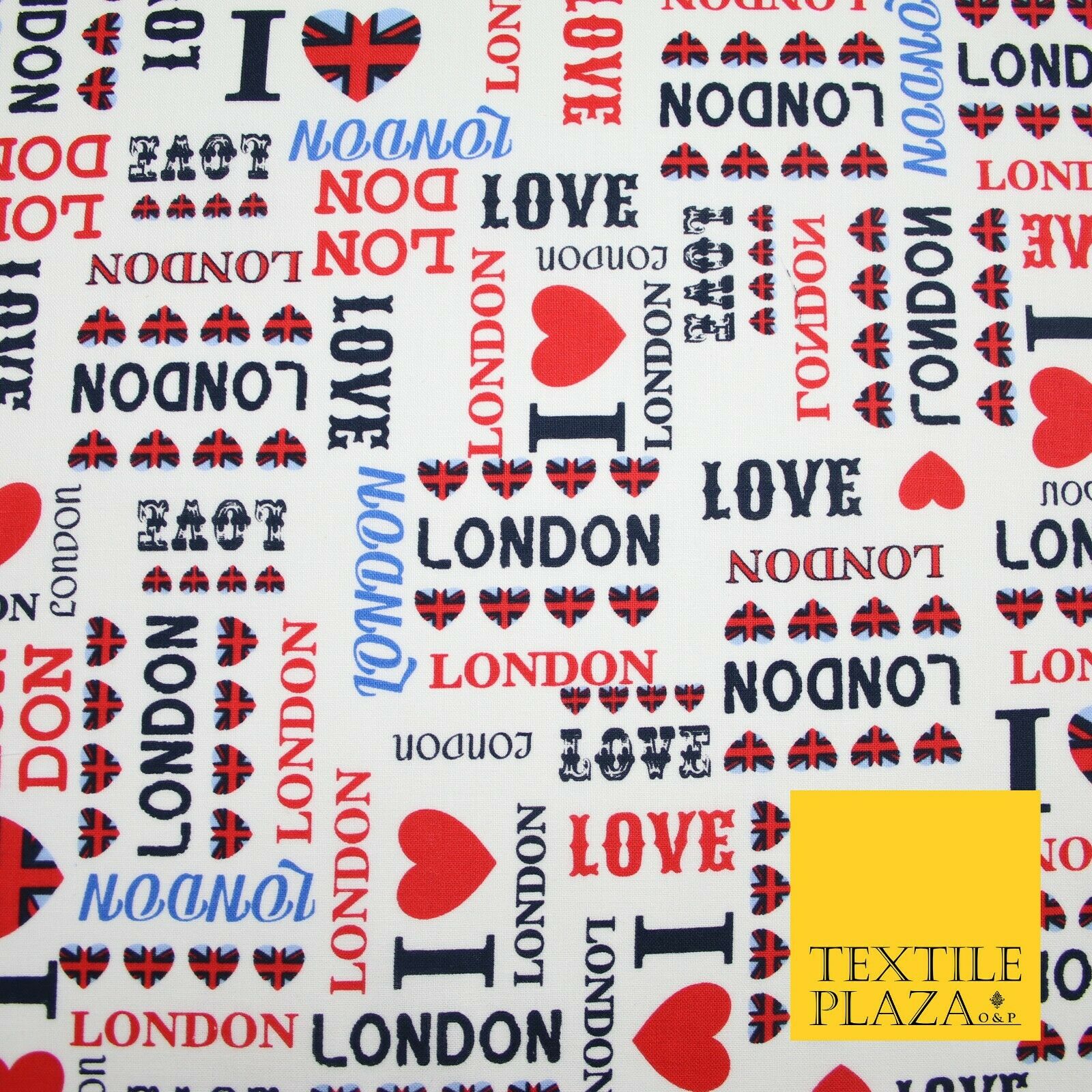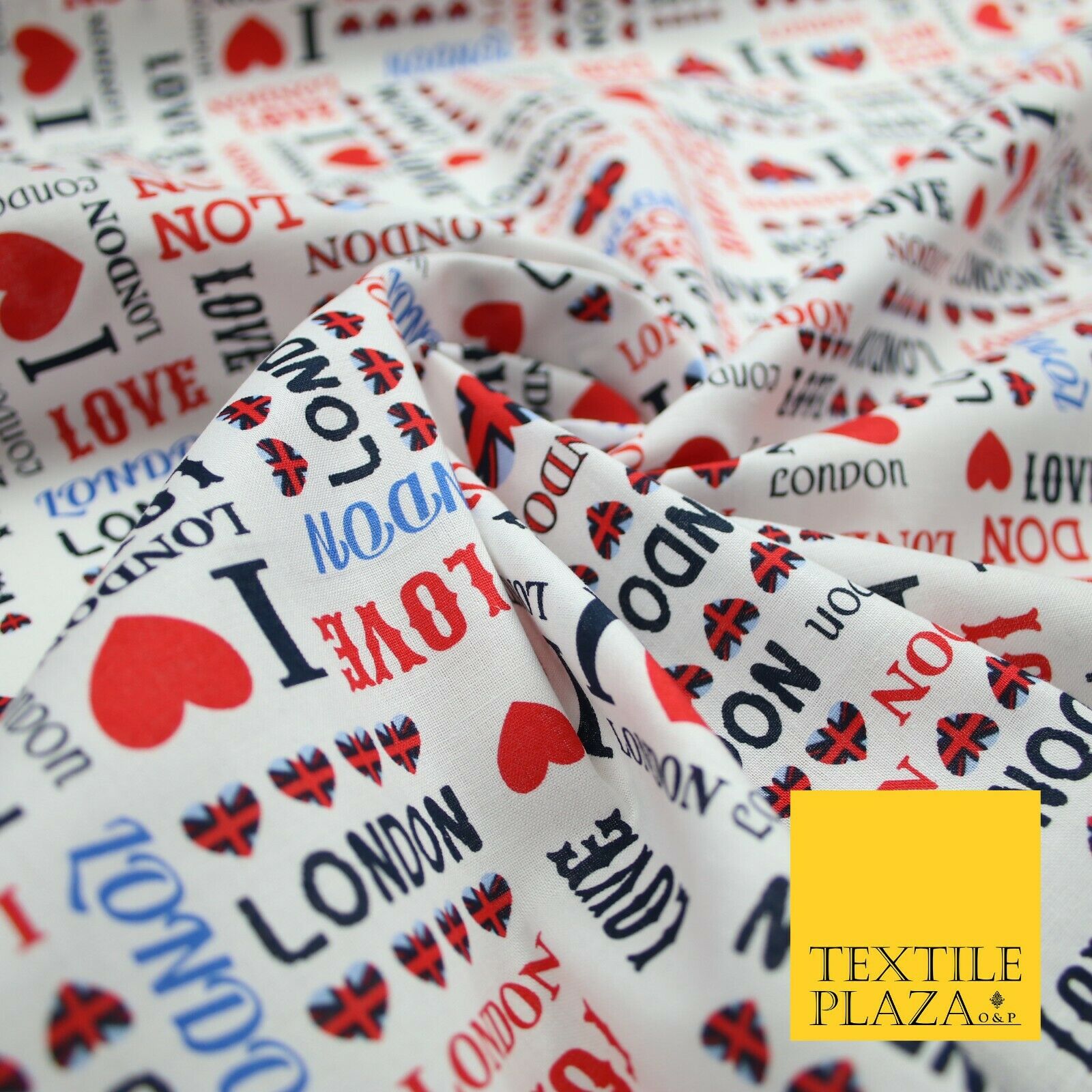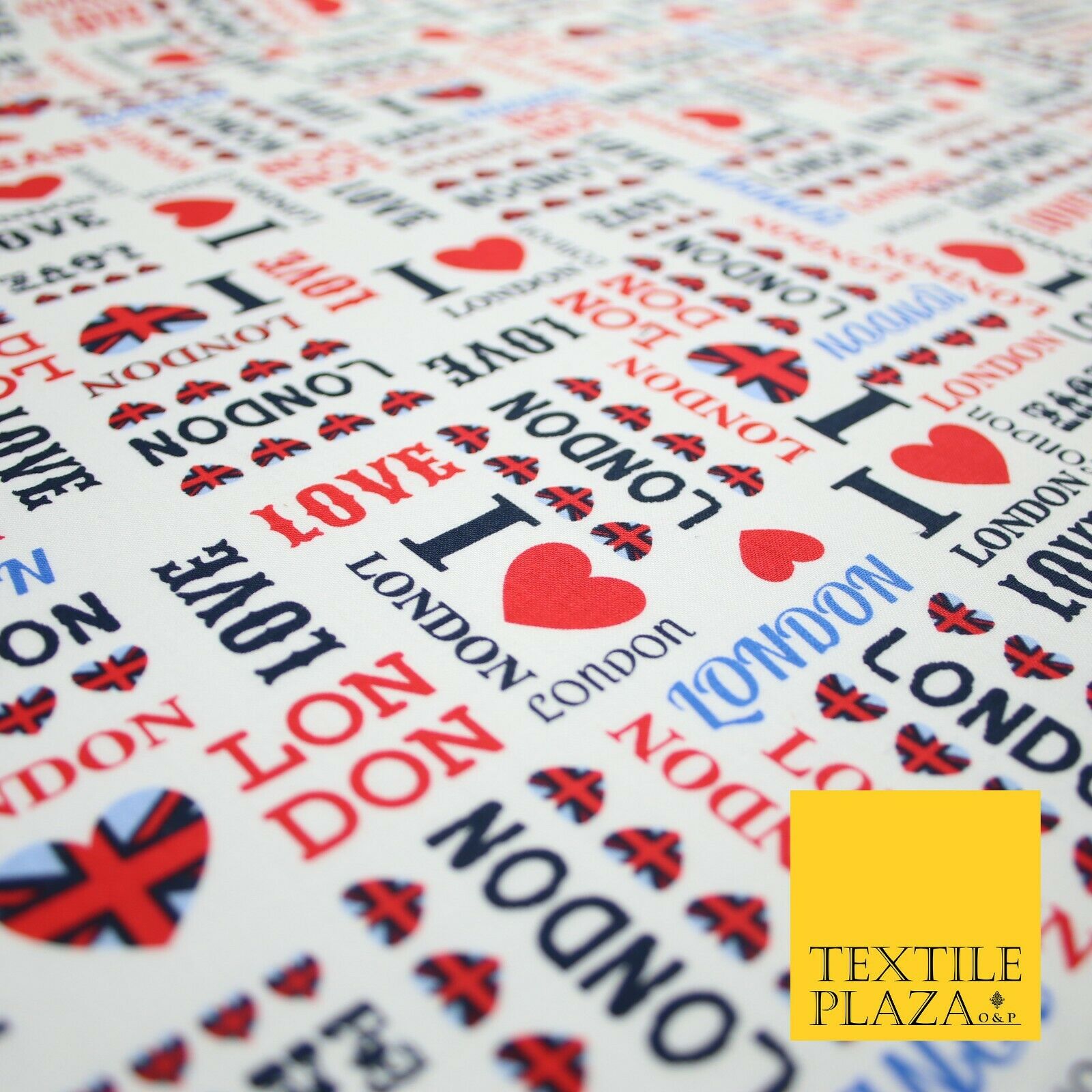 I LOVE LONDON Hearts Platinum Jubilee Union Jack Printed 100% Cotton Fabric 7078