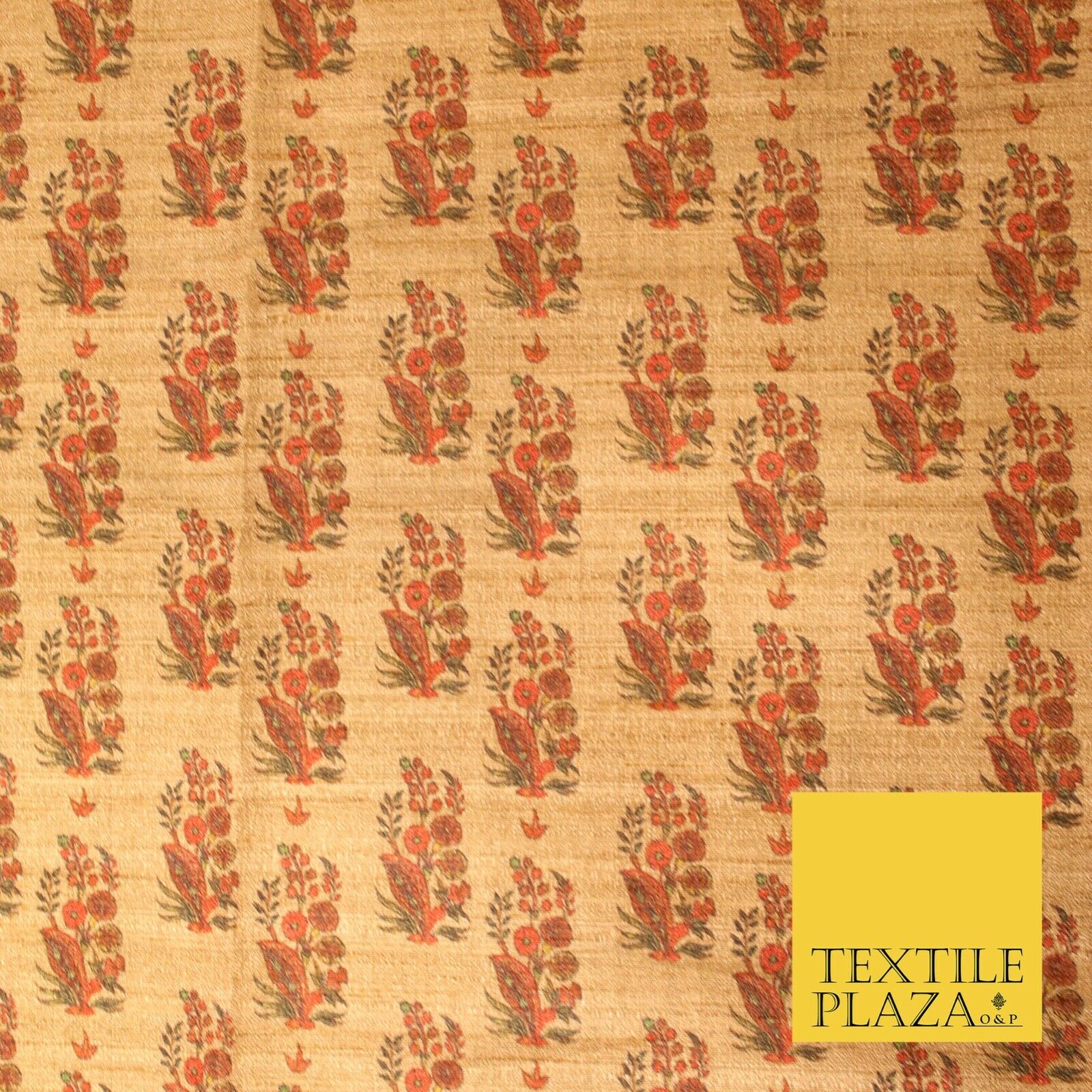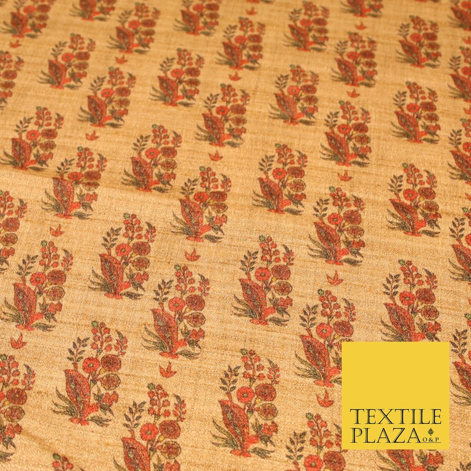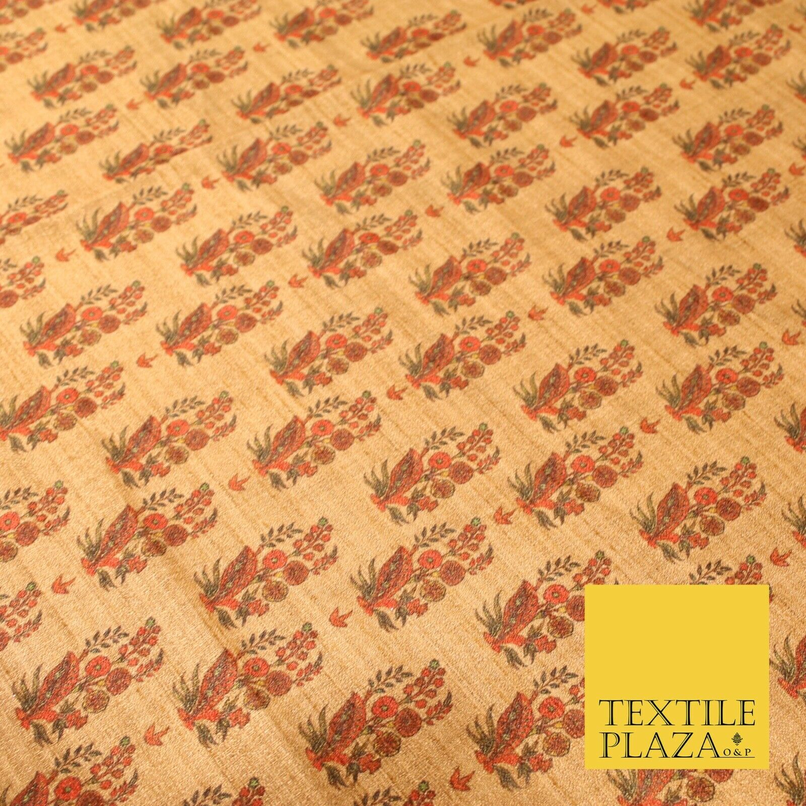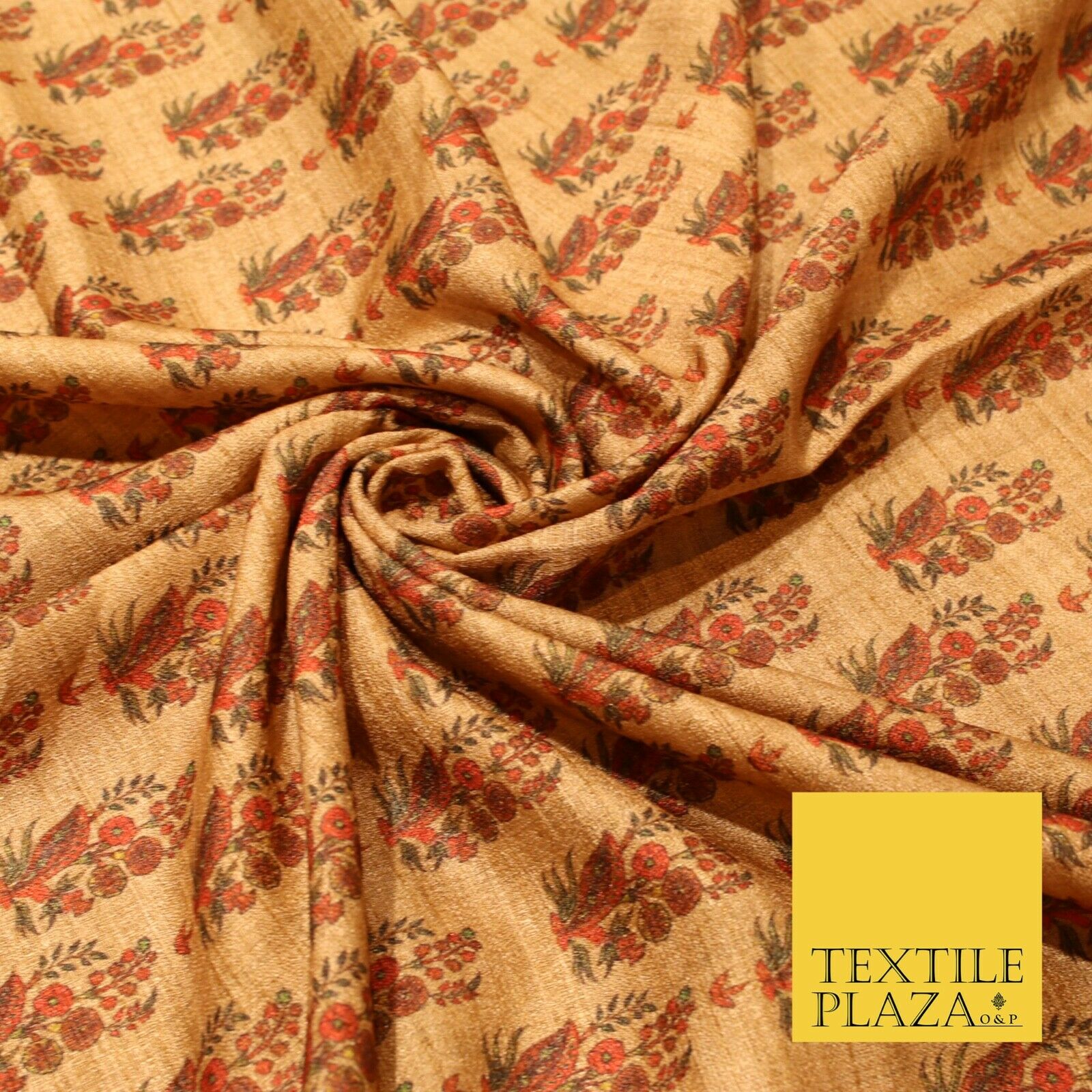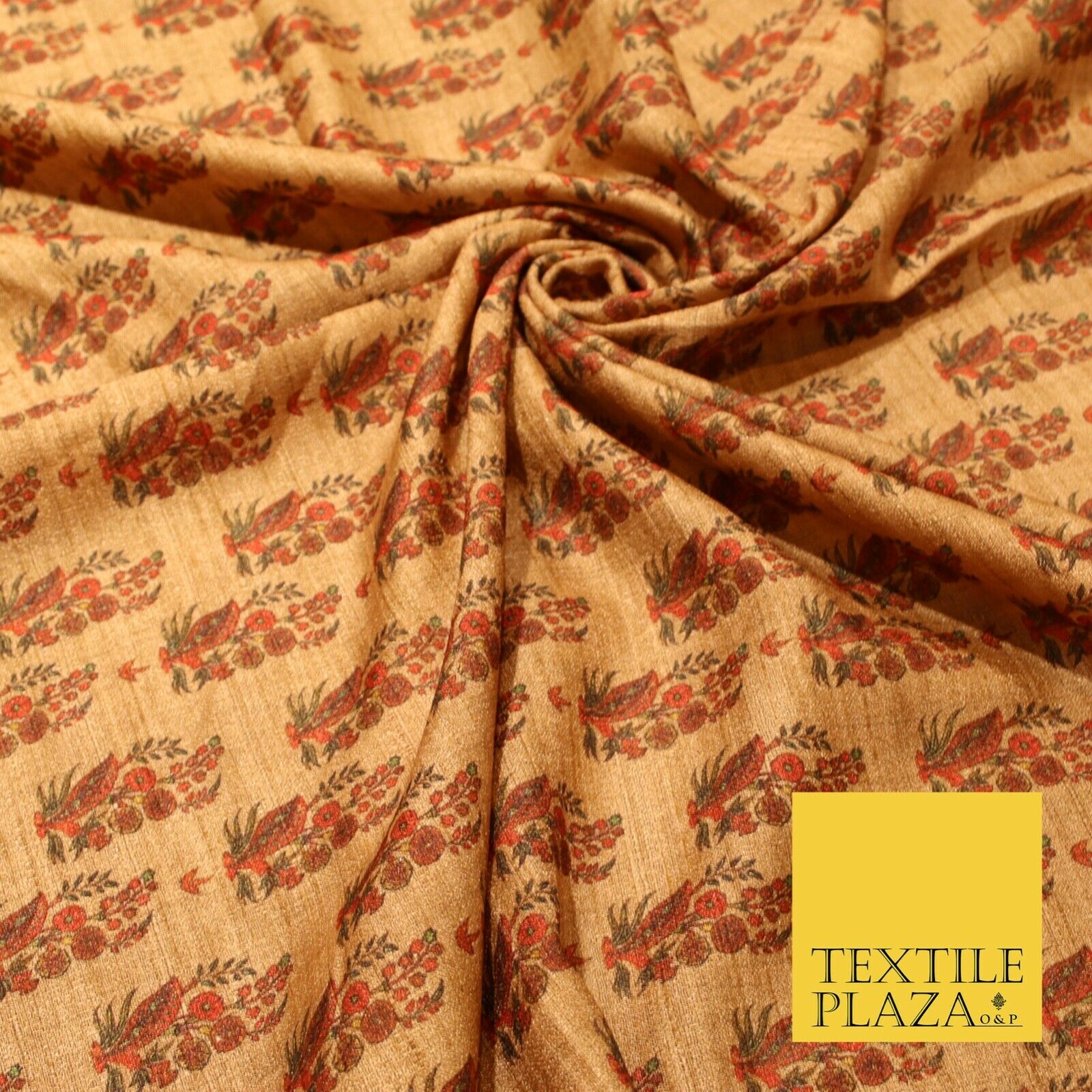 Indian Kalamkari Tapestry Small Digital Print Faux Raw Silk Dress Fabric 3020