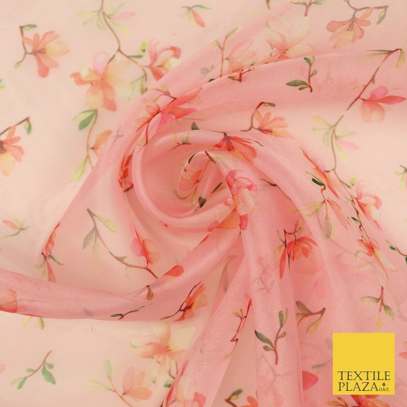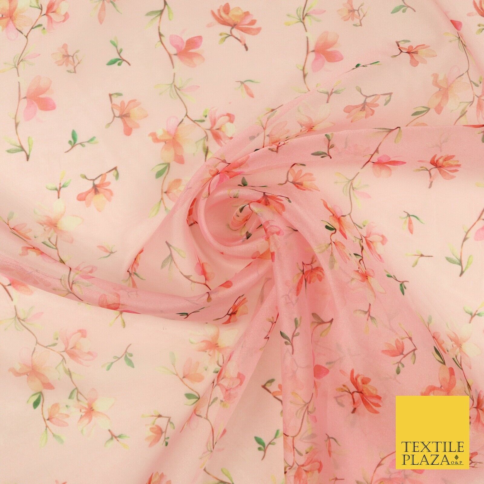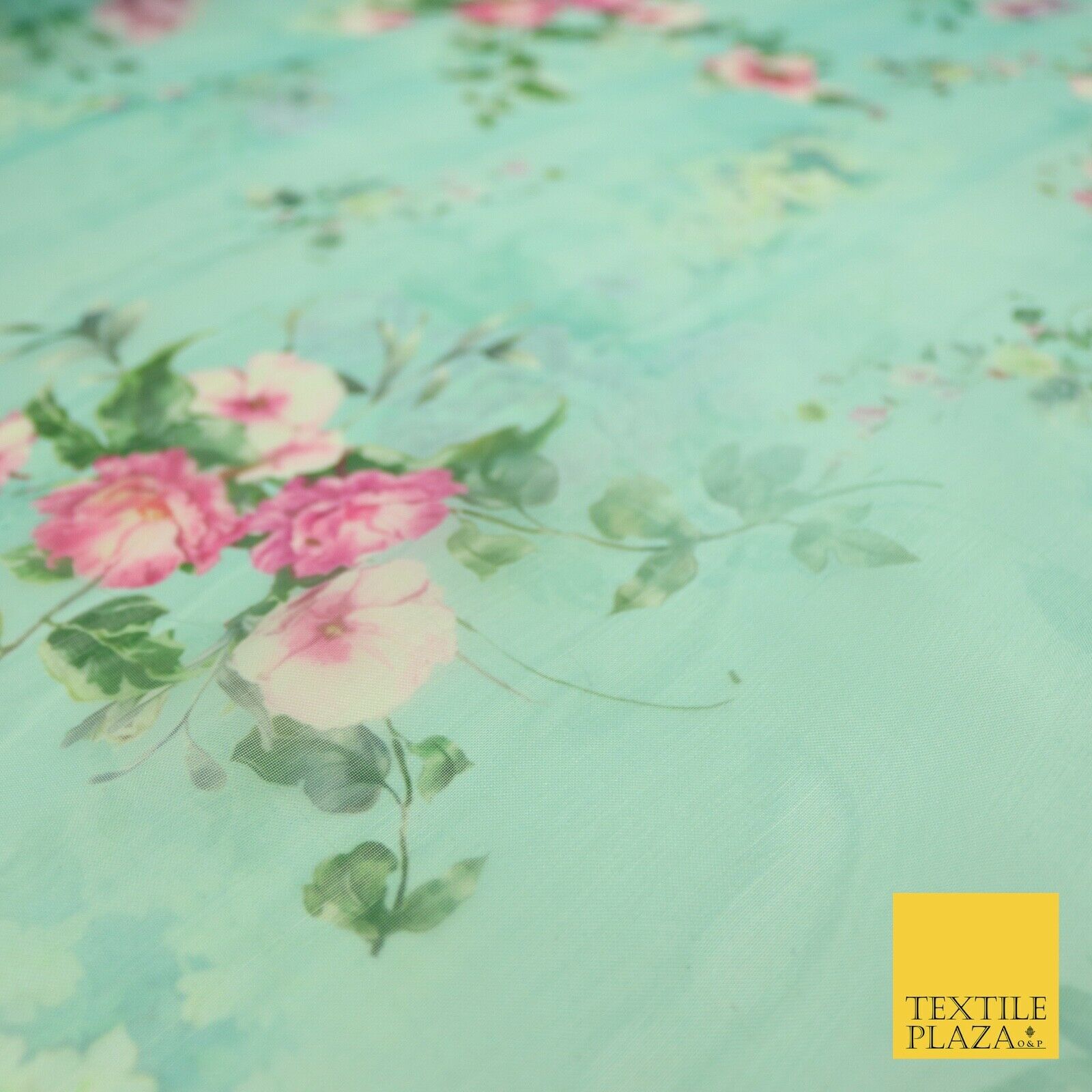 Italian Design Premium Floral Digital Printed Sheer Organza 100%Polyester Fabric