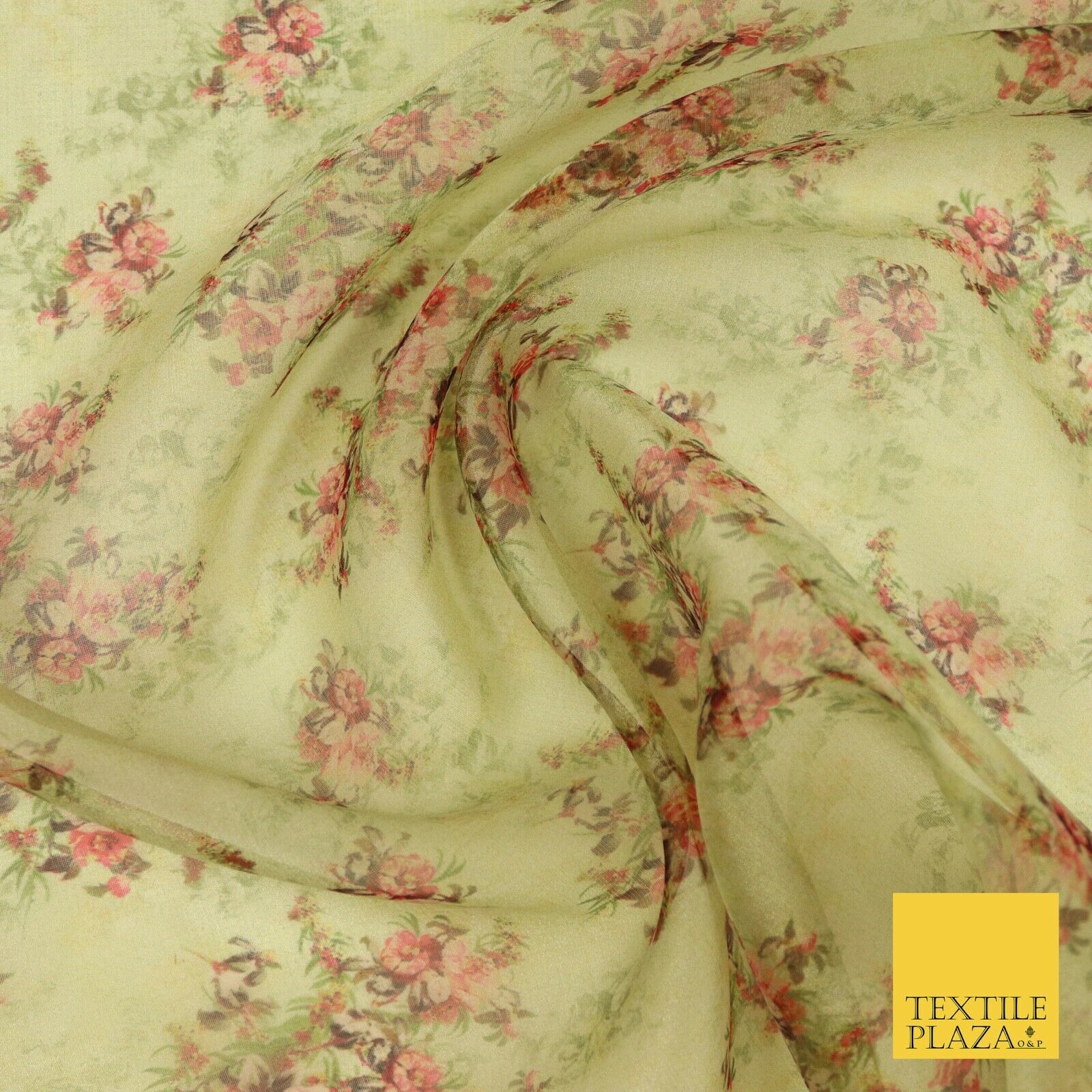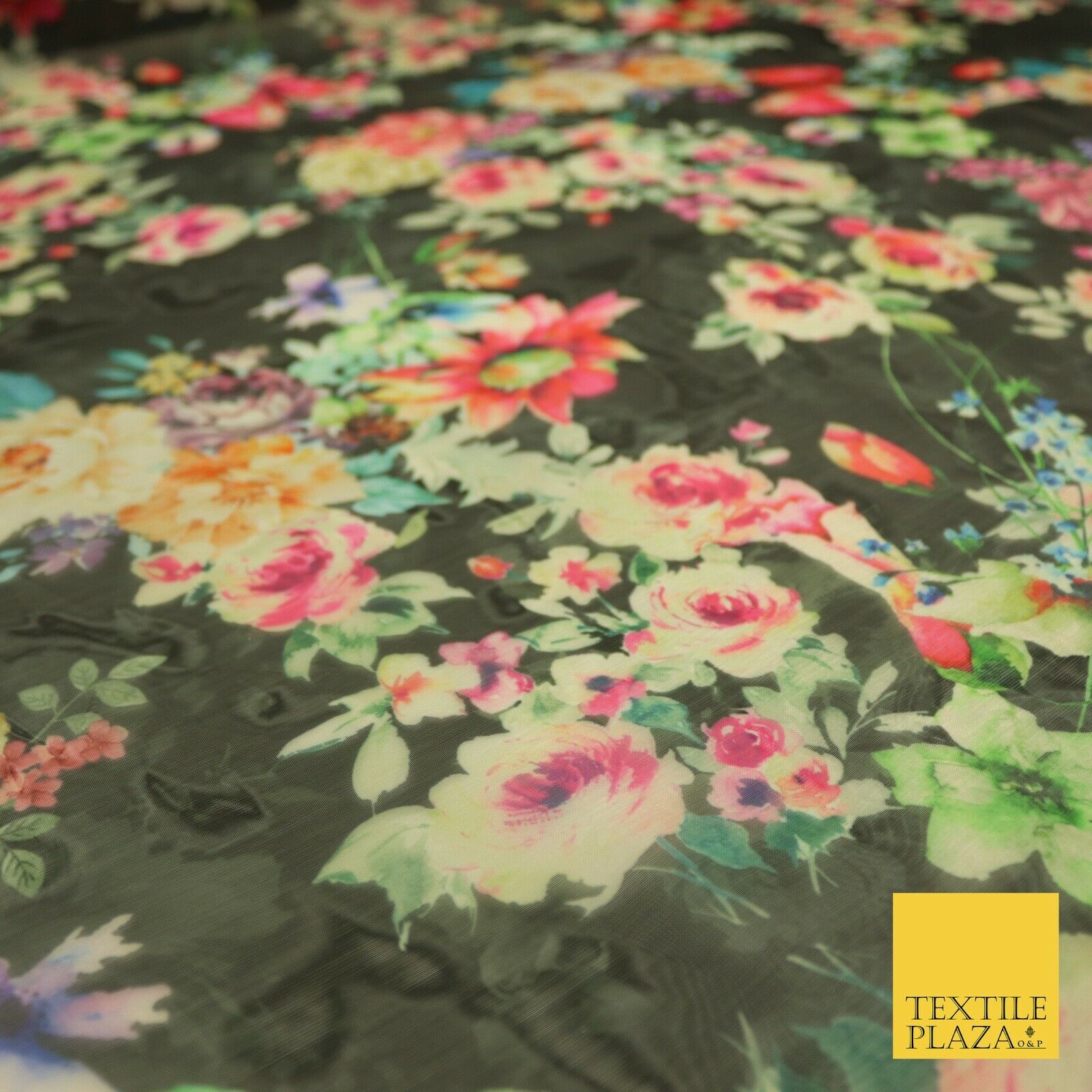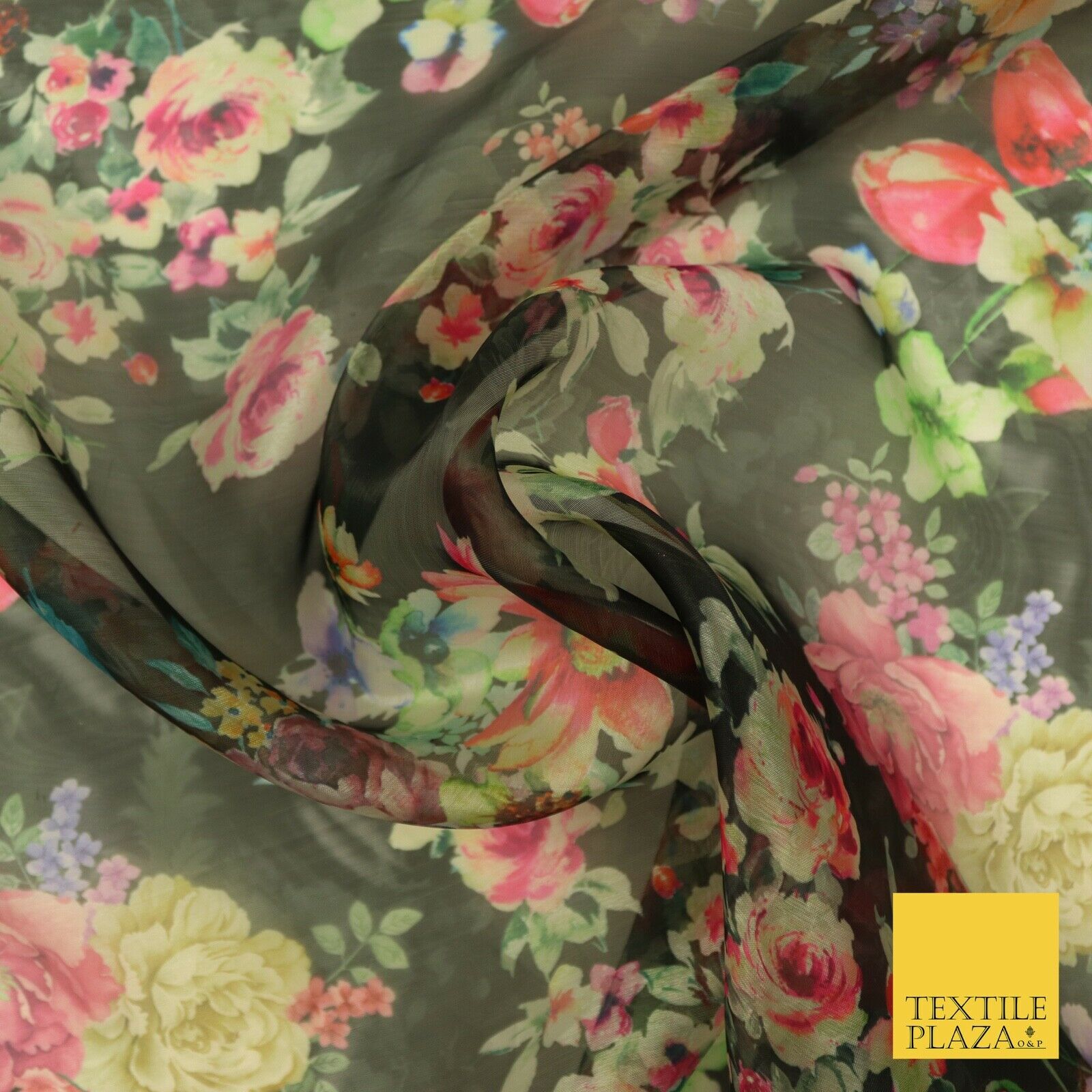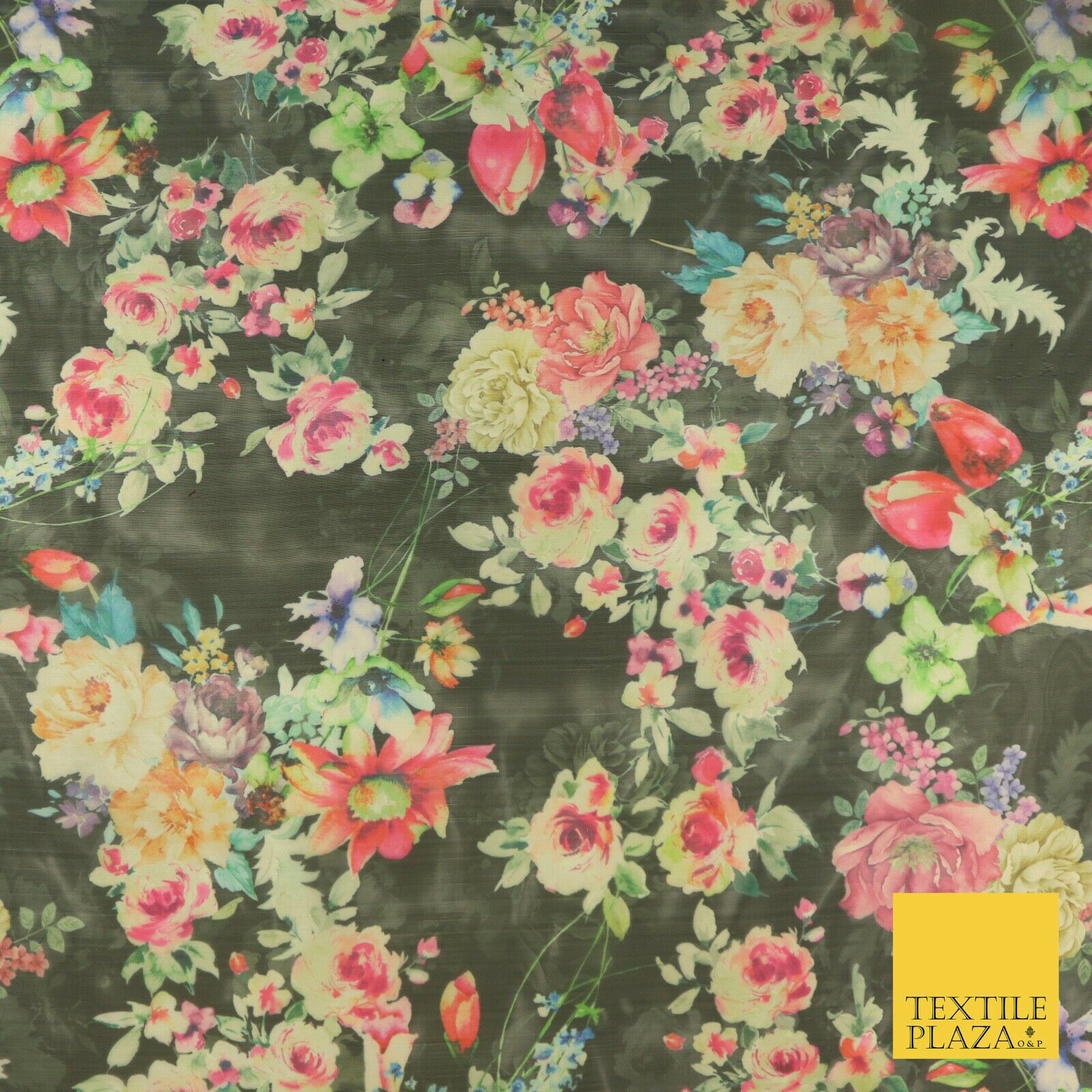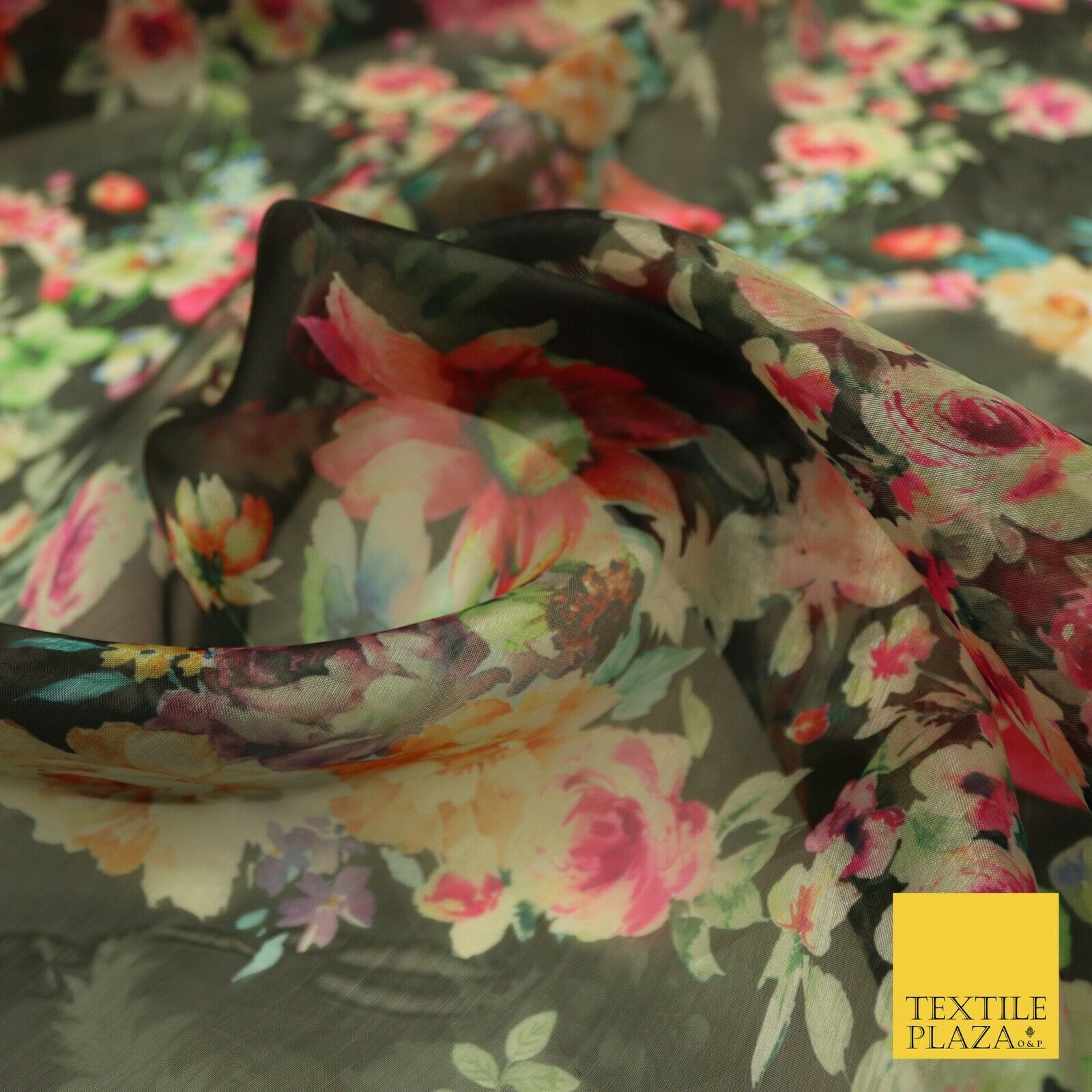 Italian Design Premium Floral Digital Printed Sheer Organza 100%Polyester Fabric
