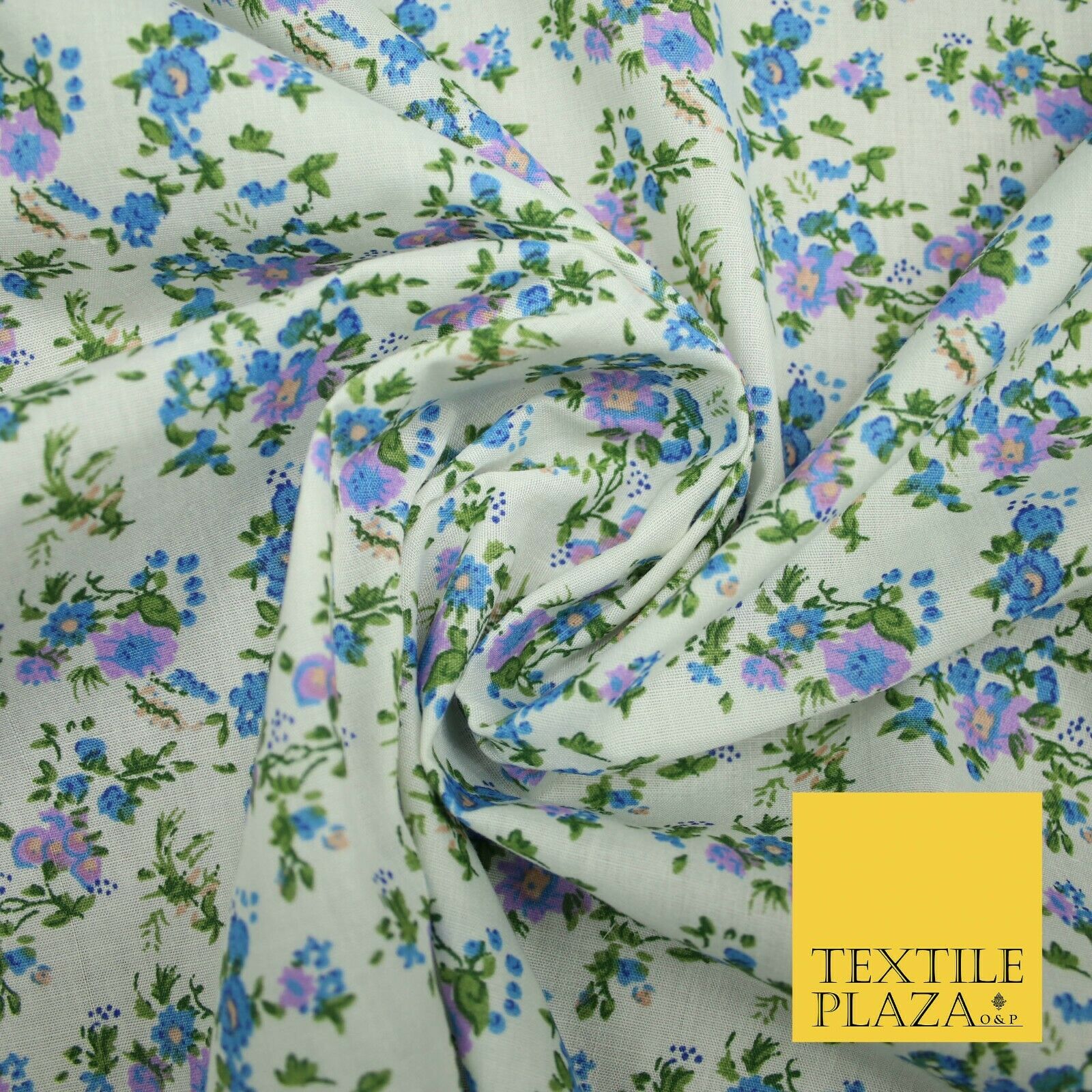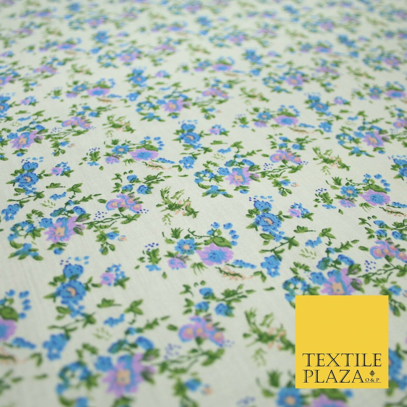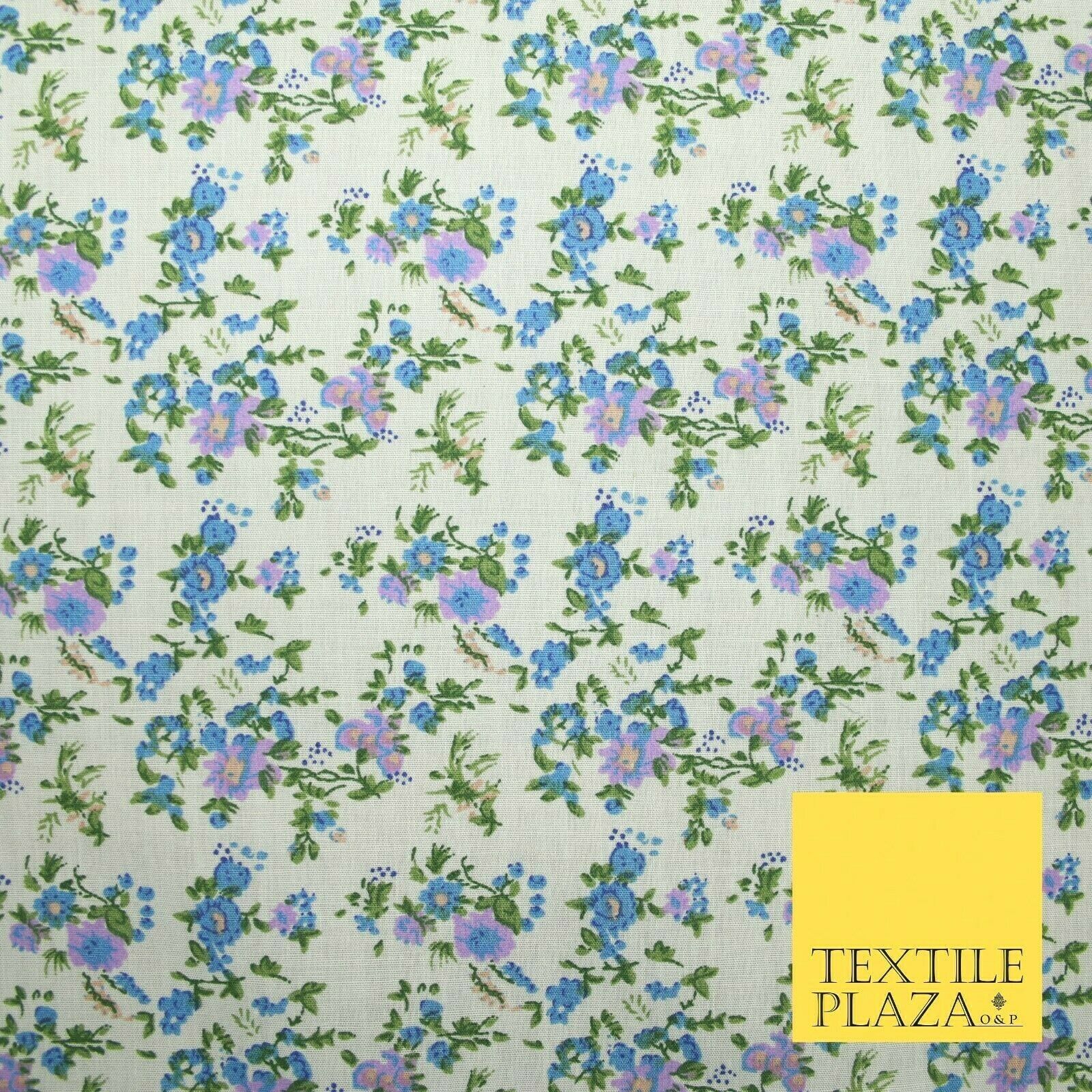 Ivory Blue Purple Mini Floral Printed Polycotton Fabric Dress Craft 44" 5168